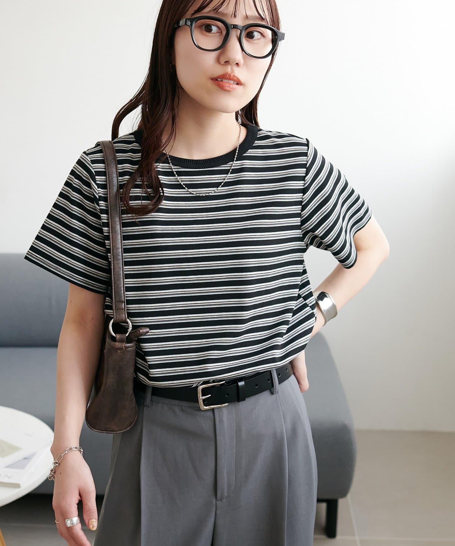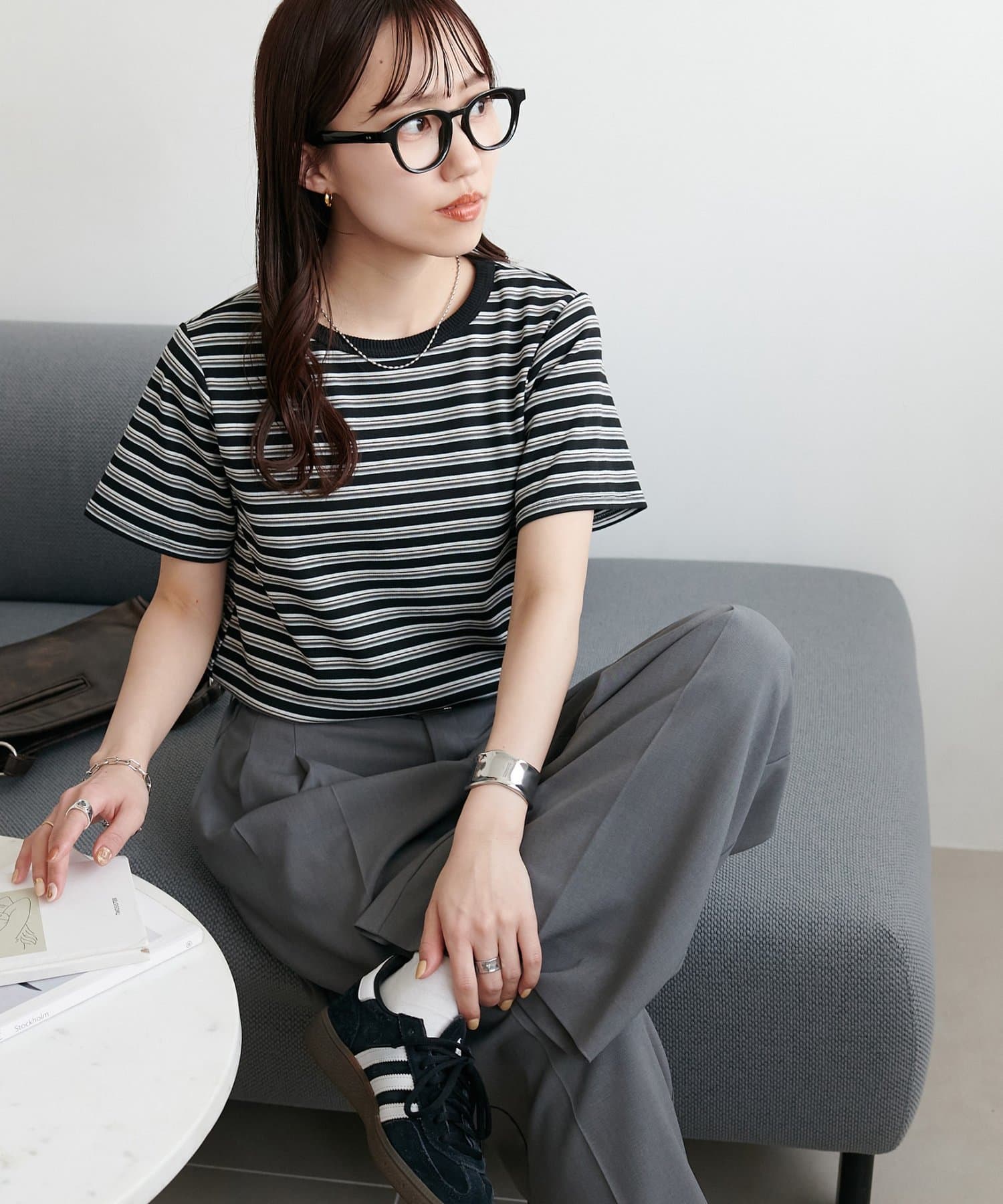 ・ピッチの異なるボーダーで、カジュアルすぎずに合わせることができます。