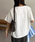 ・カジュアルなTシャツに上品さをプラスする箔プリントロゴがアクセント