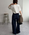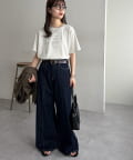 ハイウエストステッチ使いデニムワイドパンツ