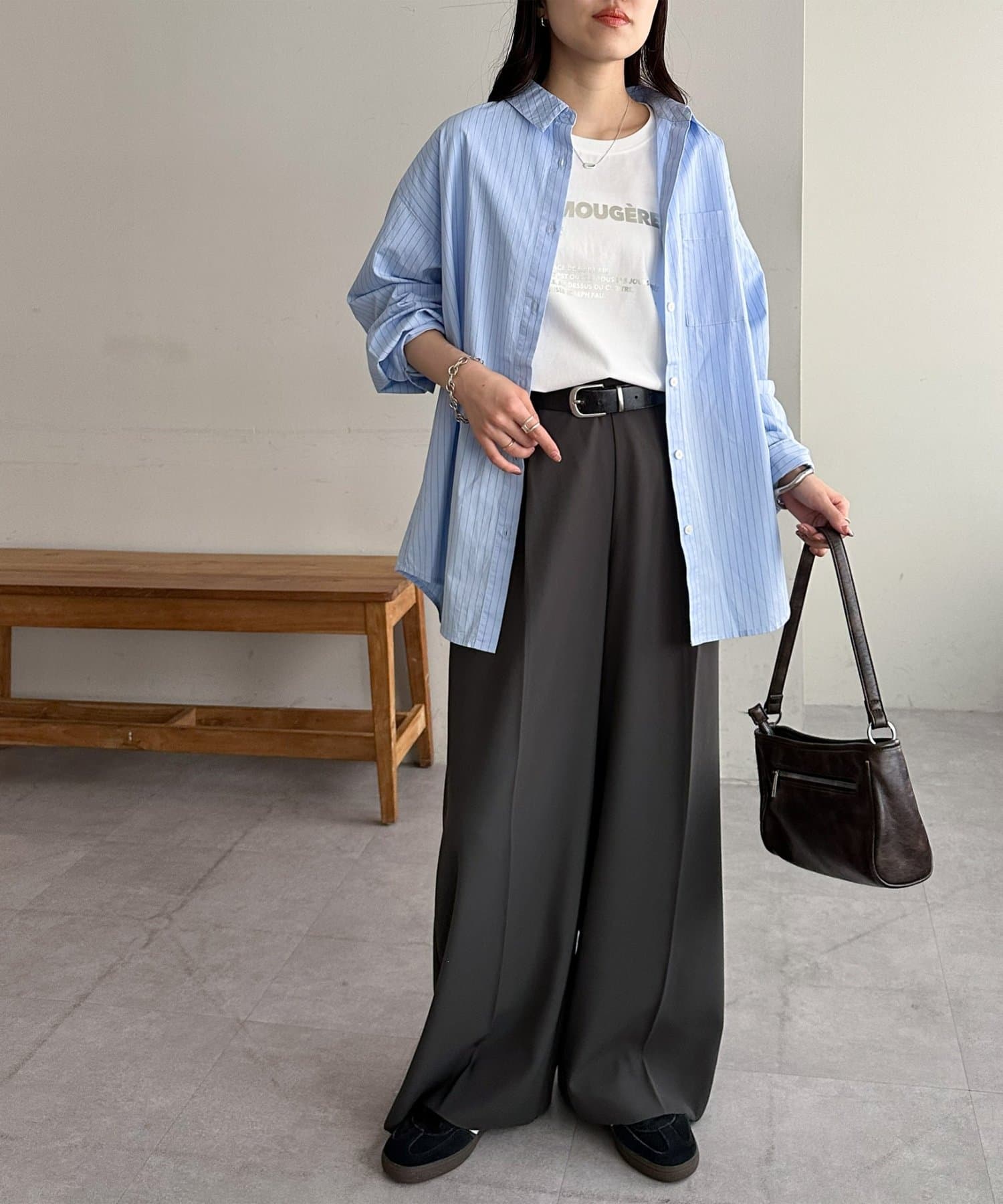 とろみのあるきれいめボトムスと合わせたミックスコーデも◎