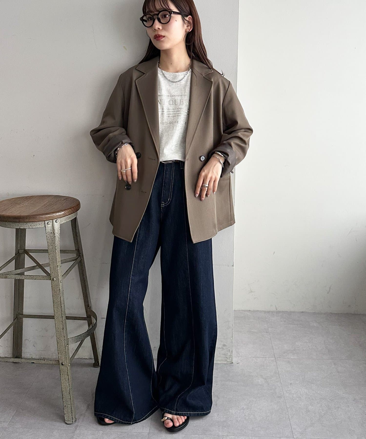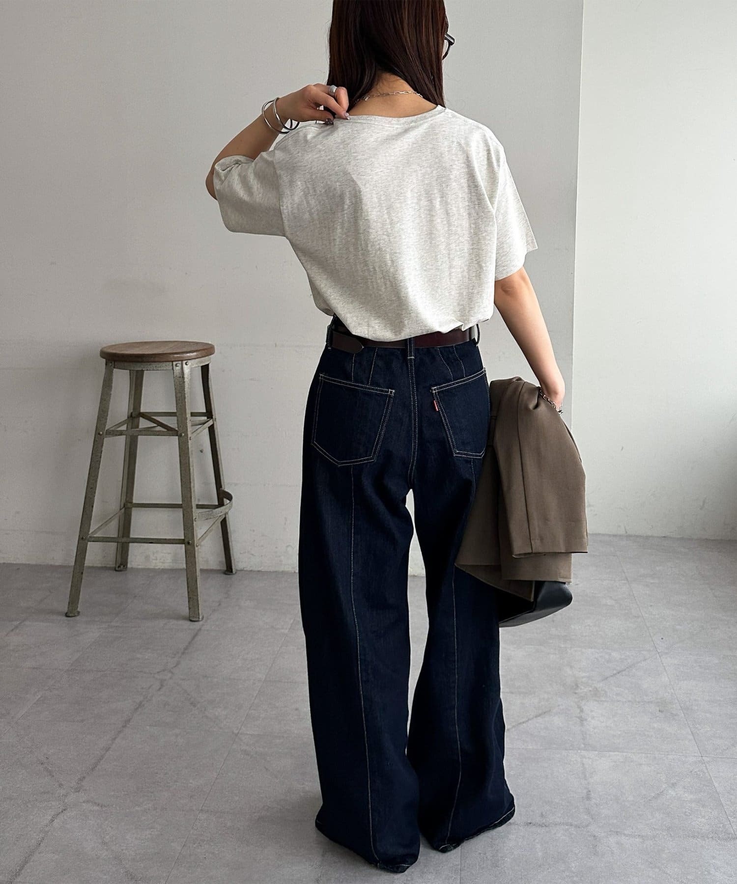 ハイウエストデニムやワイドパンツと合わせて、メリハリのある大人カジュアルスタイルに!