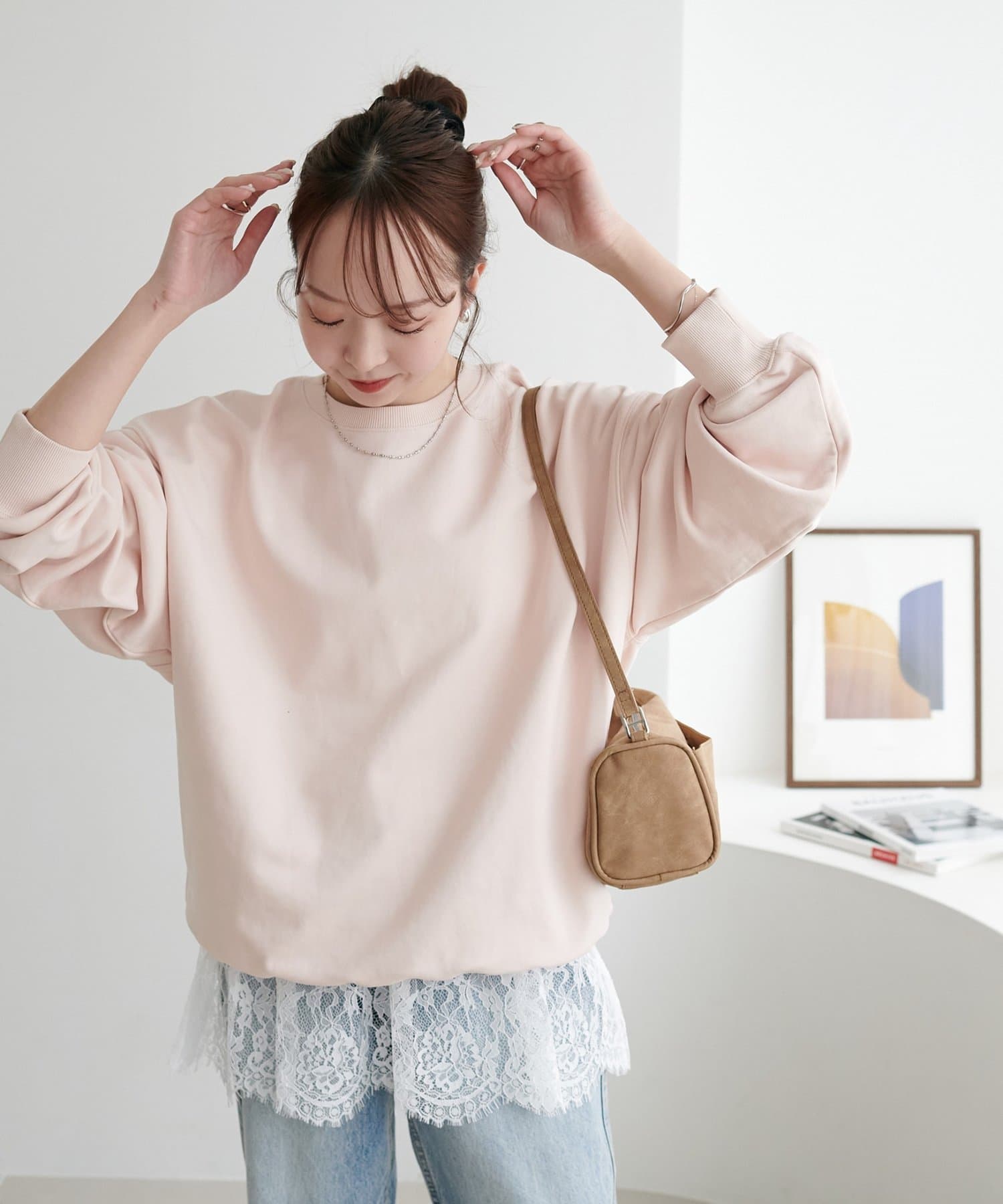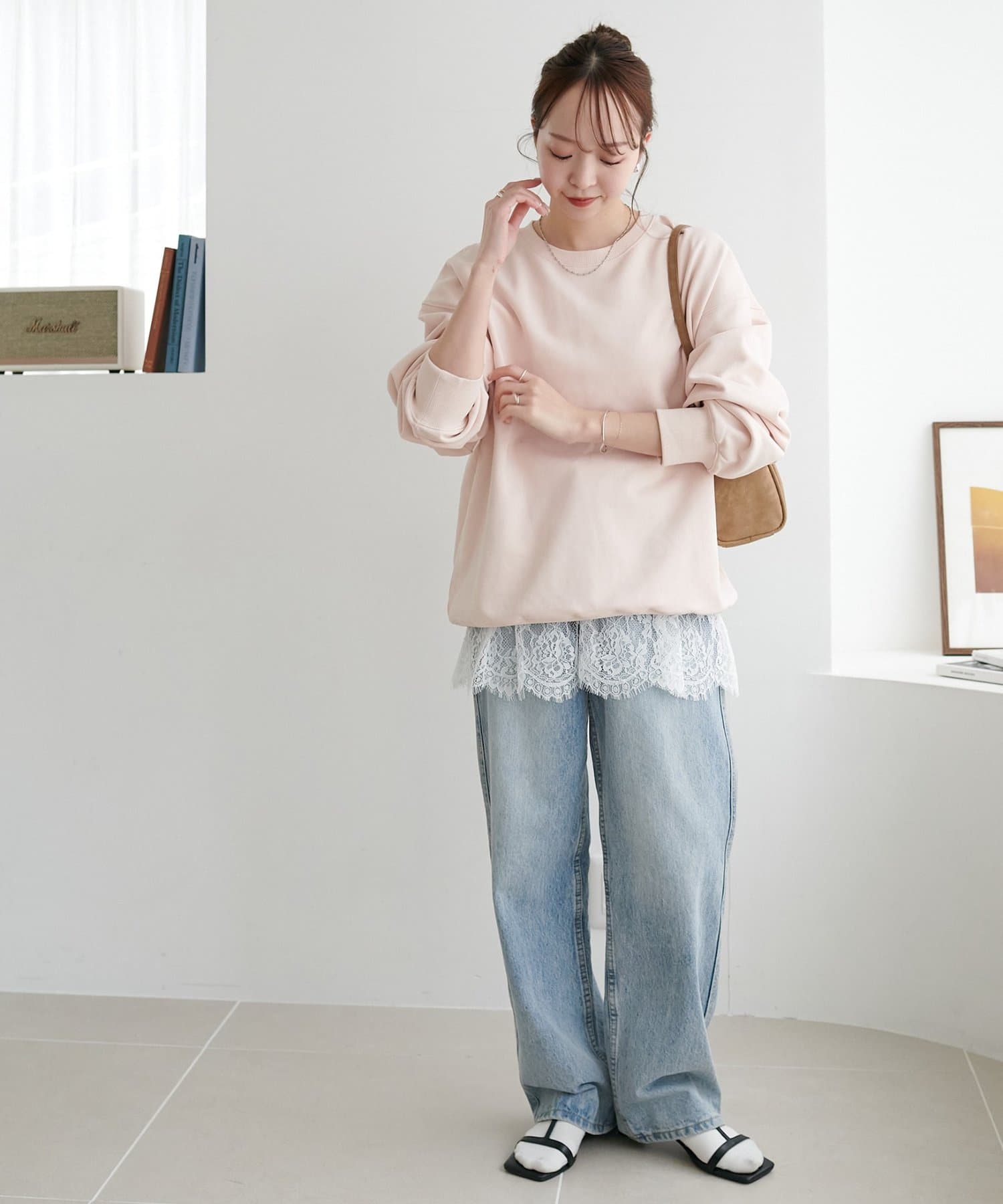 149cmスタッフ:肩紐で長さ調節ができるので、合わせるアイテムによって見せ方を変えながらスタイリングを楽しむことができます。レース部分は透け感があるので、レイヤードしても軽やかな雰囲気をプラスしてくれる点もポイントです。