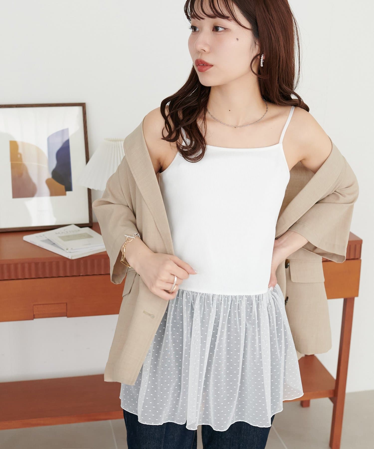 レイヤードするだけでキレイ見えが叶うレースキャミ