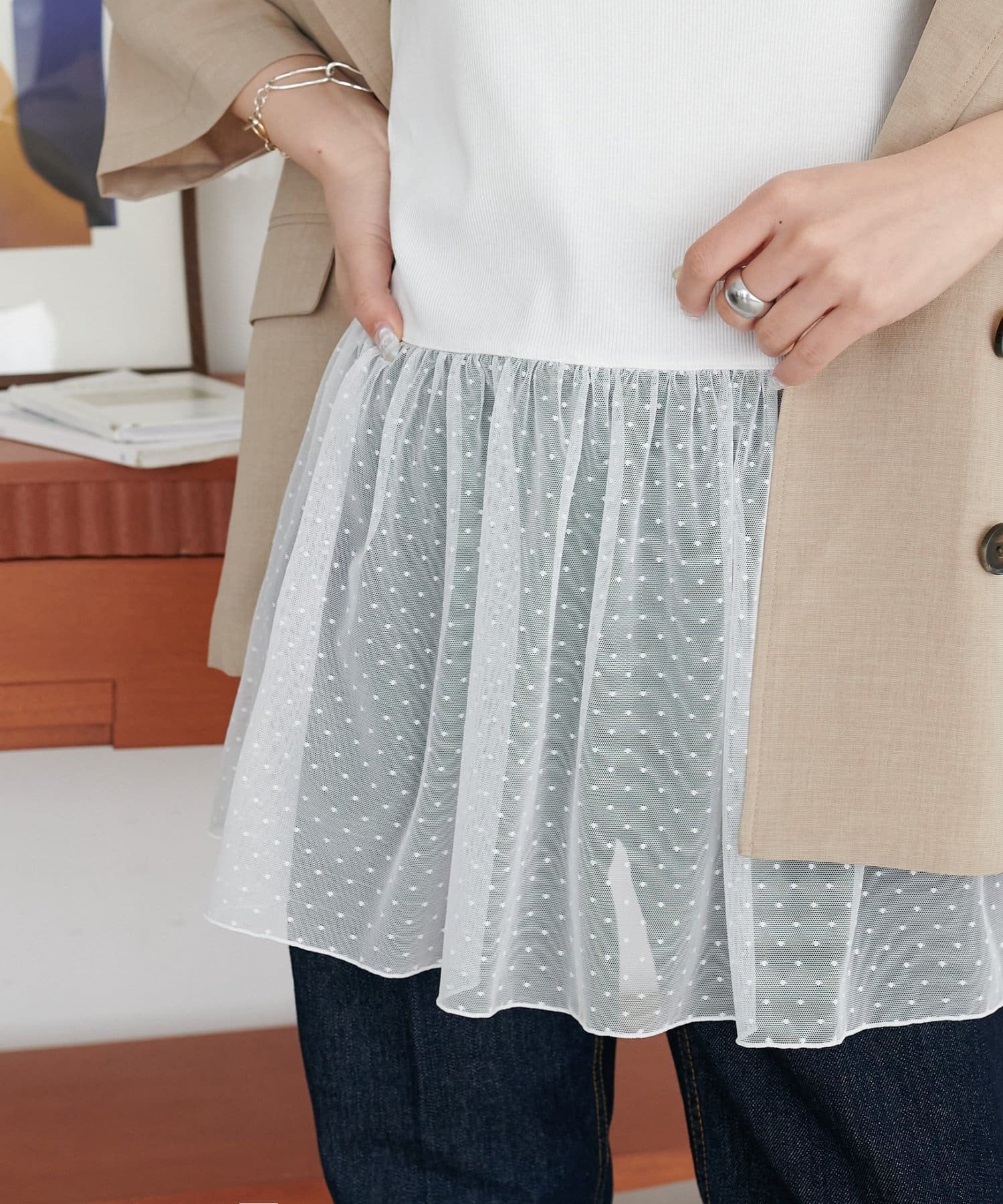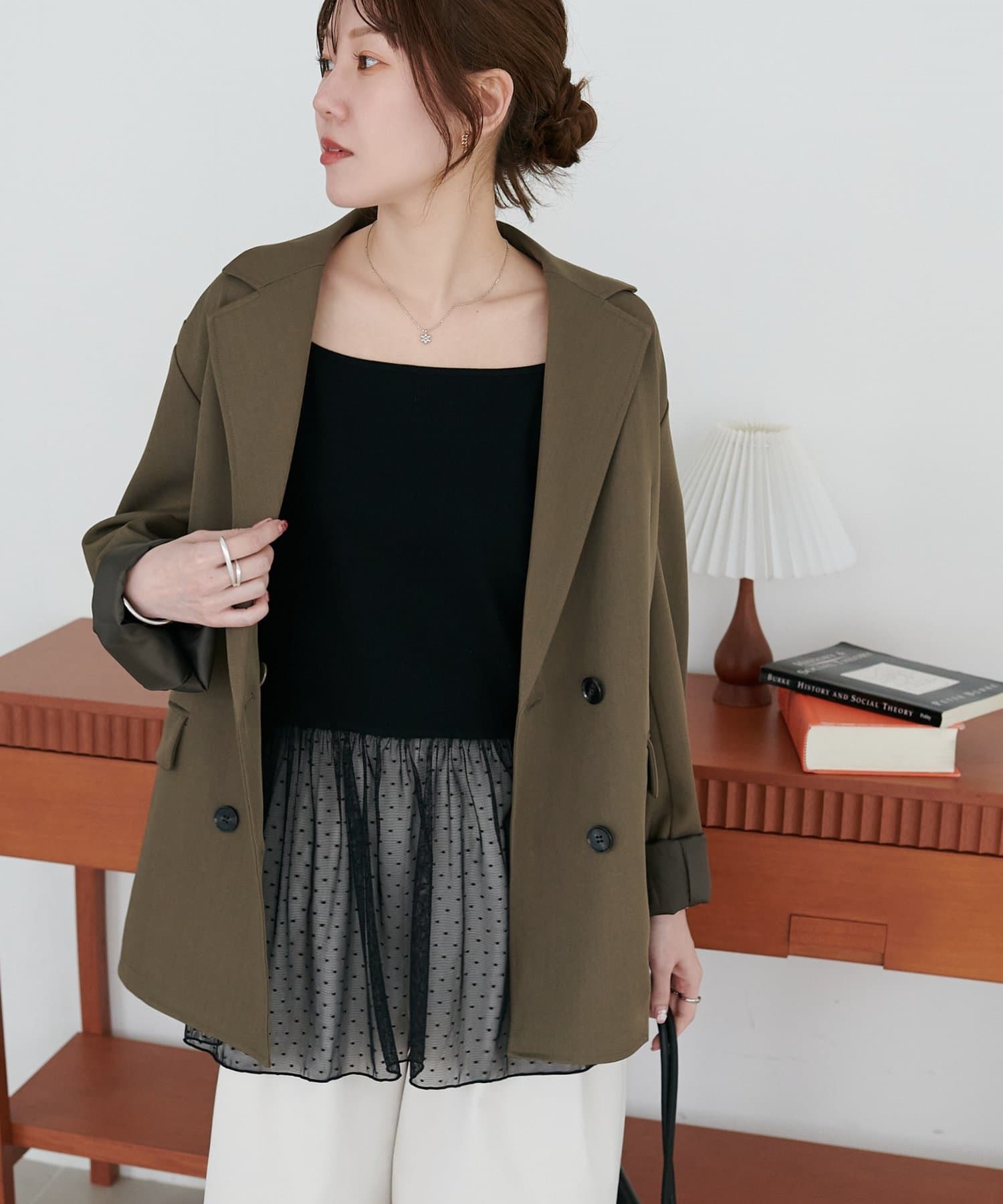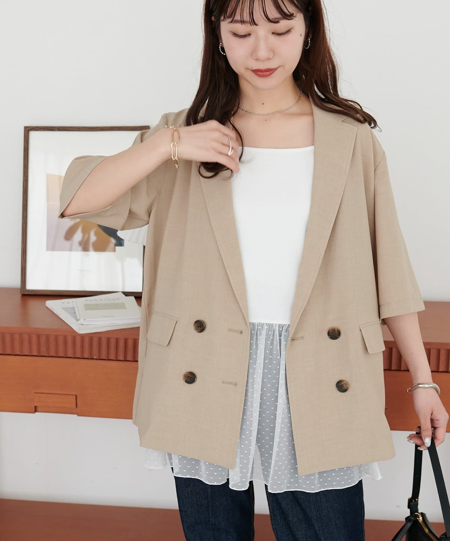 ・ジャケットのインナーに合わせた上品なスタイリング
