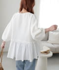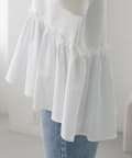 裾にたっぷりと寄せたギャザーが華やかな印象に。