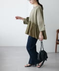 ・カットソーと布帛の異素材を組み合わせたデザイン。