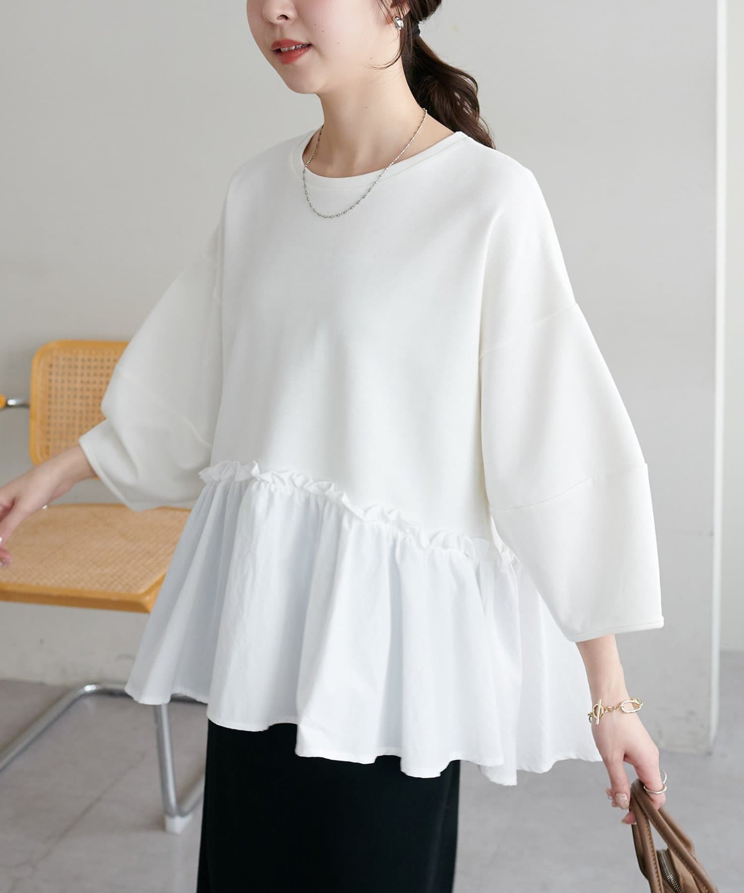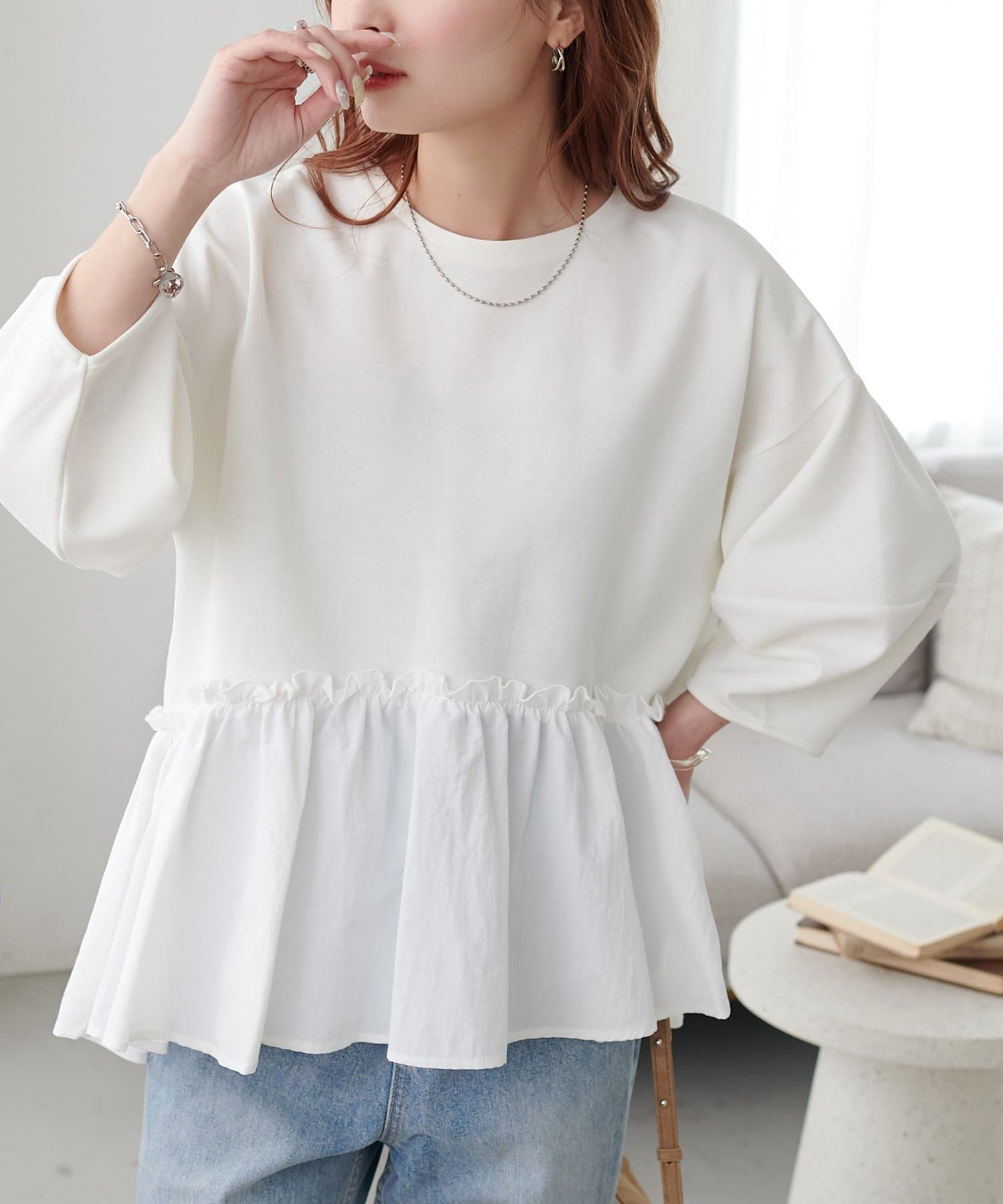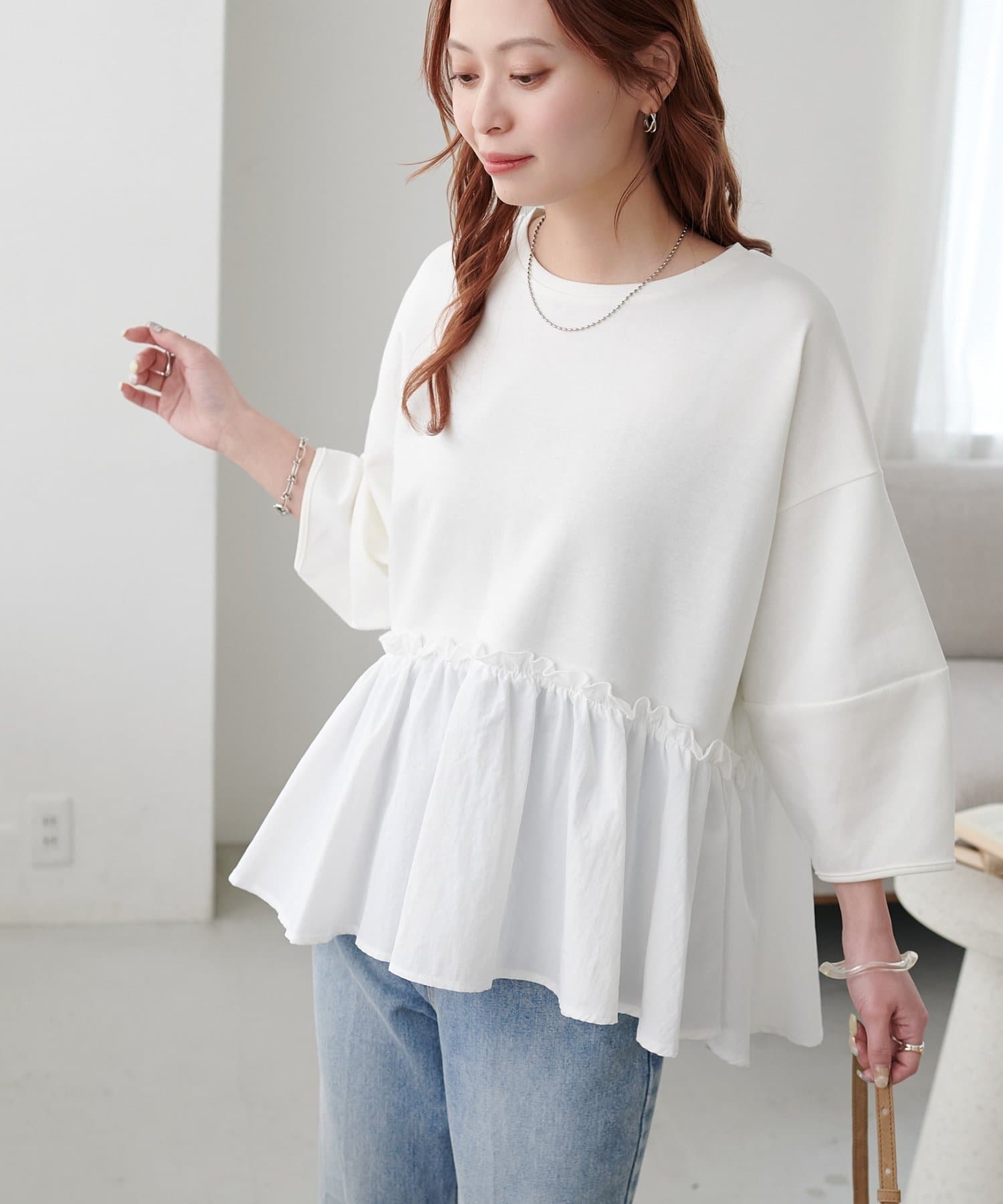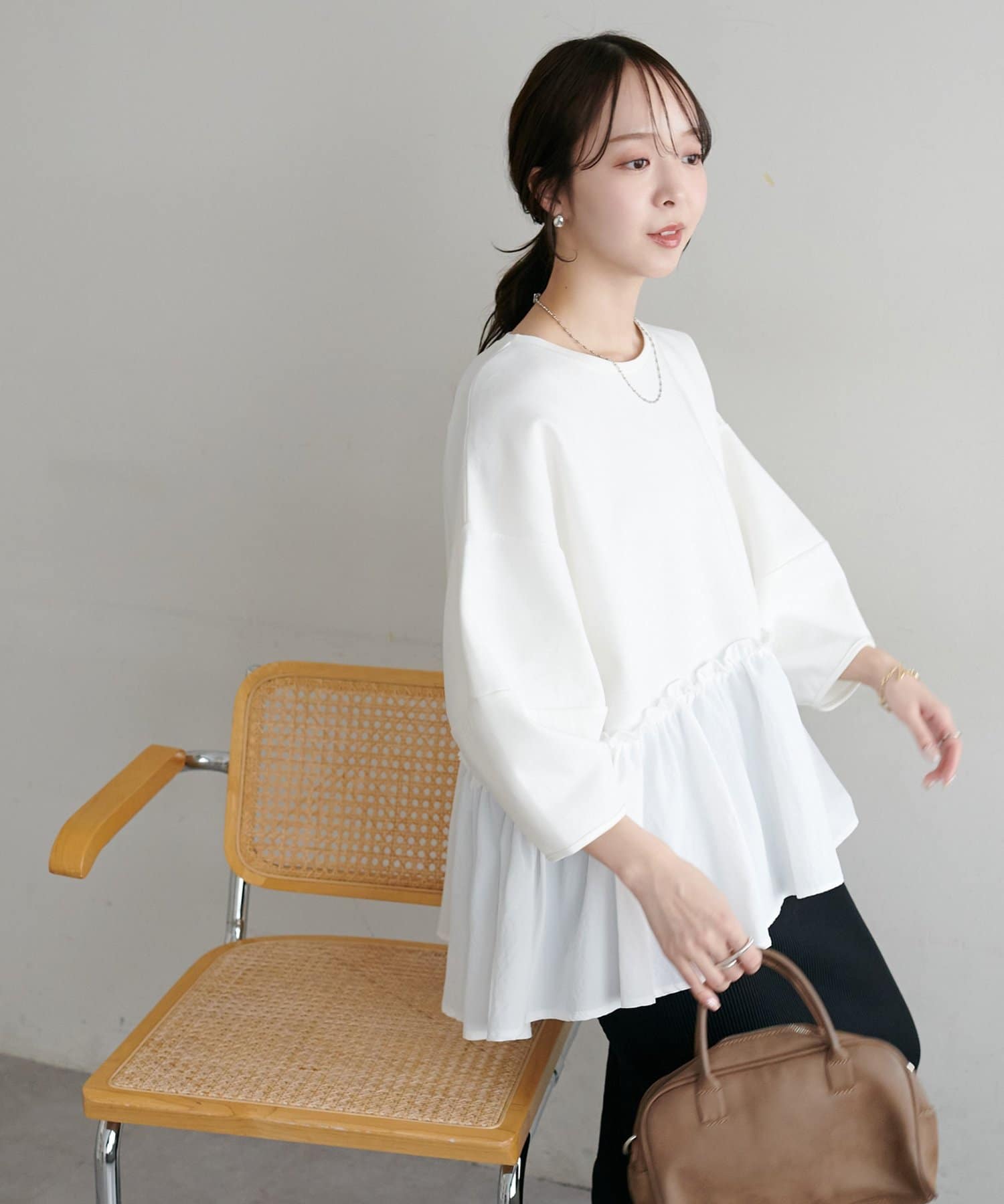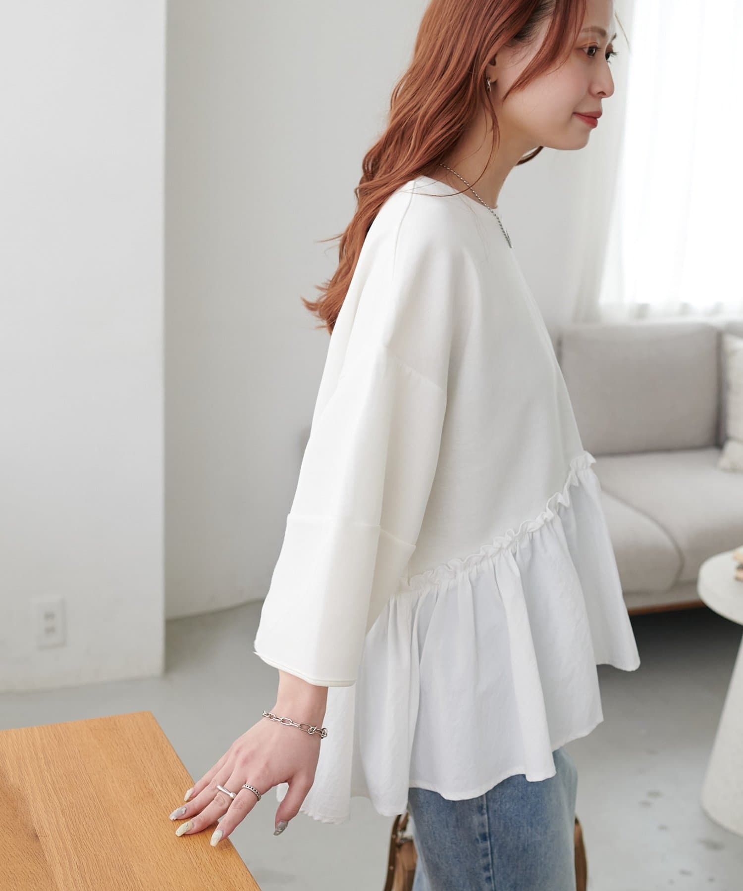 TOP > DISCOAT > レディース > トップス > Tシャツ/カットソー > 【WEB限定】裾布帛ドッキングプルオーバー