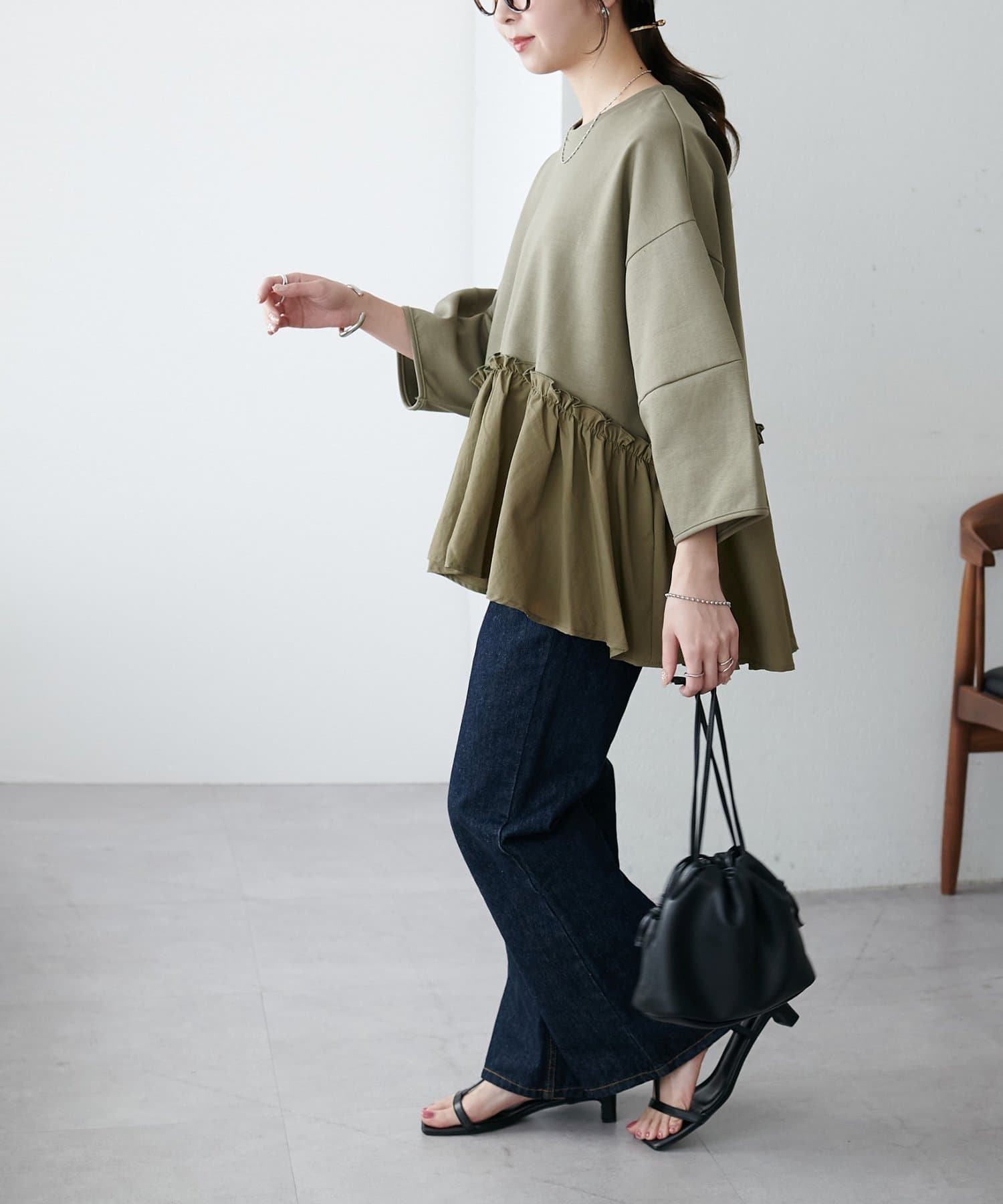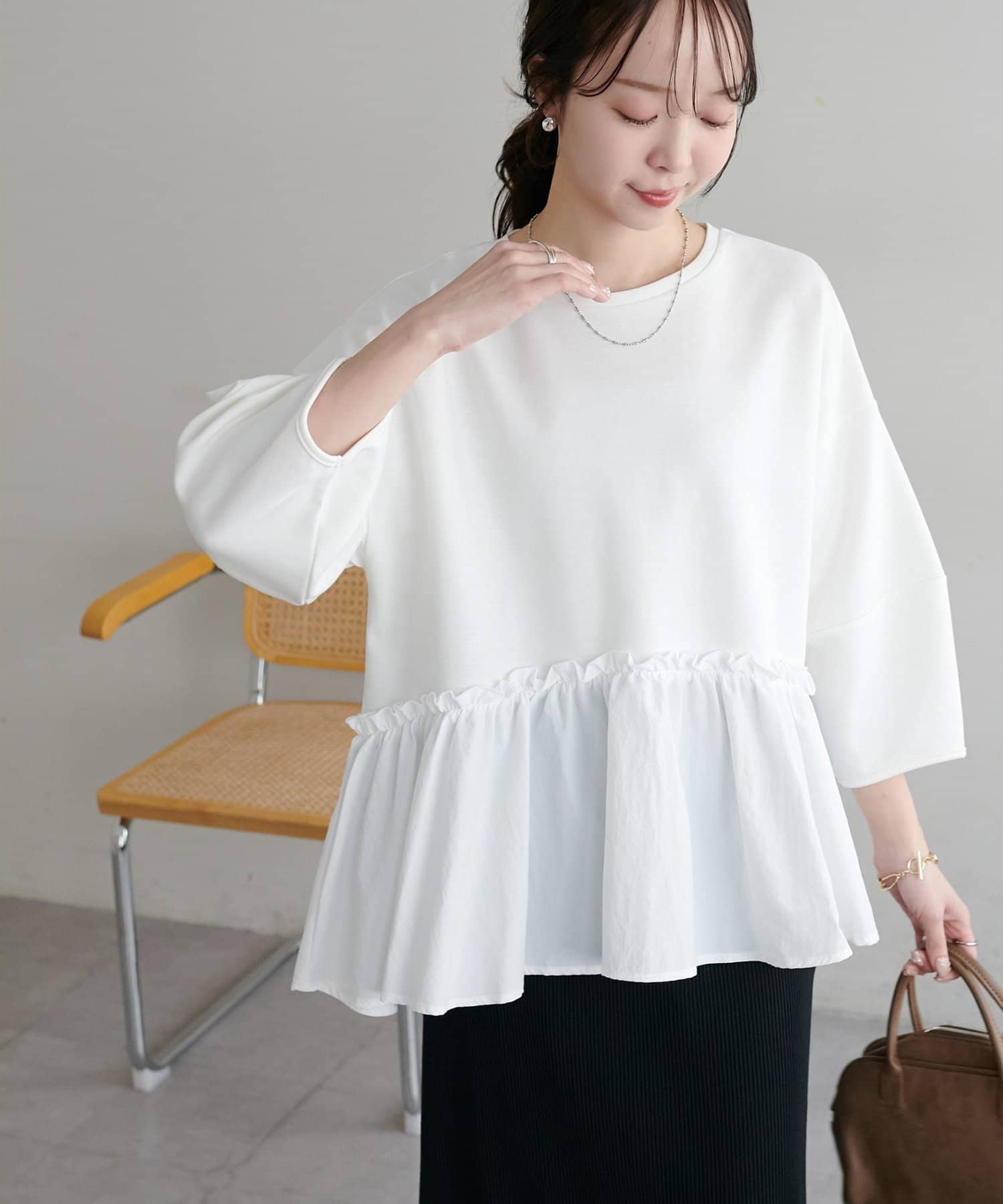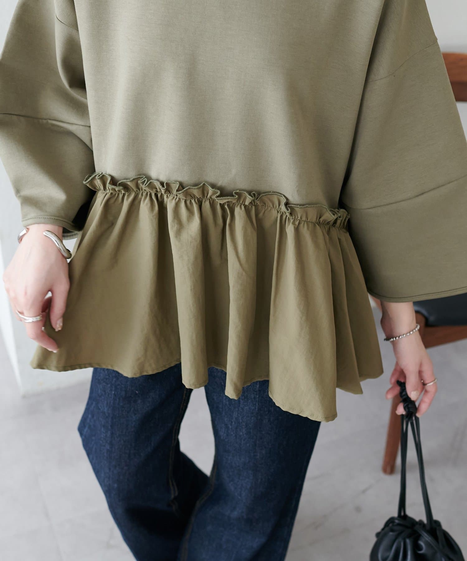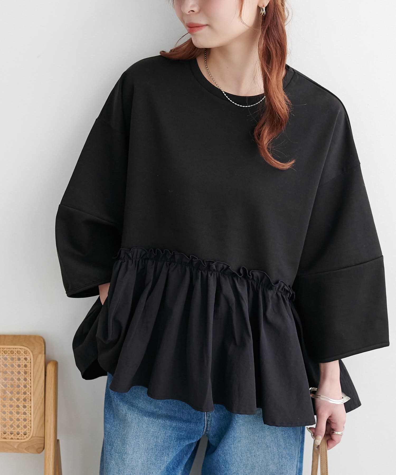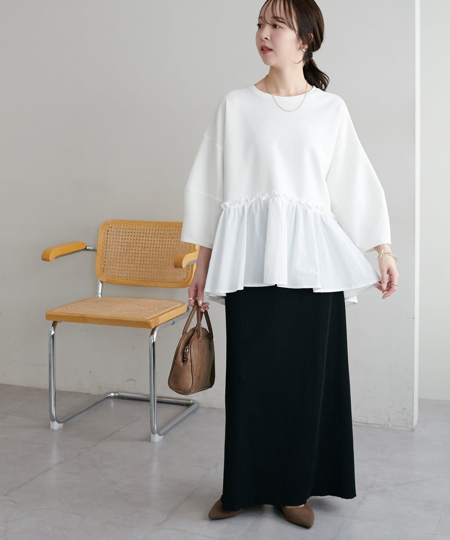 TOP > DISCOAT > レディース > トップス > Tシャツ/カットソー > 【WEB限定】裾布帛ドッキングプルオーバー