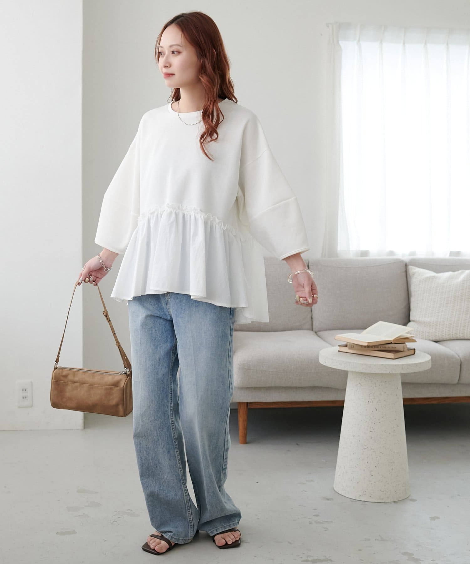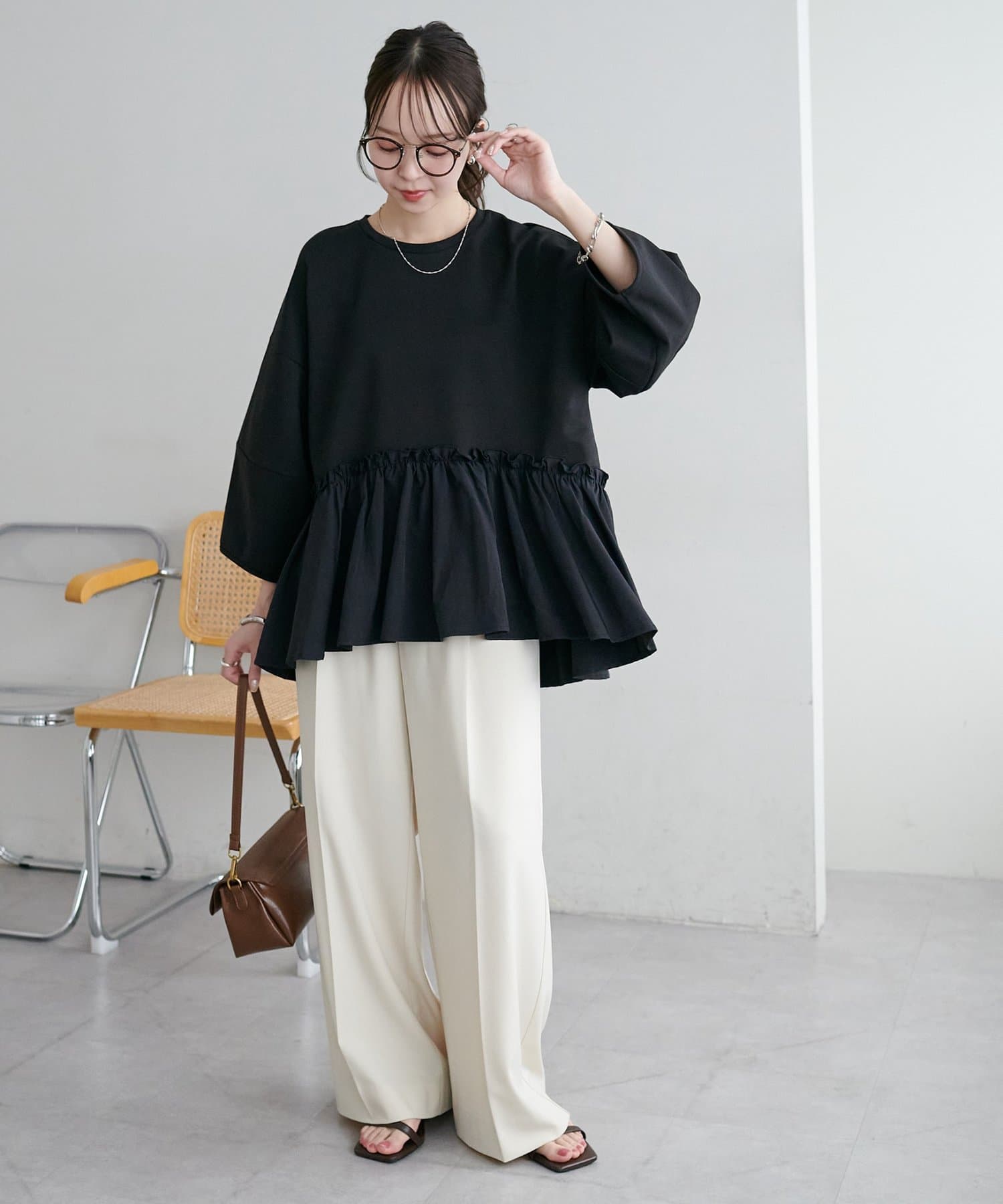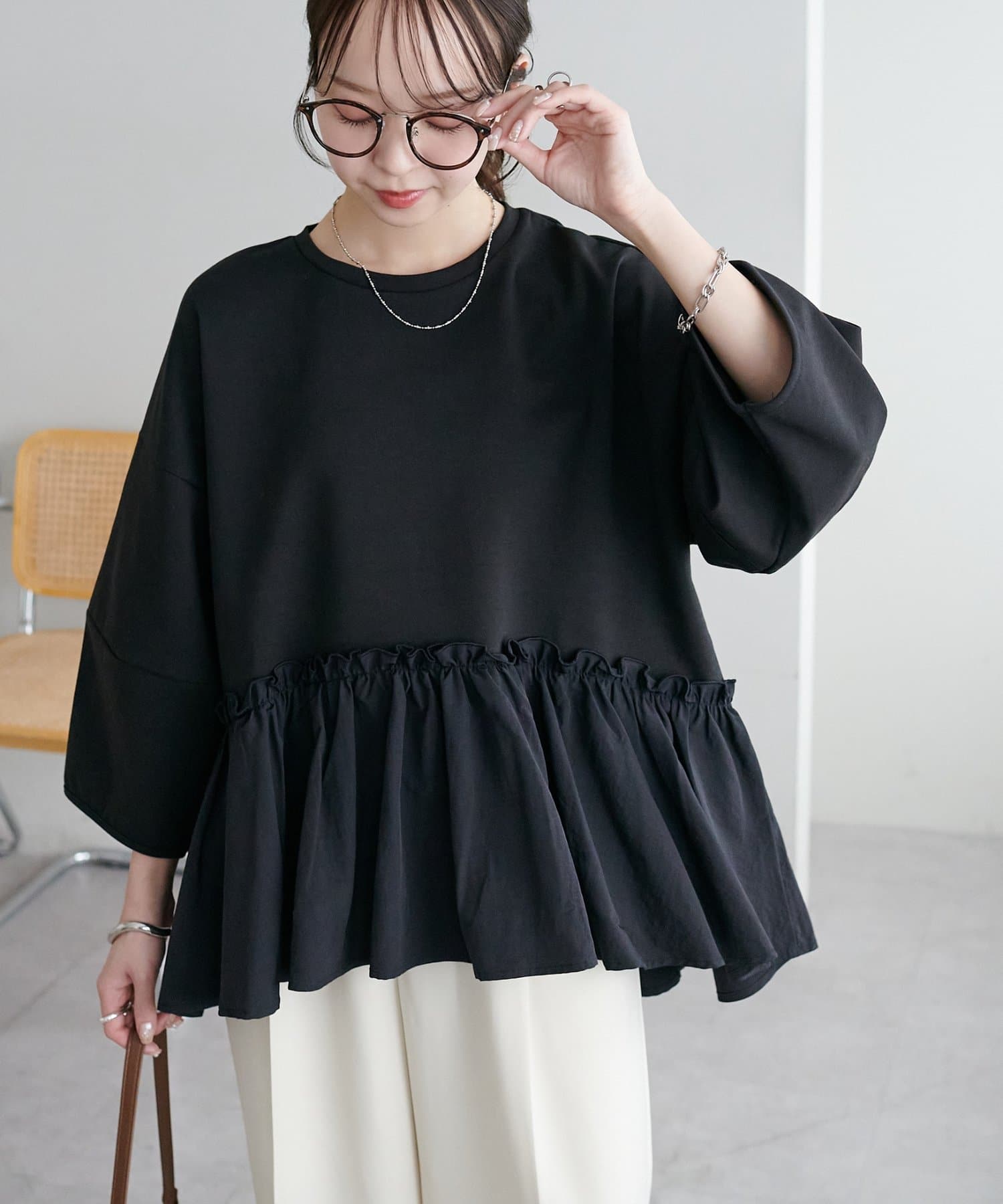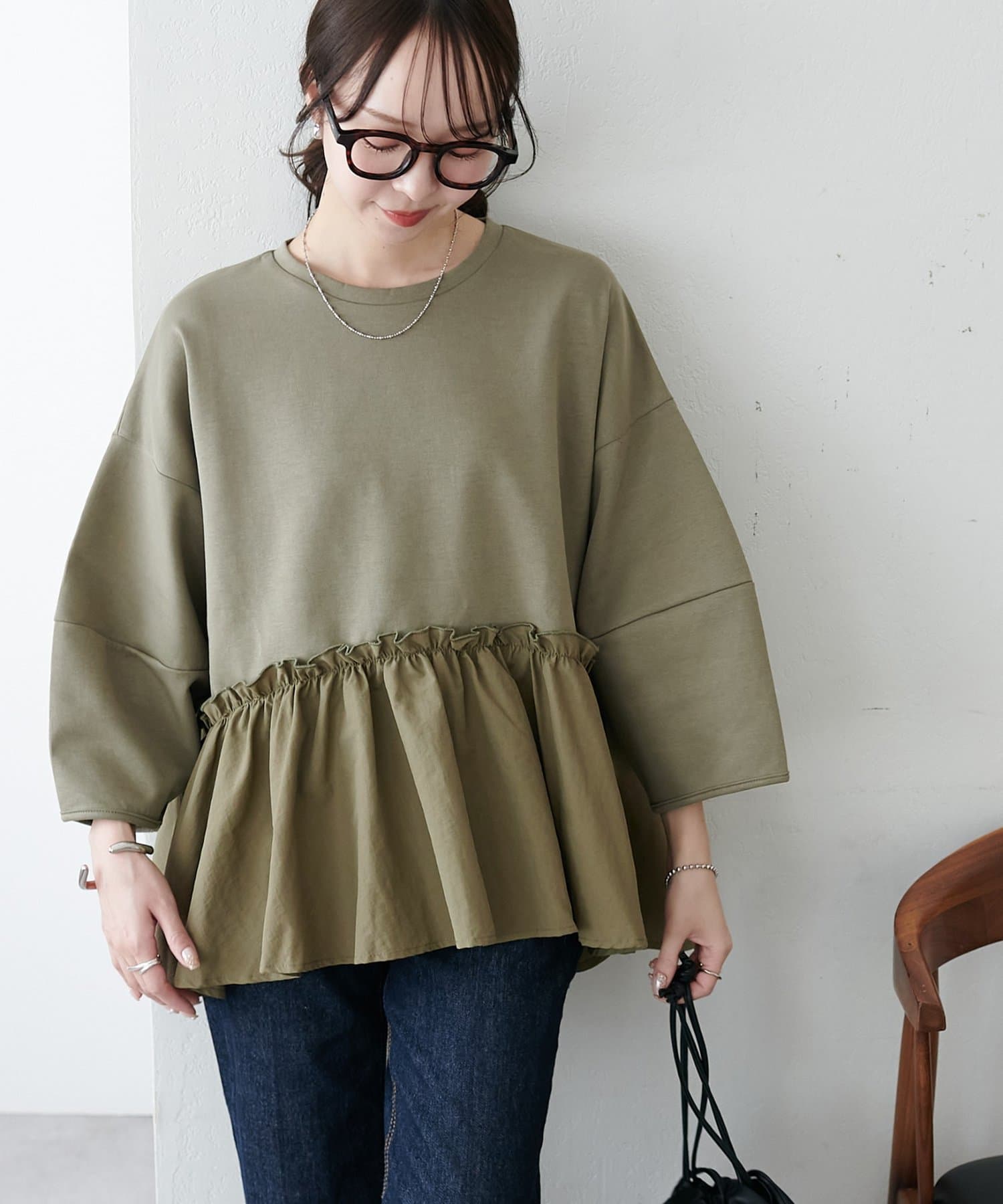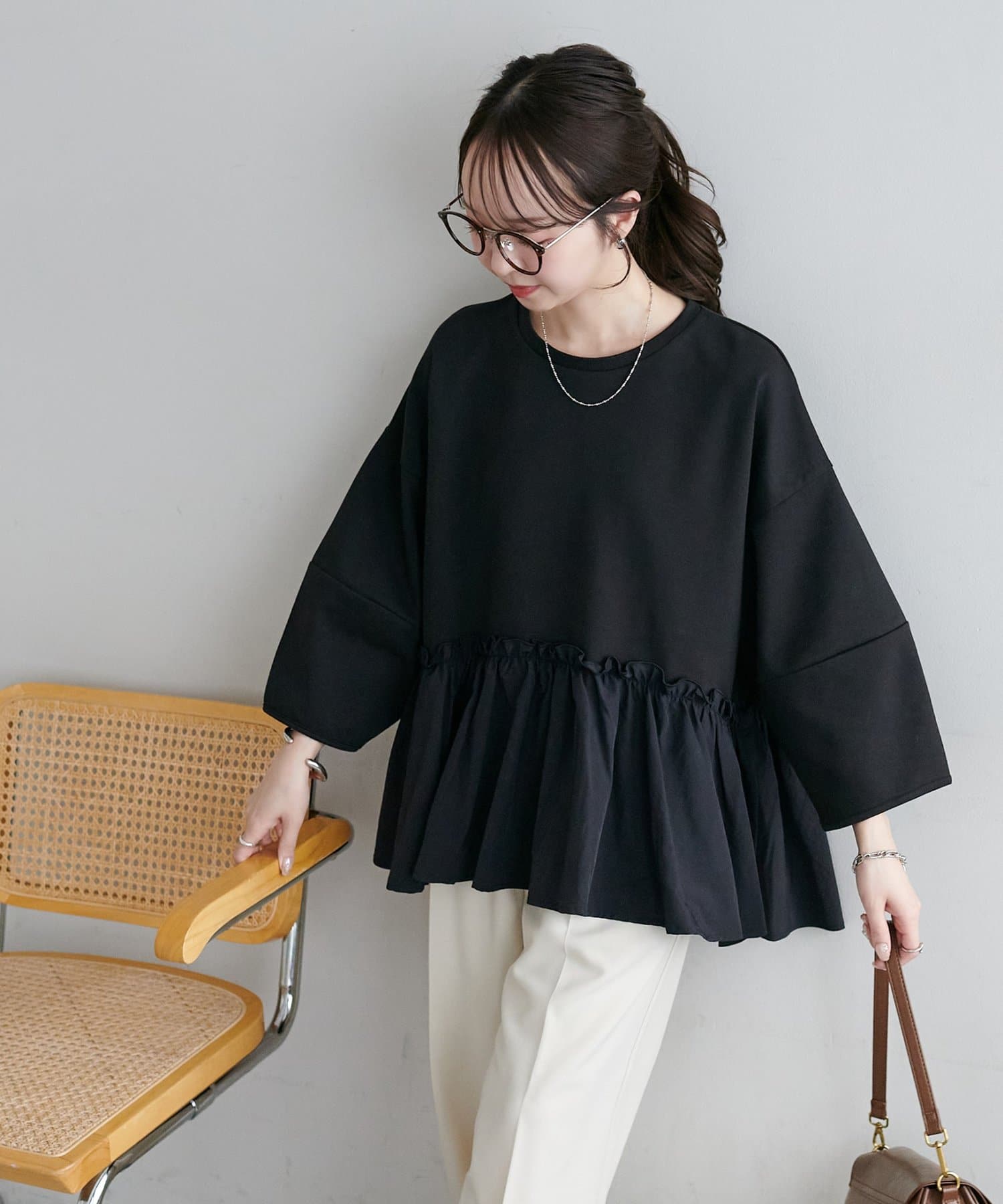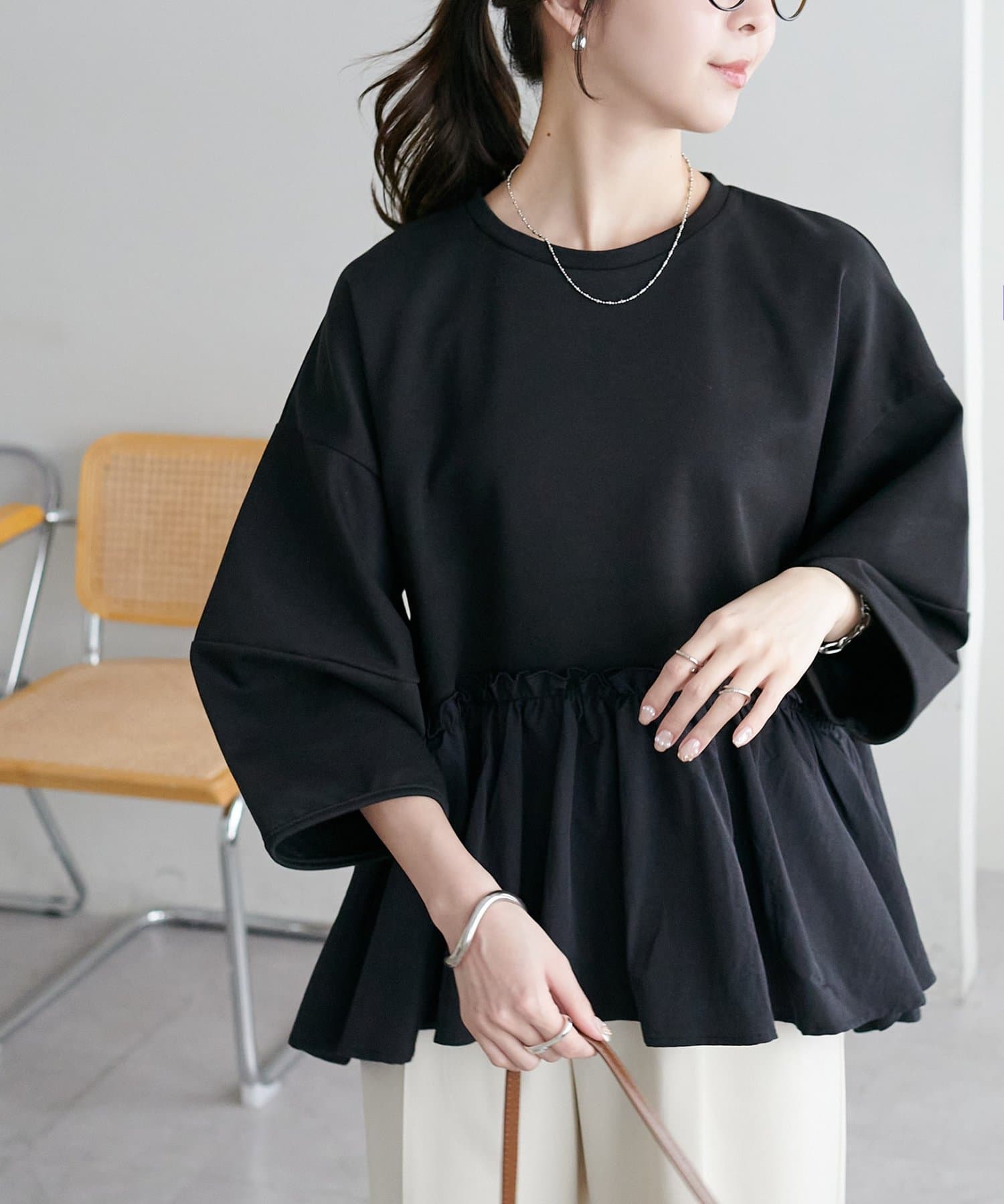 TOP > DISCOAT > レディース > トップス > Tシャツ/カットソー > 【WEB限定】裾布帛ドッキングプルオーバー