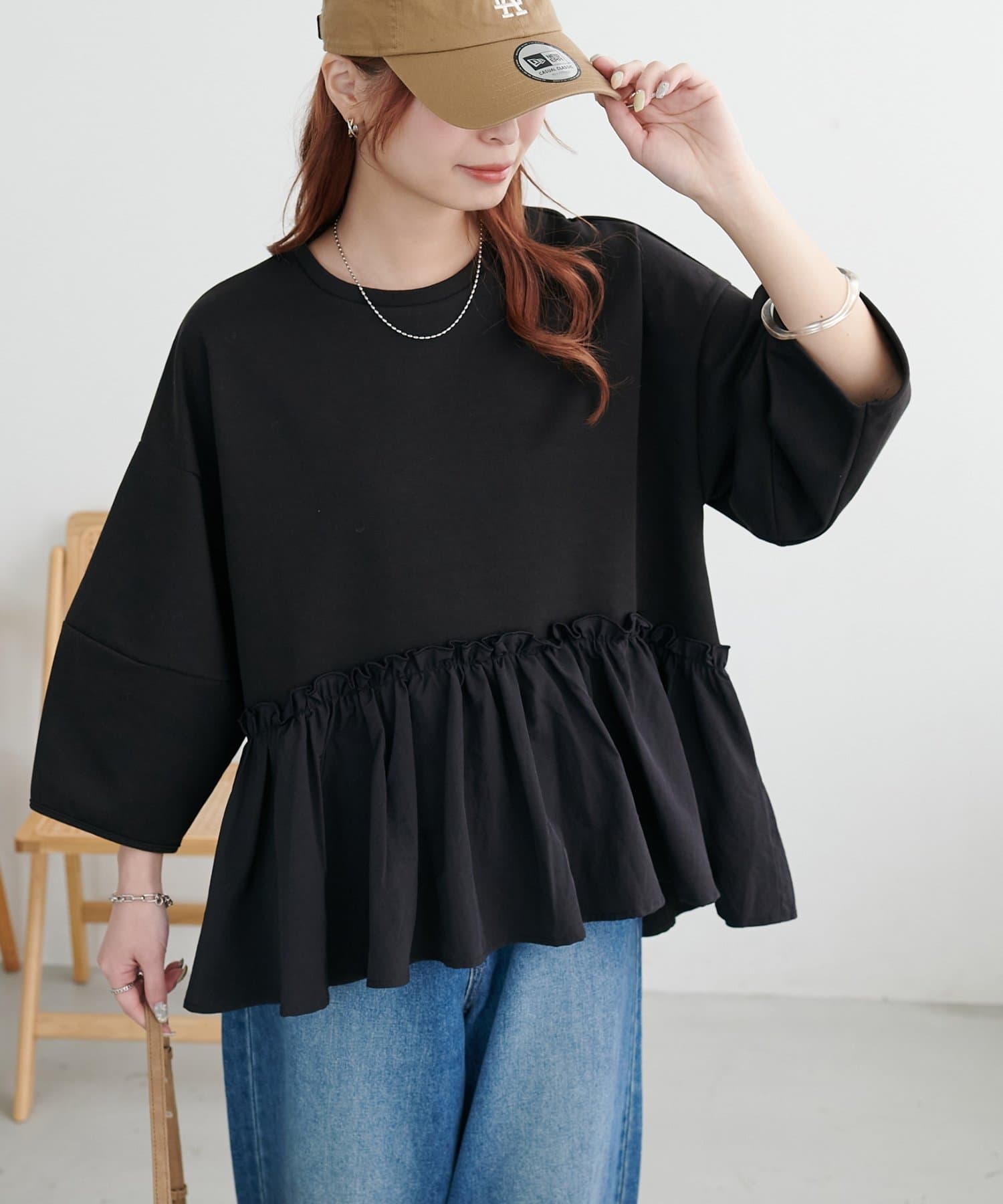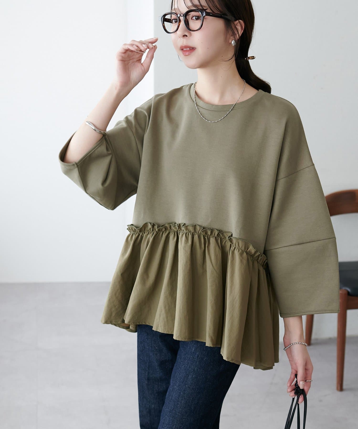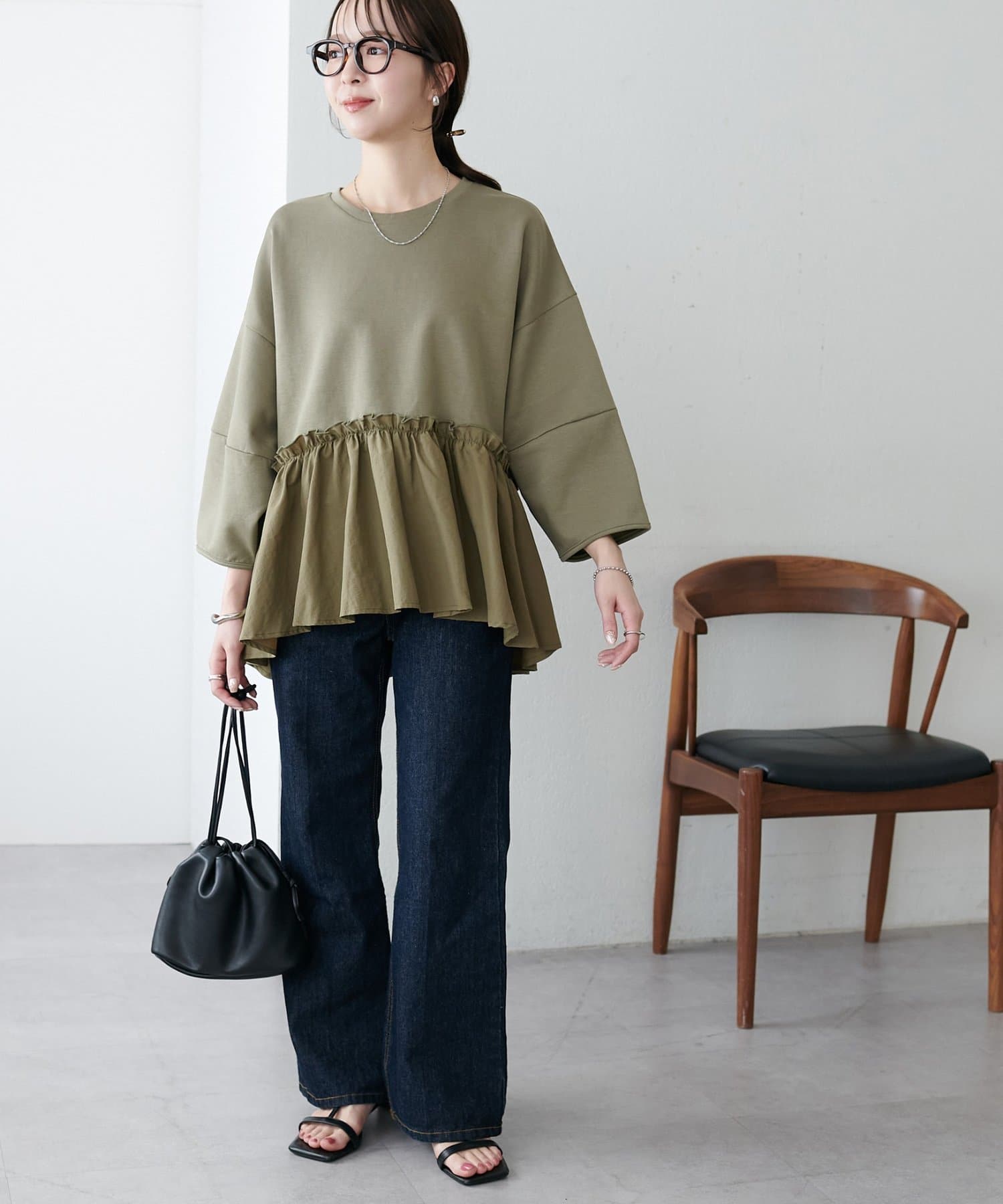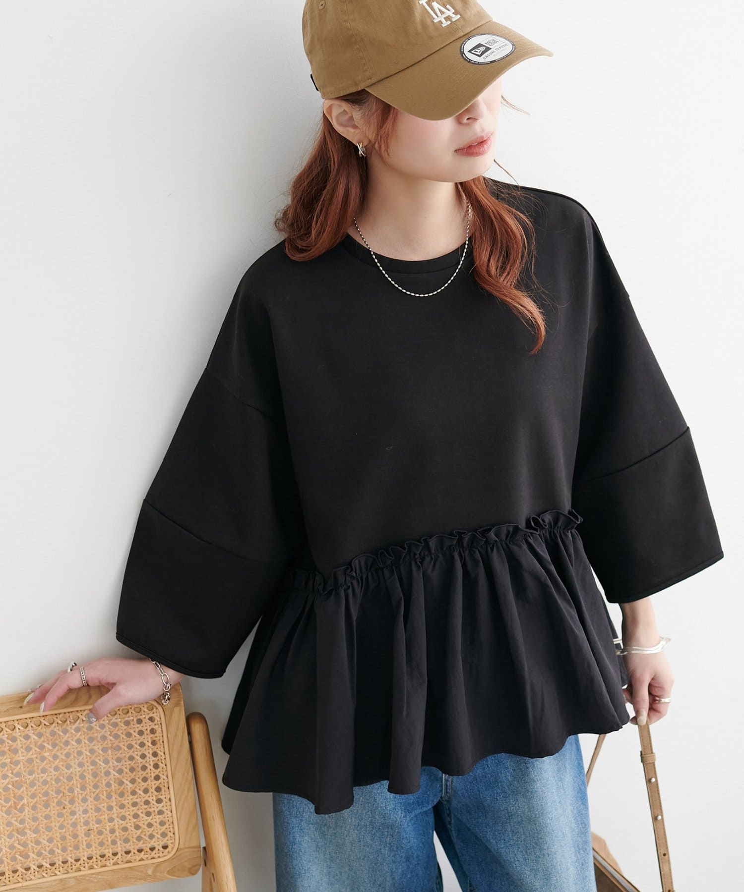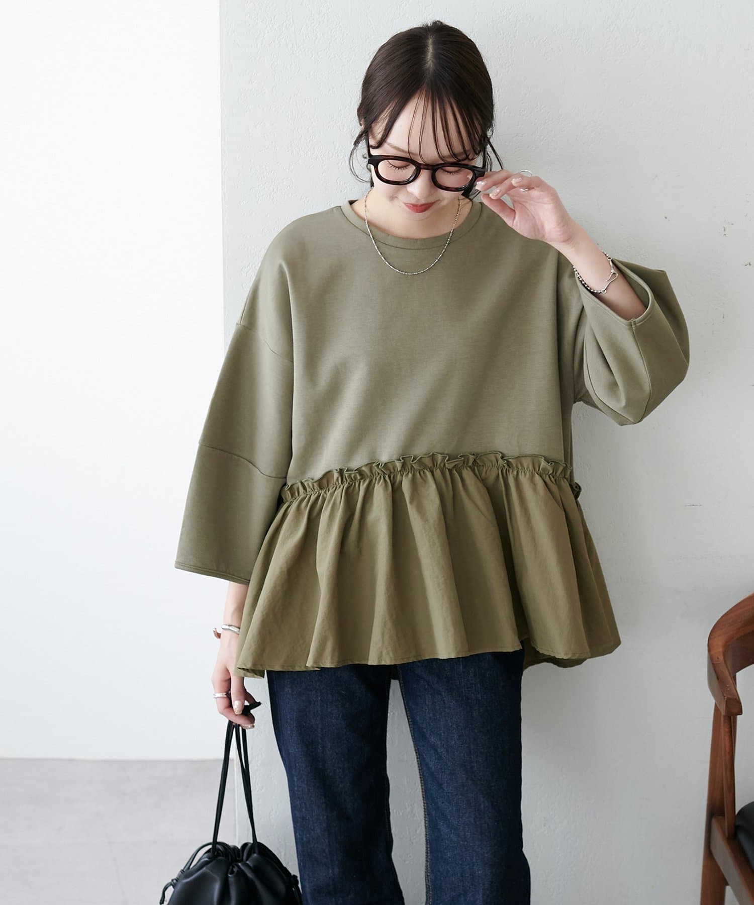 TOP > DISCOAT > レディース > トップス > Tシャツ/カットソー > 【WEB限定】裾布帛ドッキングプルオーバー