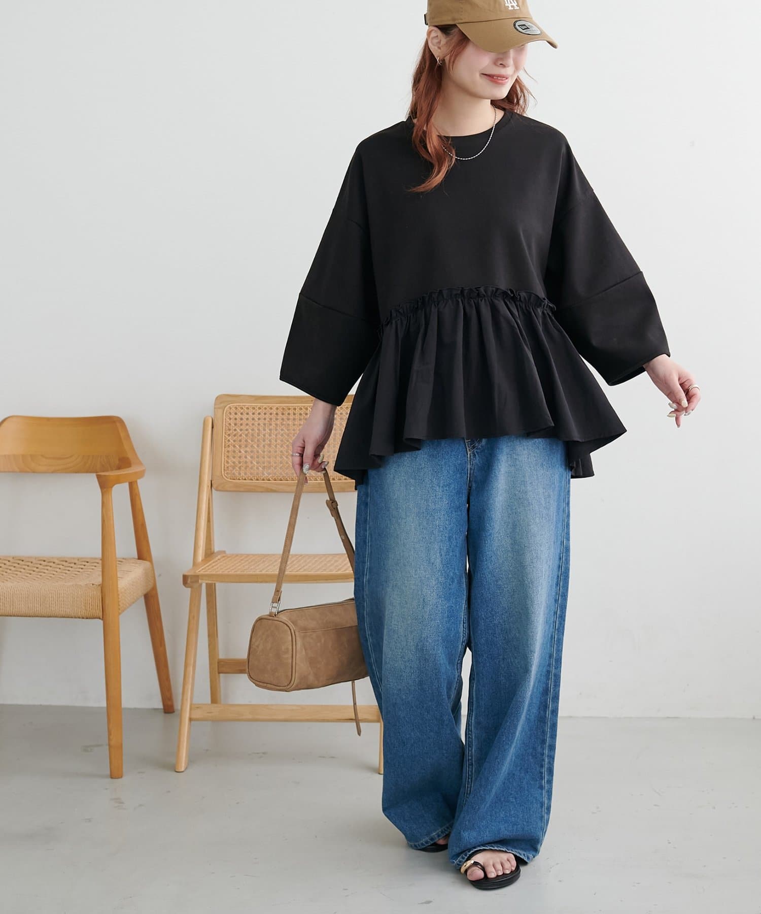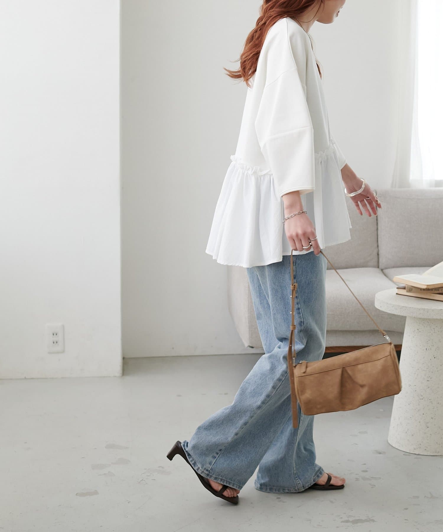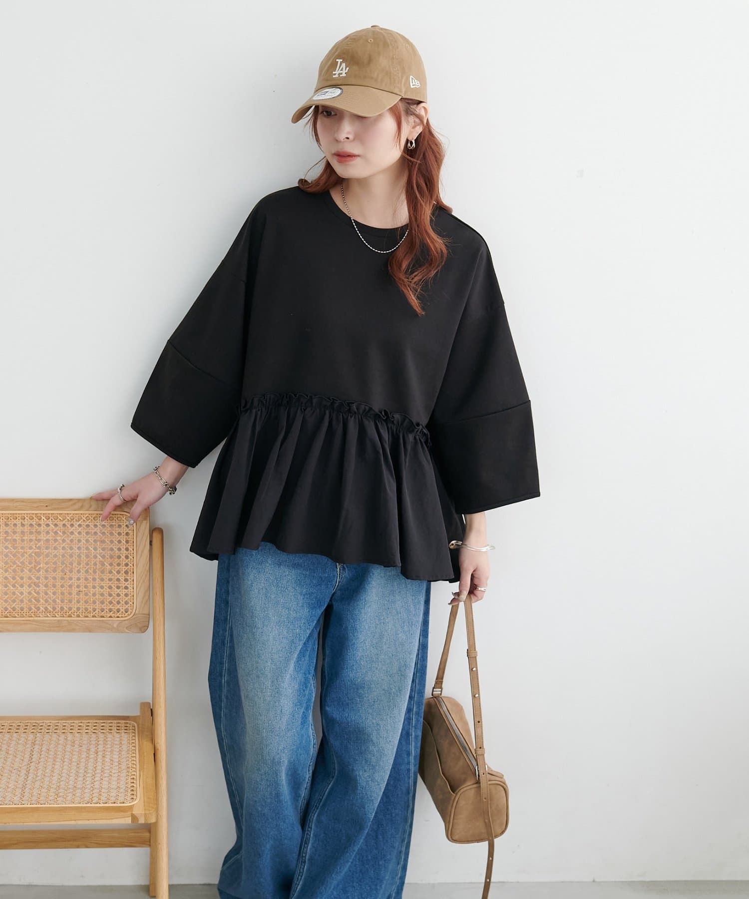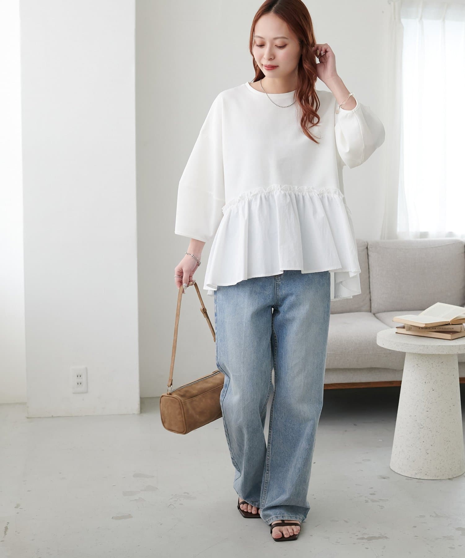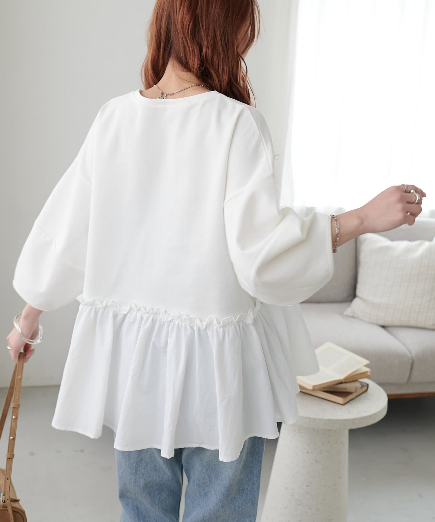 TOP > DISCOAT > レディース > トップス > Tシャツ/カットソー > 【WEB限定】裾布帛ドッキングプルオーバー