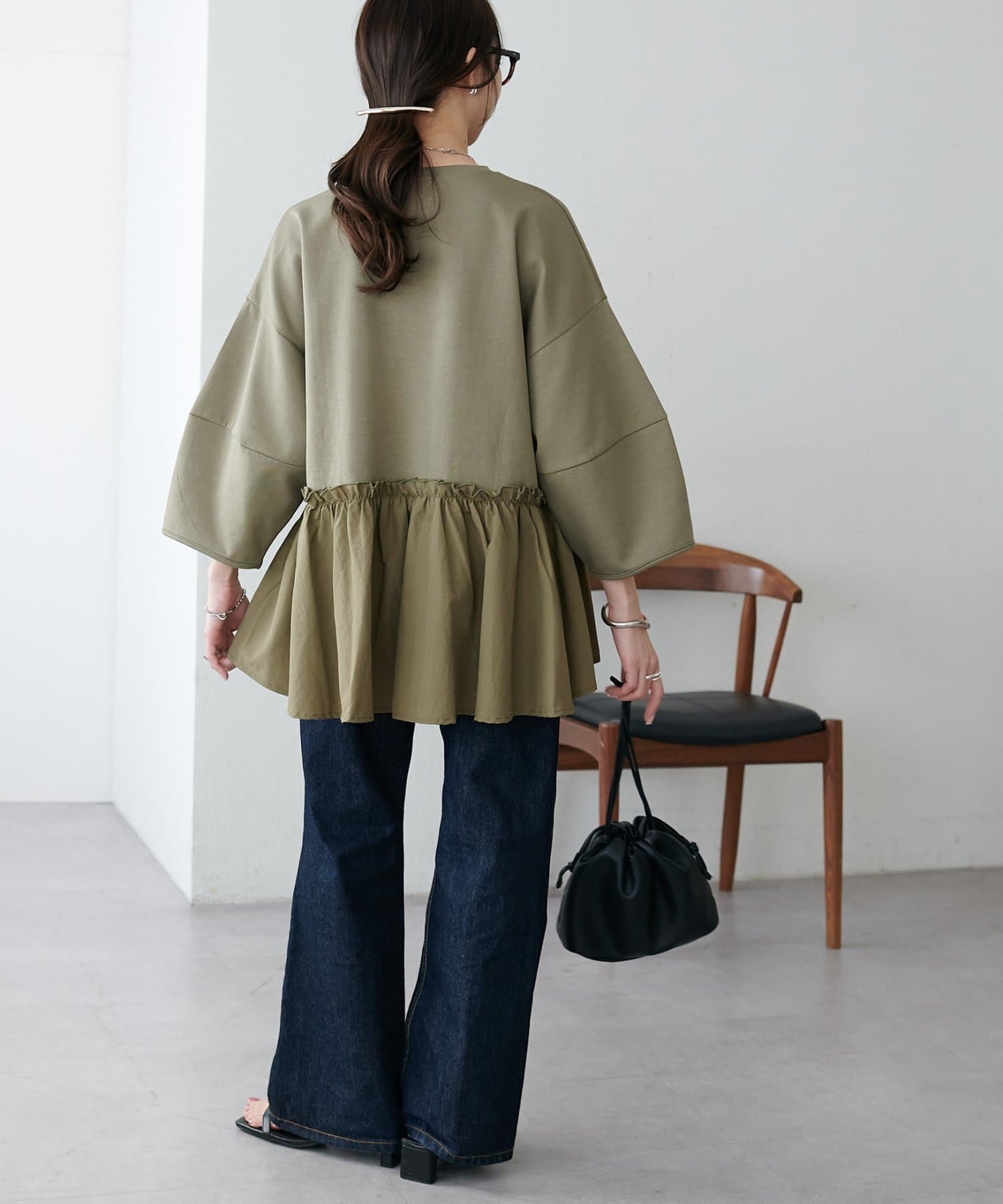 DISCOAT(ディスコート) 【WEB限定】裾布帛ドッキングプルオーバー