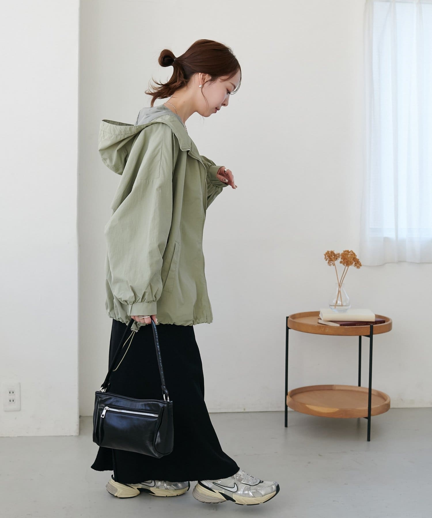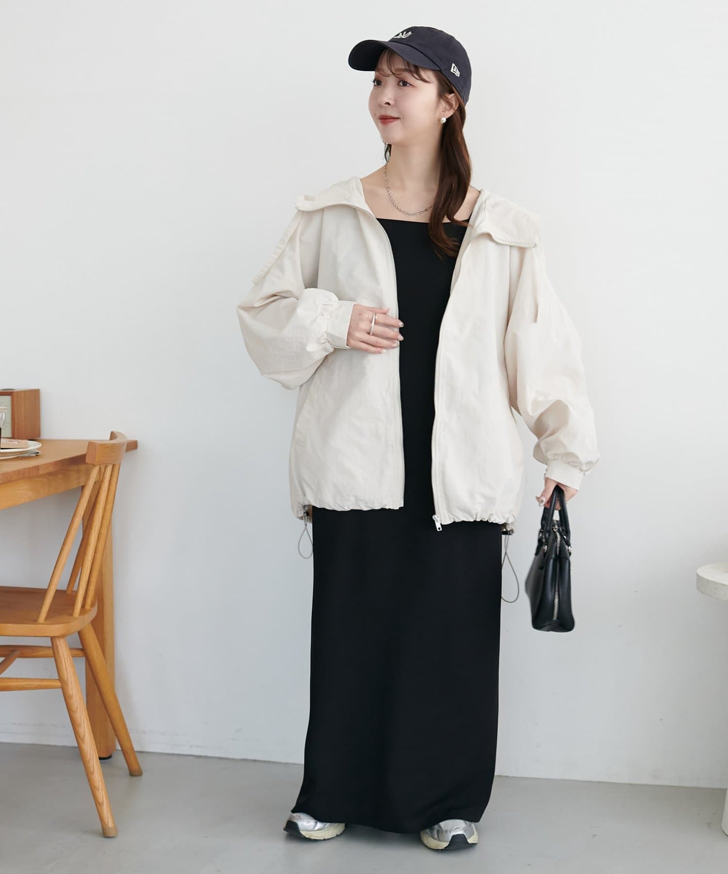 160cmスタッフ:お尻がすっぽり隠れる丈感が嬉しいポイントです◎軽量で持ち運びもしやすく、気温調整用のアウターとしても便利です。