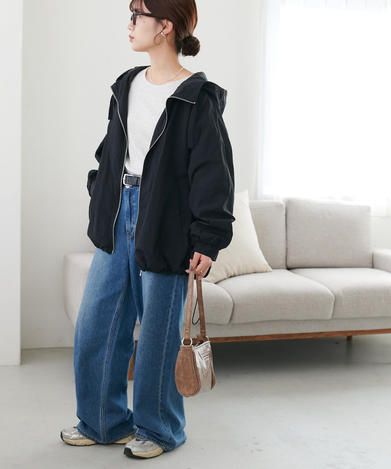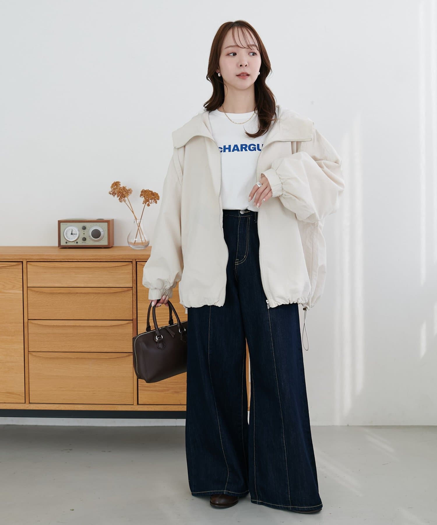 164cmスタッフ:ゆったりとしたサイズ感で、中に厚手のスウェットなども着込めます。袖をぐっとたくし上げると、ボリューム感が出てこなれた雰囲気で着こなせるのでおすすめです♪