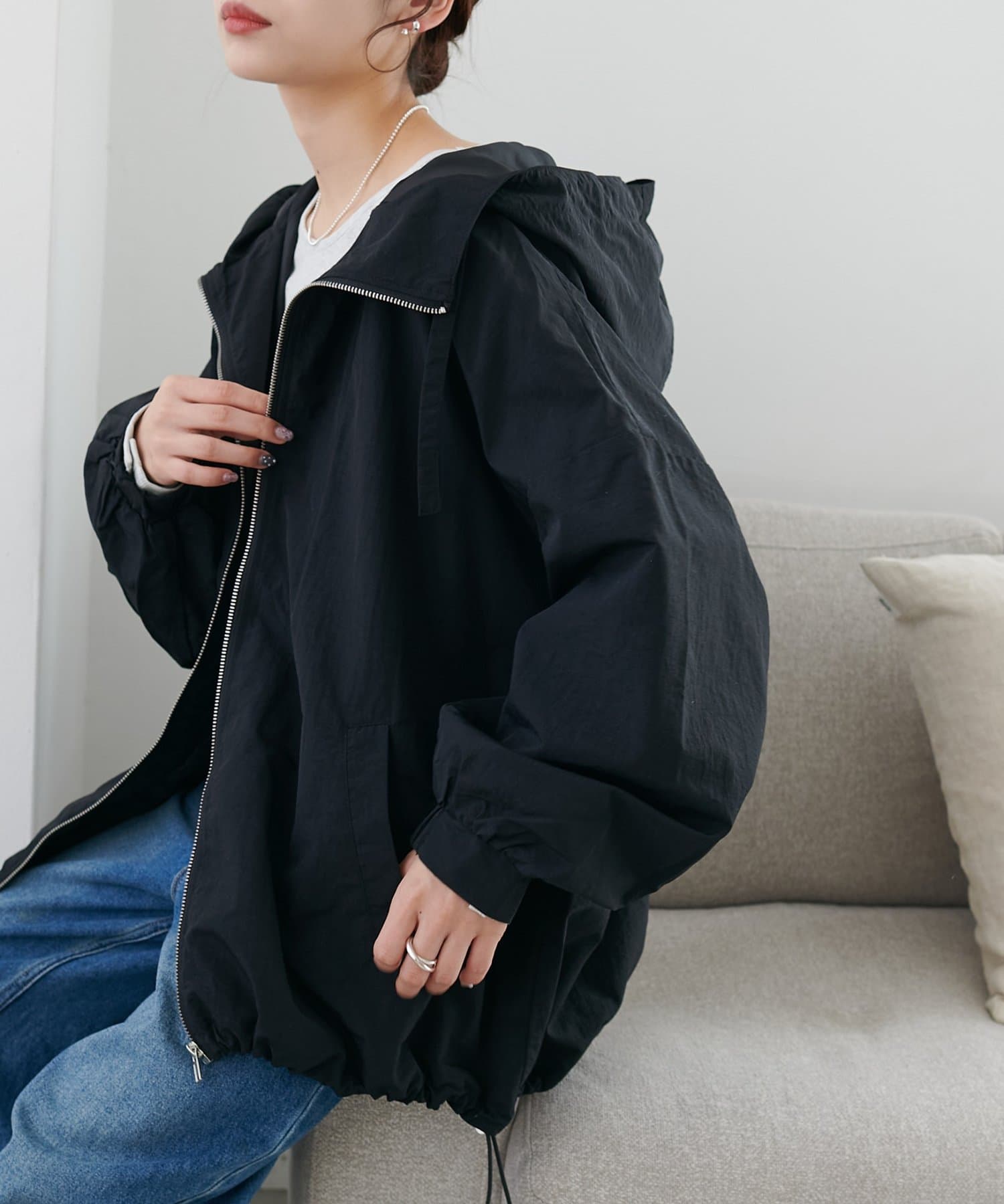 ・裾に施されたドローコードを絞ることで、お好みのシルエットにアレンジが可能