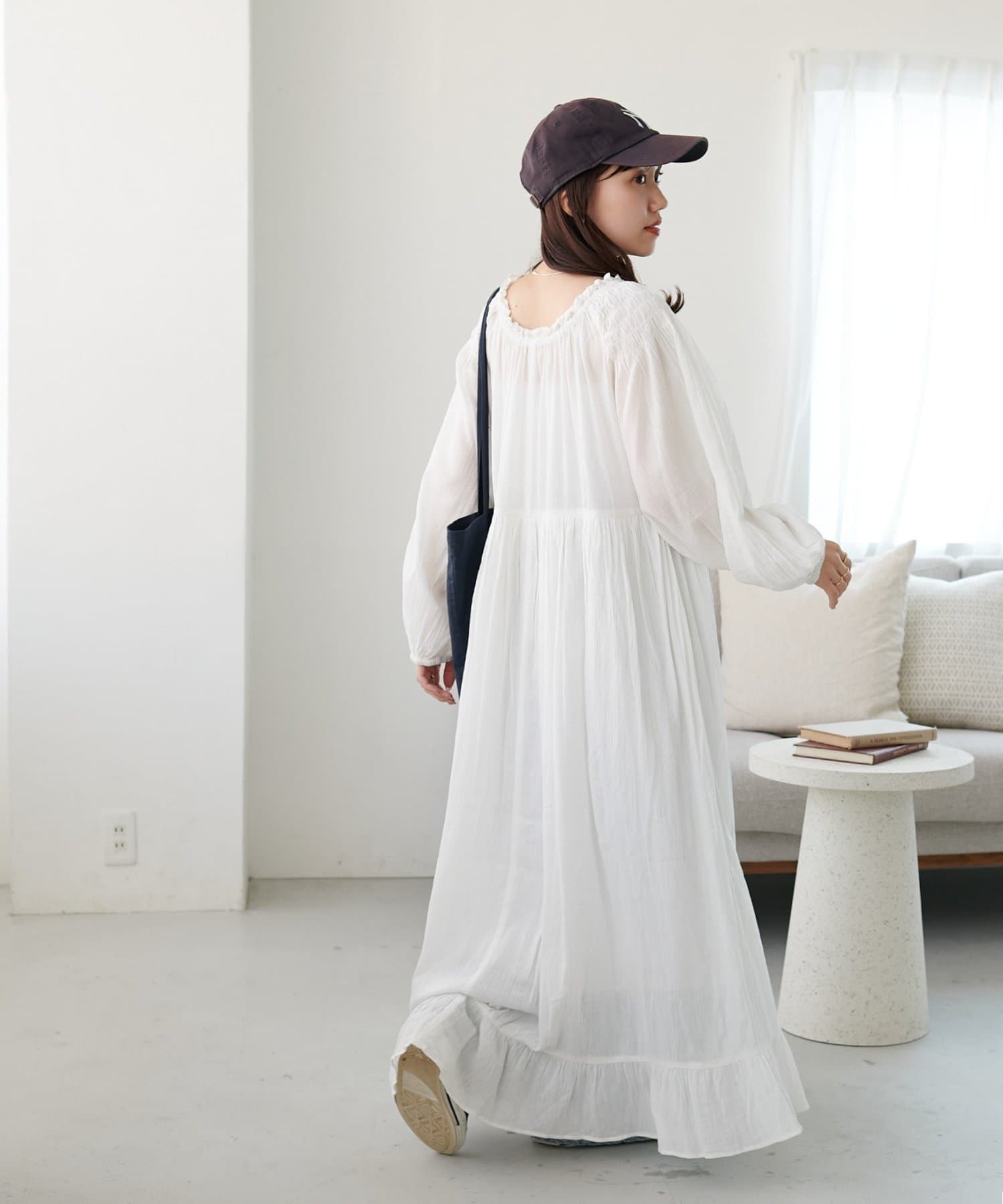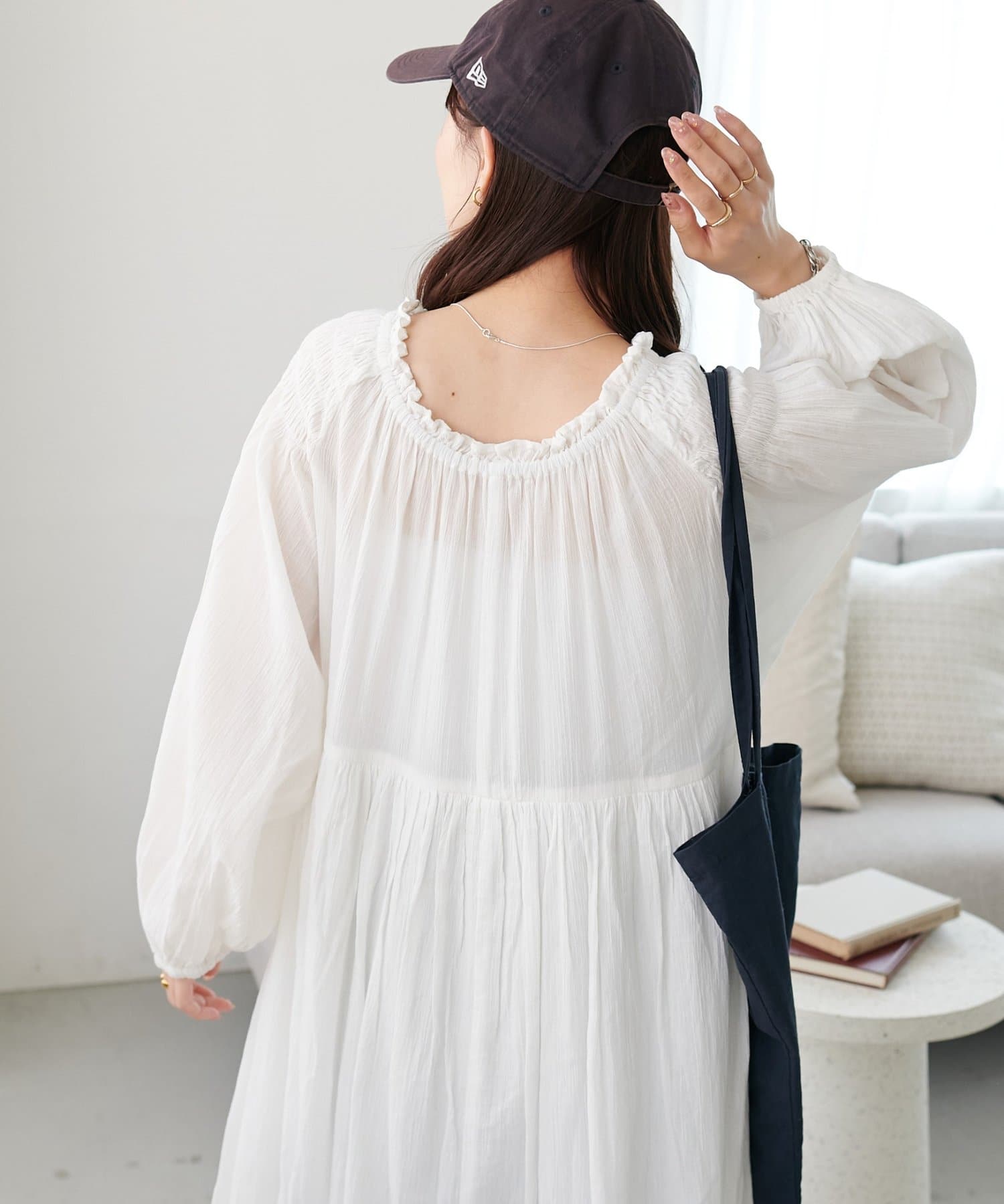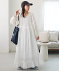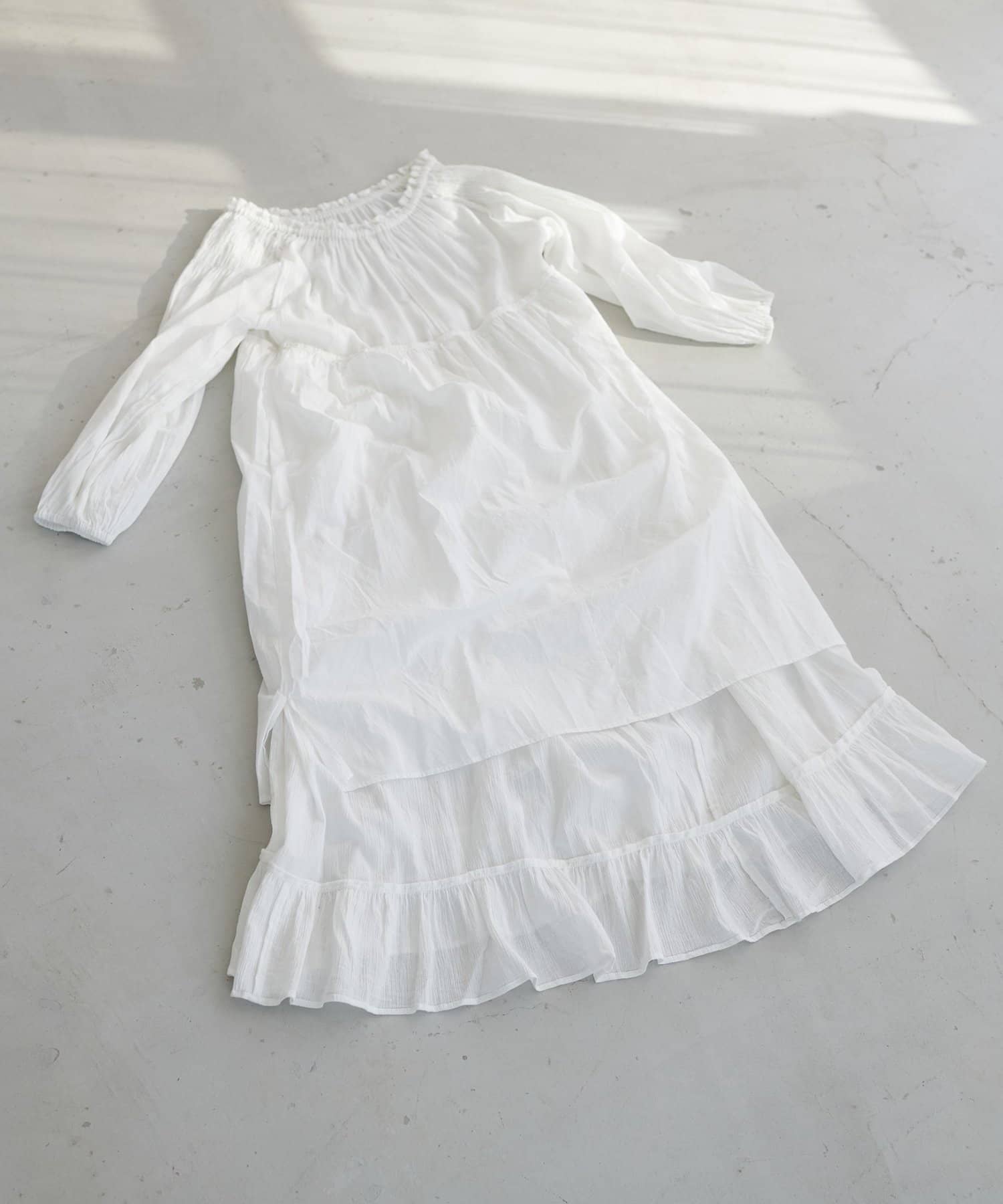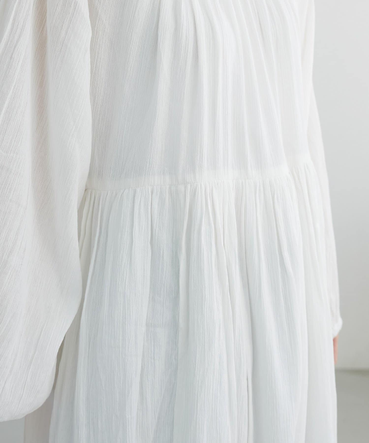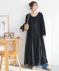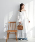 【Discoat】【India】コットンクレープ肩シャーリングワンピース