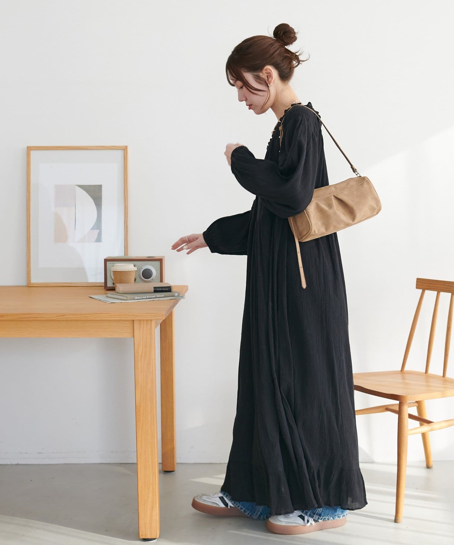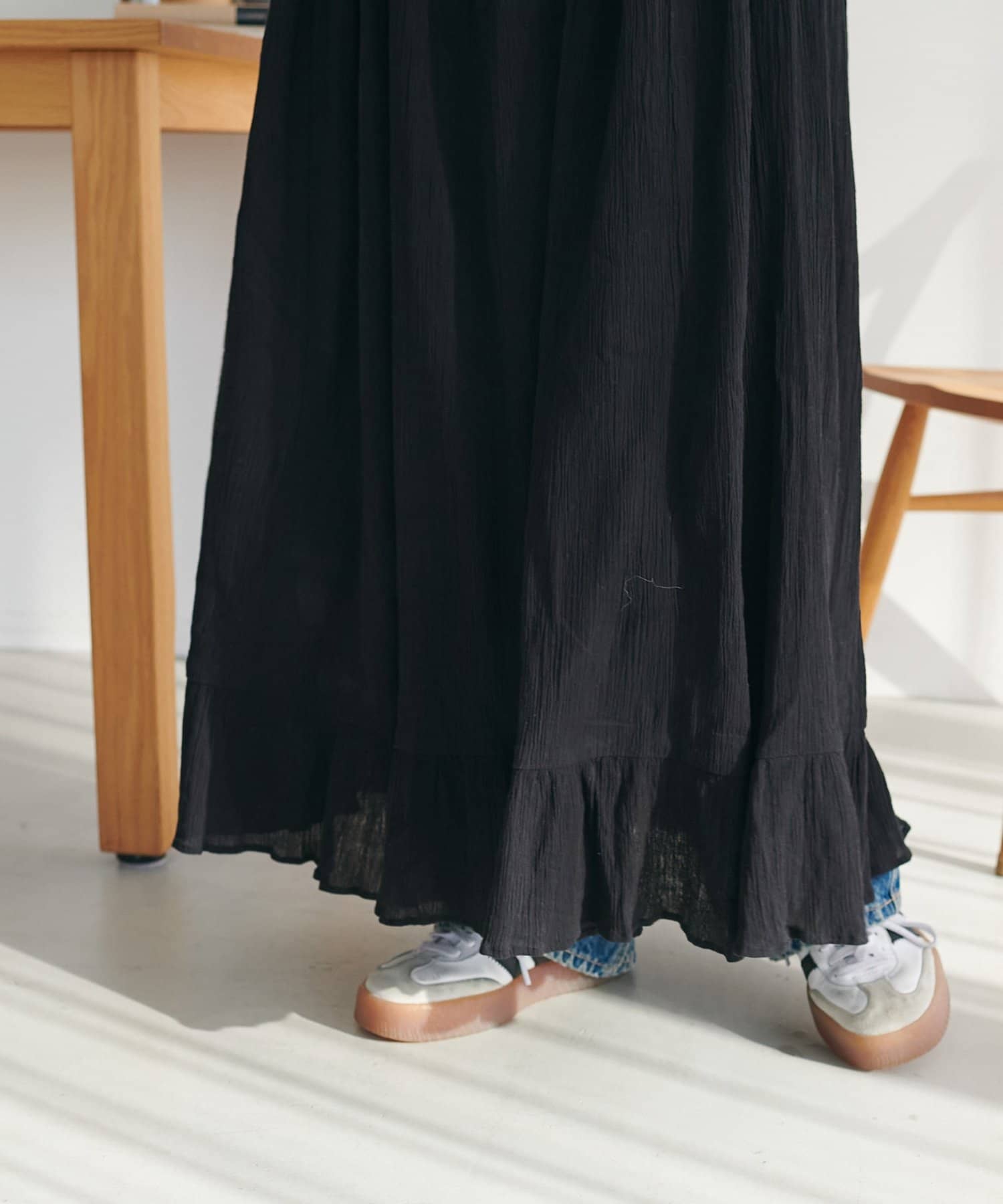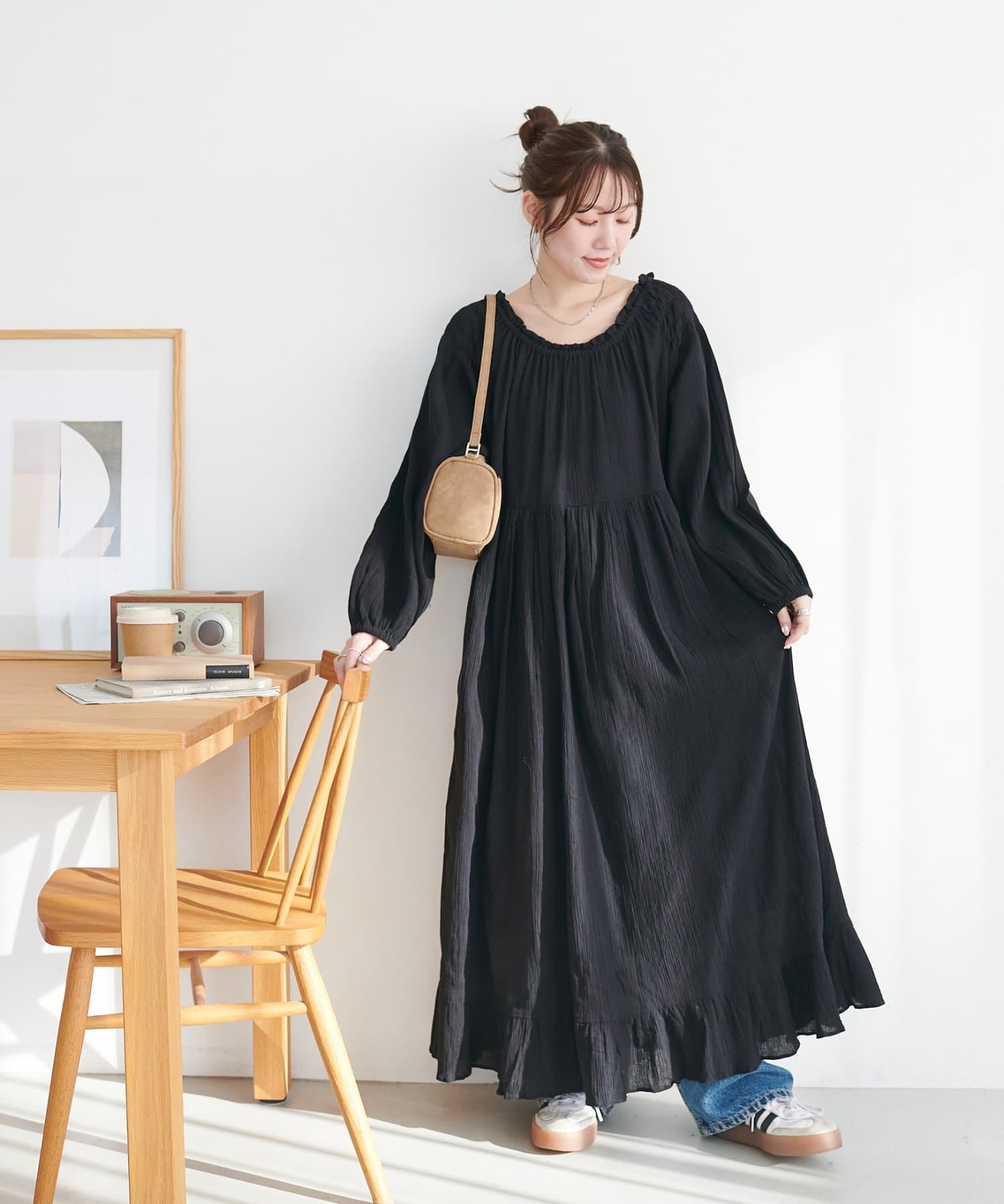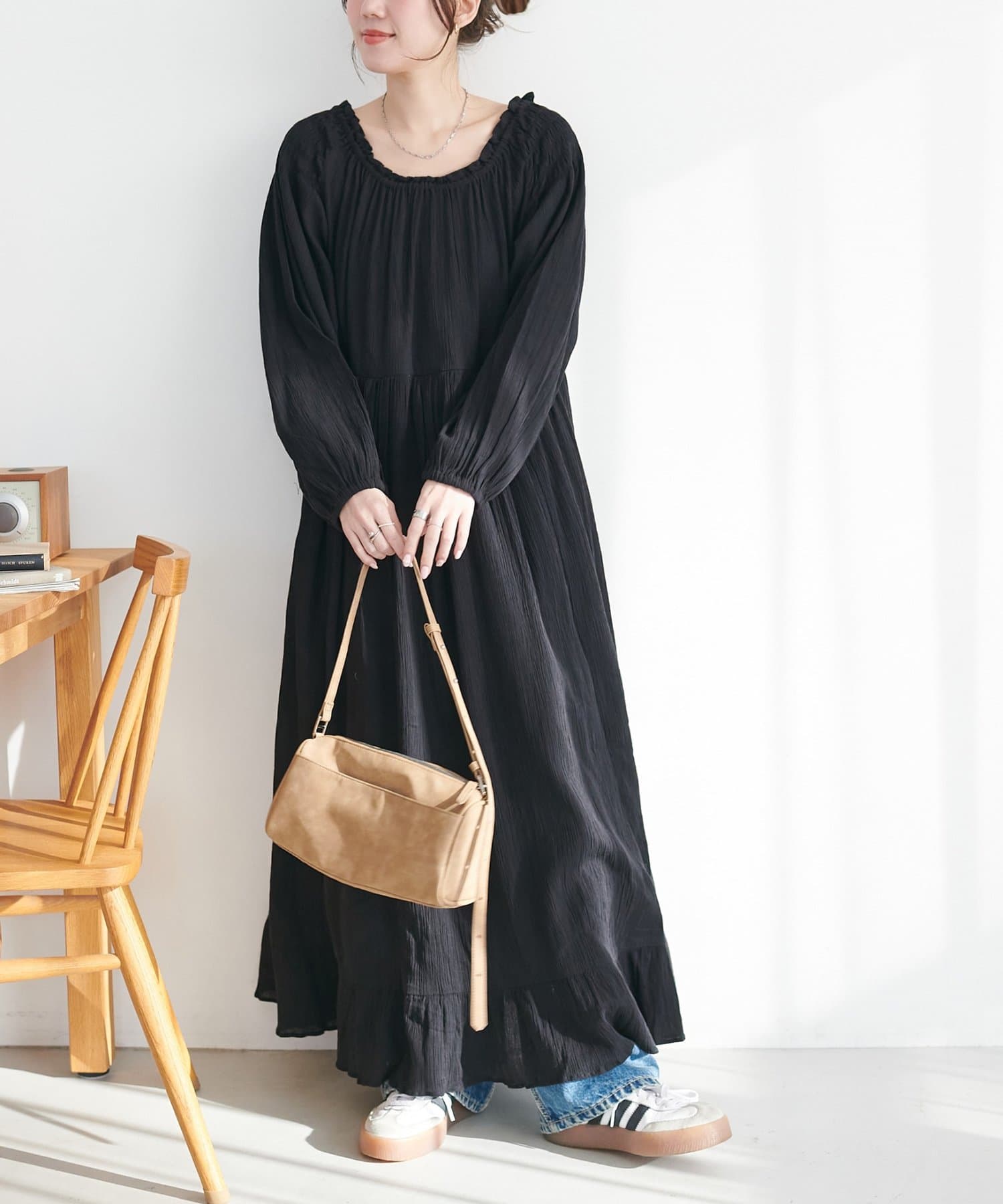 【Discoat】【India】コットンクレープ肩シャーリングワンピース