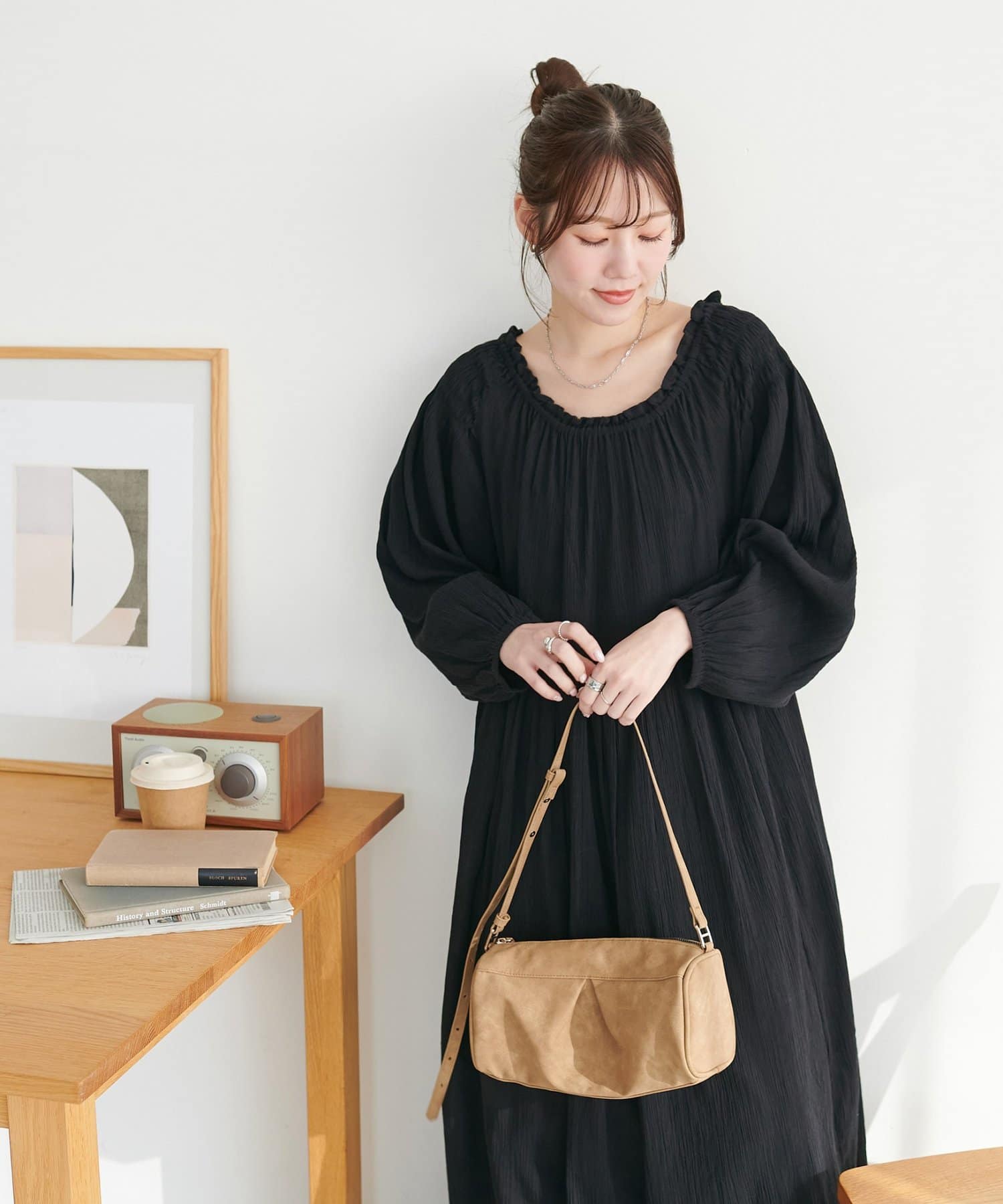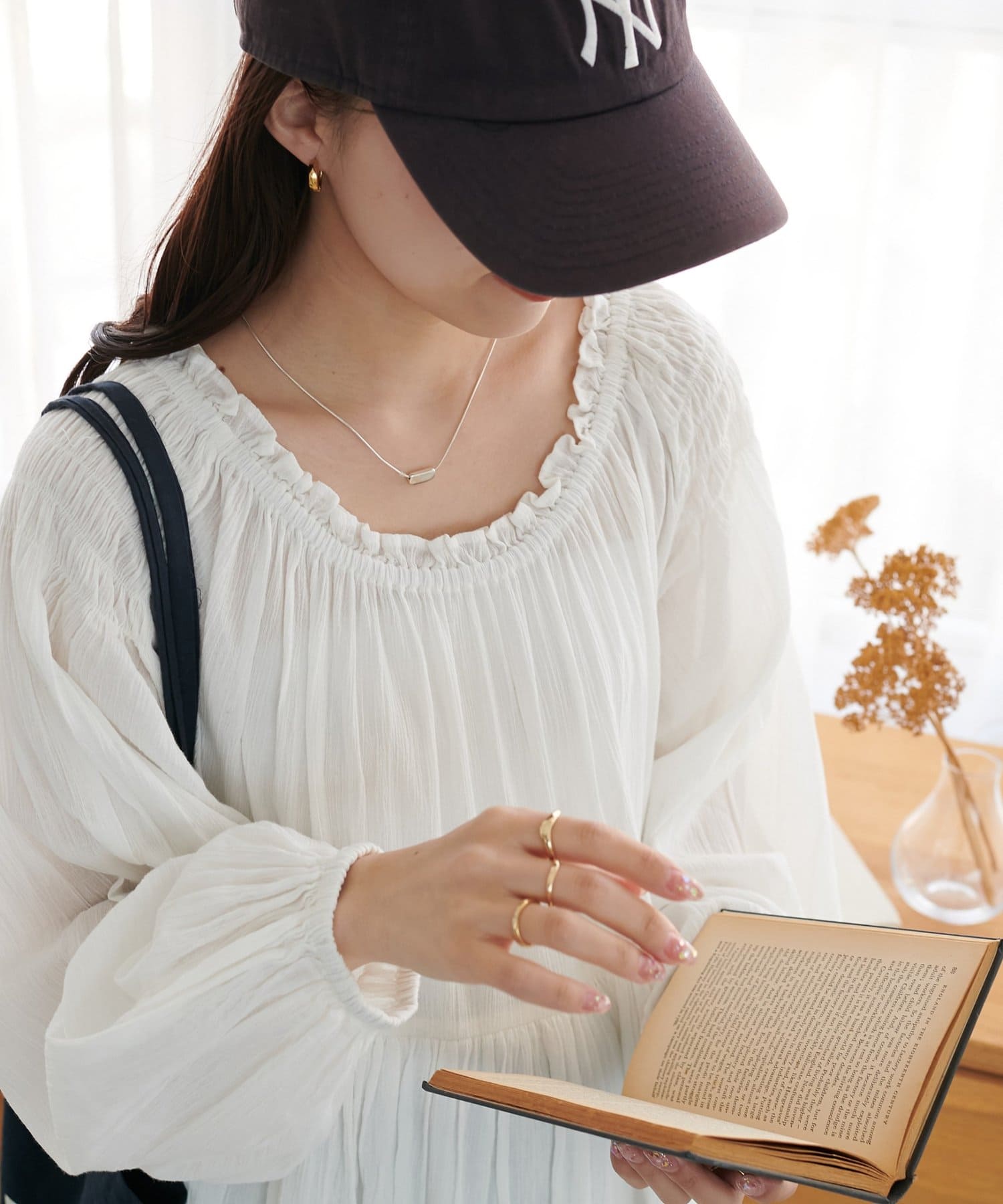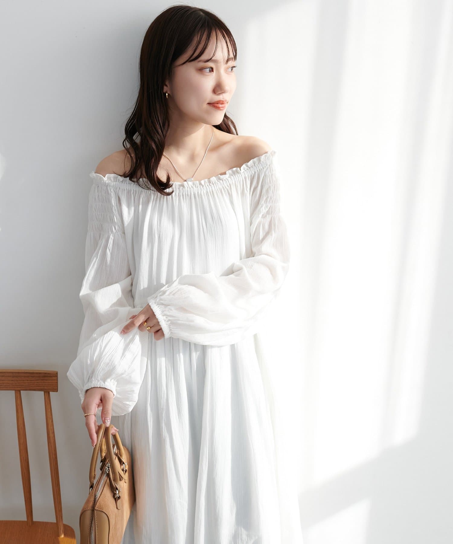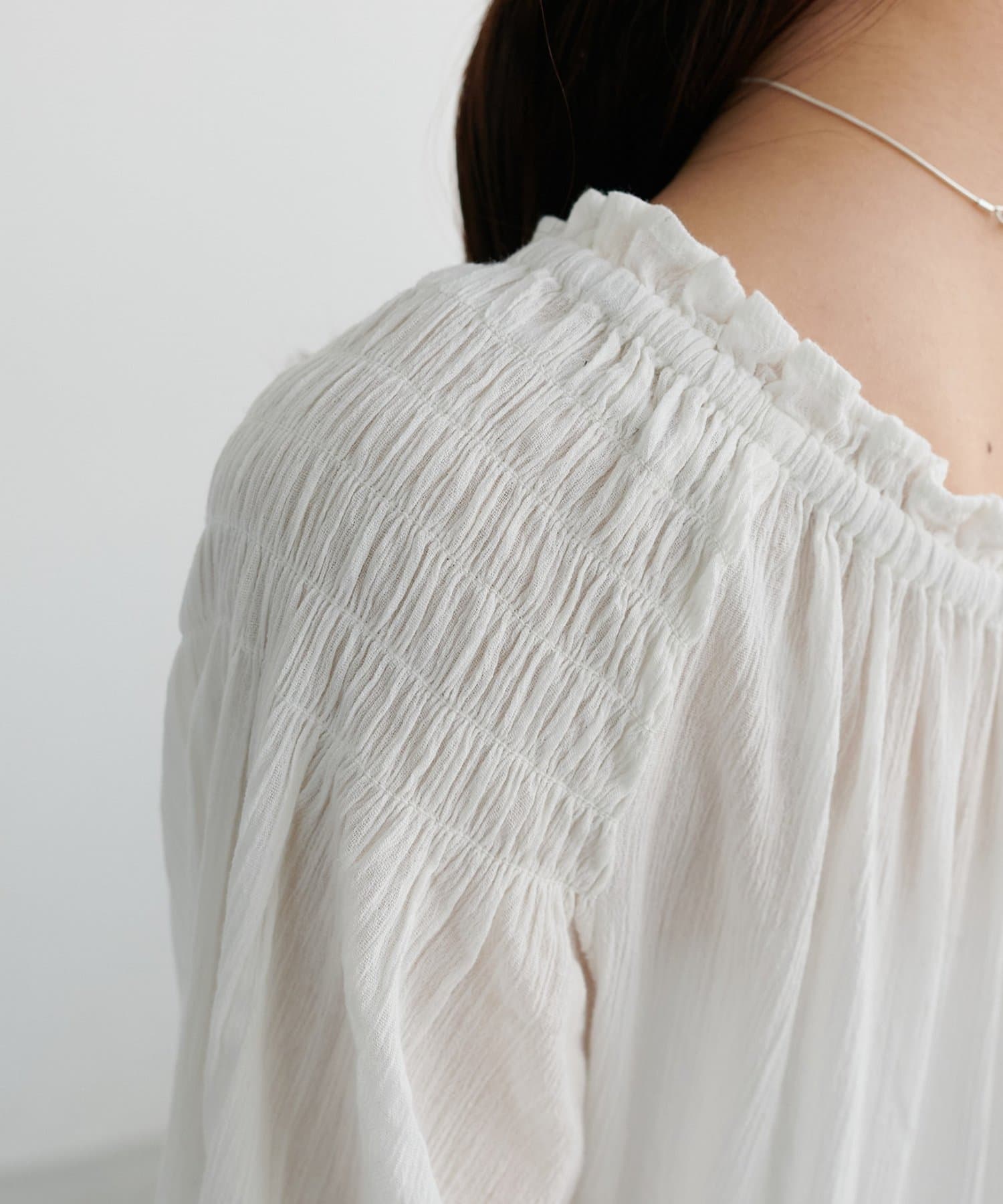 ・首元はゴム仕様で、オフショルとしても着用可能