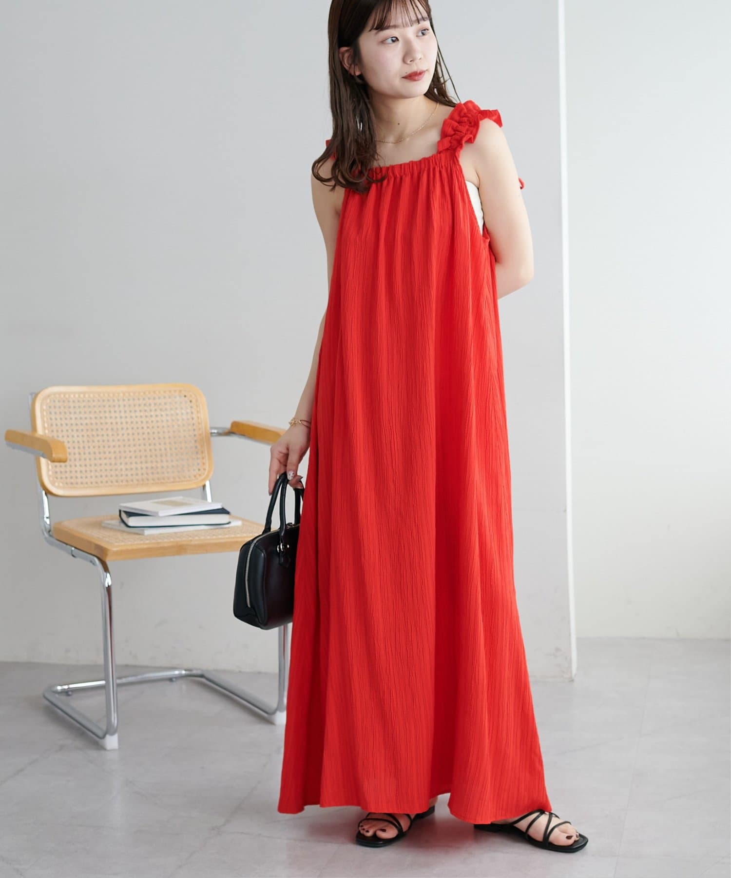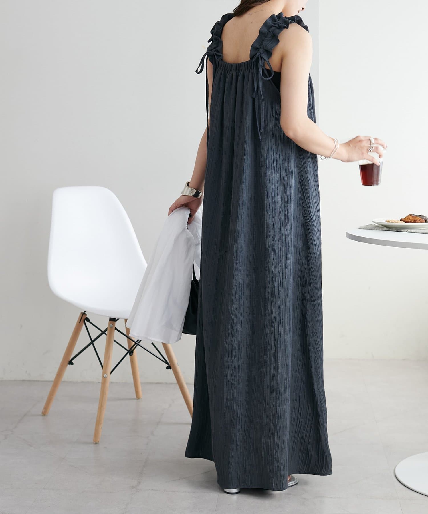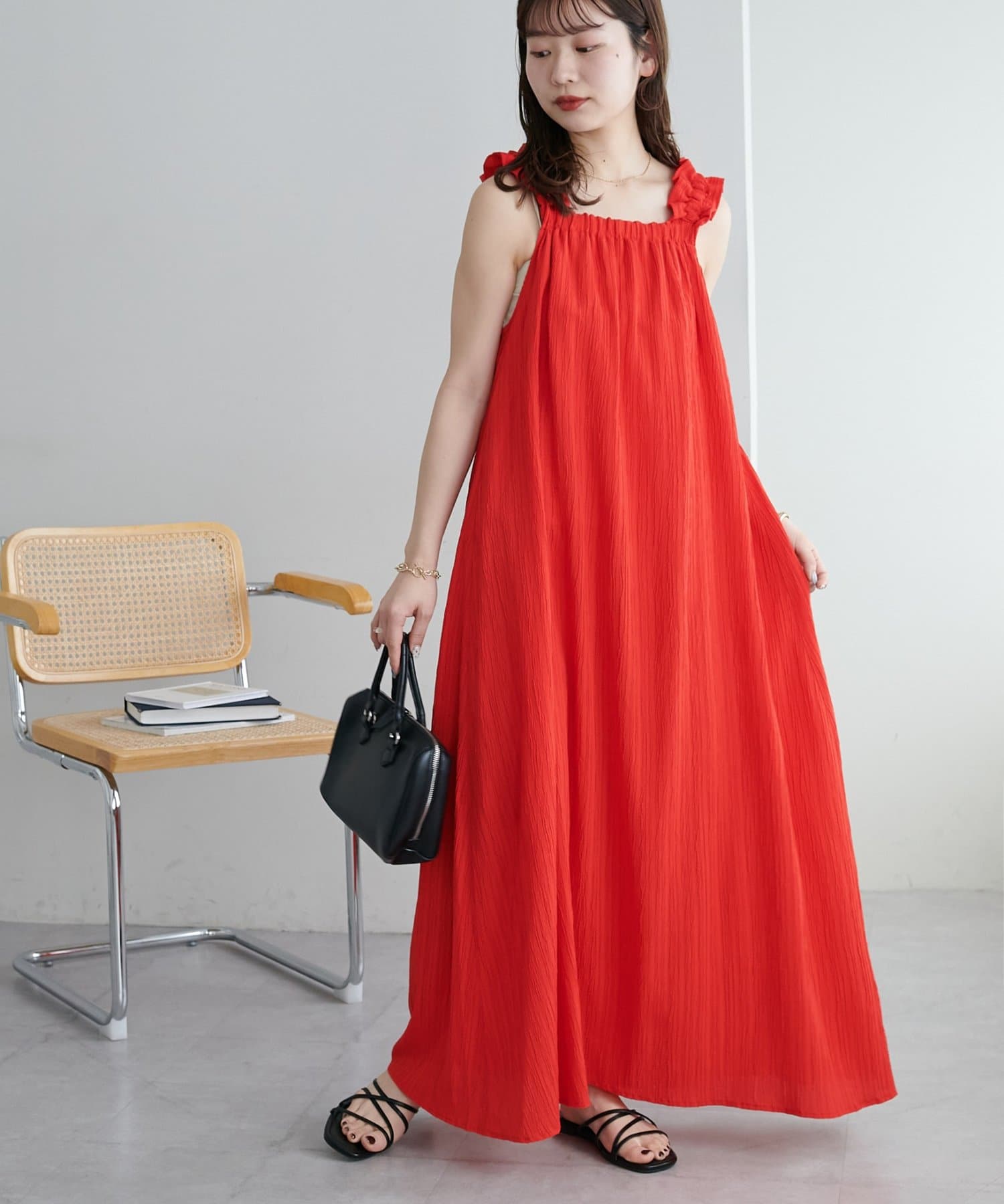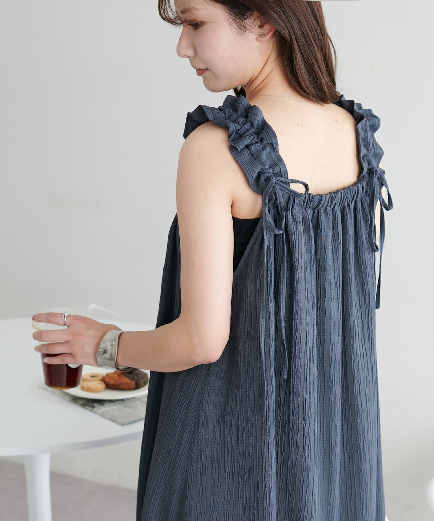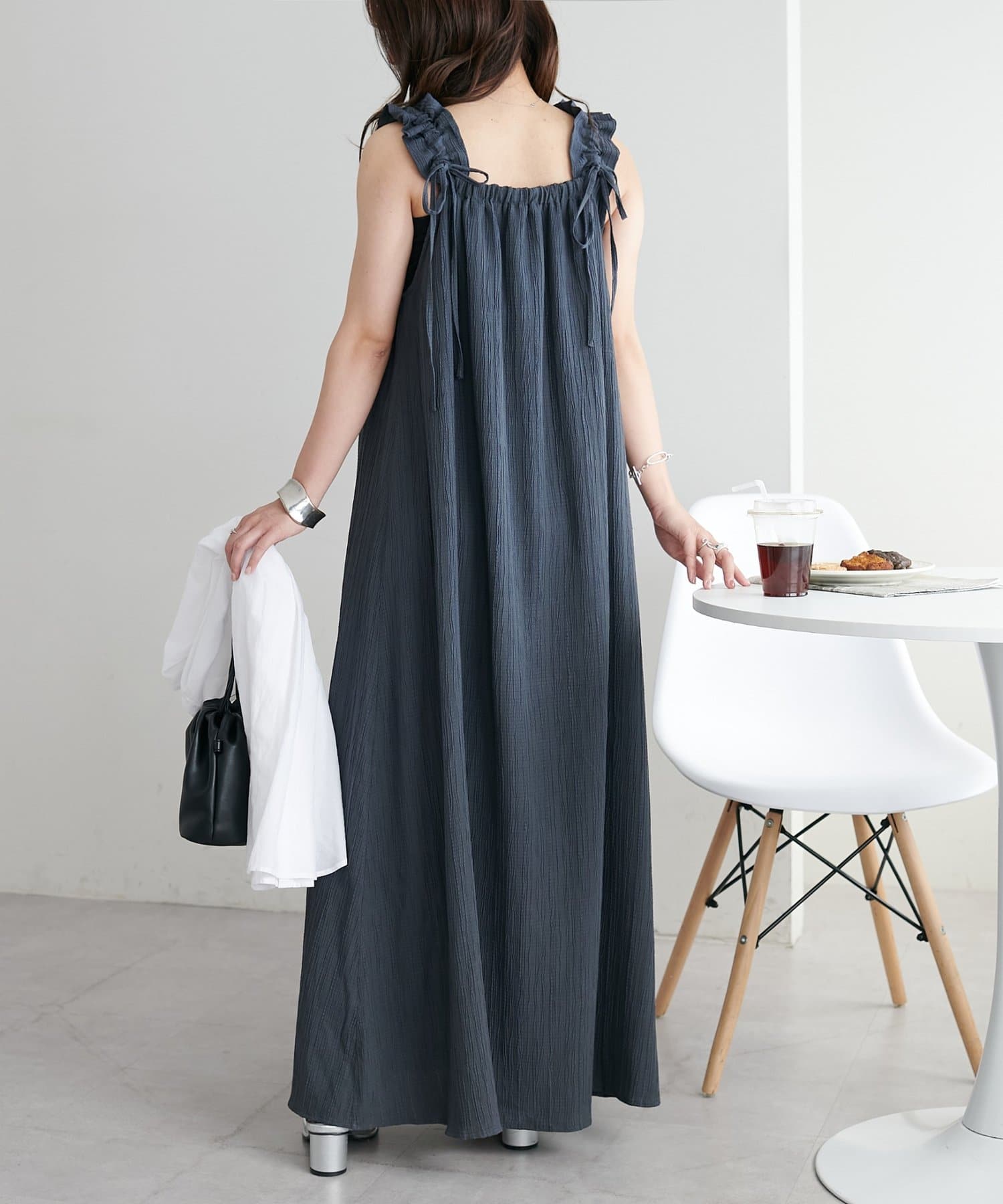【後ろ姿まで抜かりなく♪】ギャザーノースリワンピース《WEB限定》
