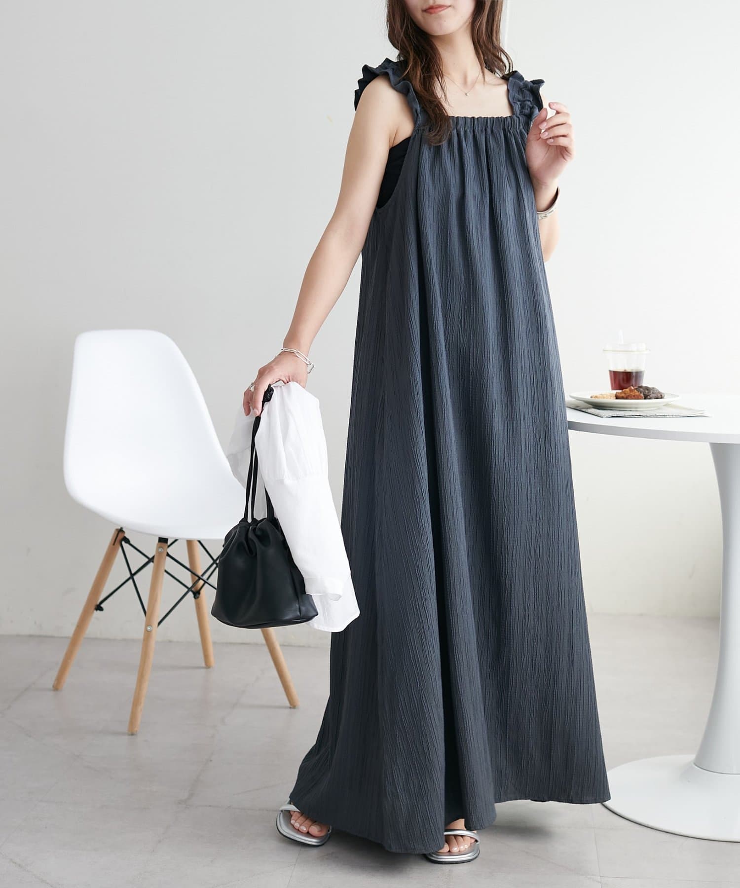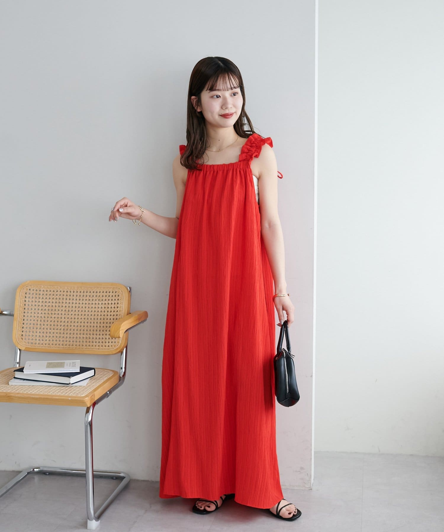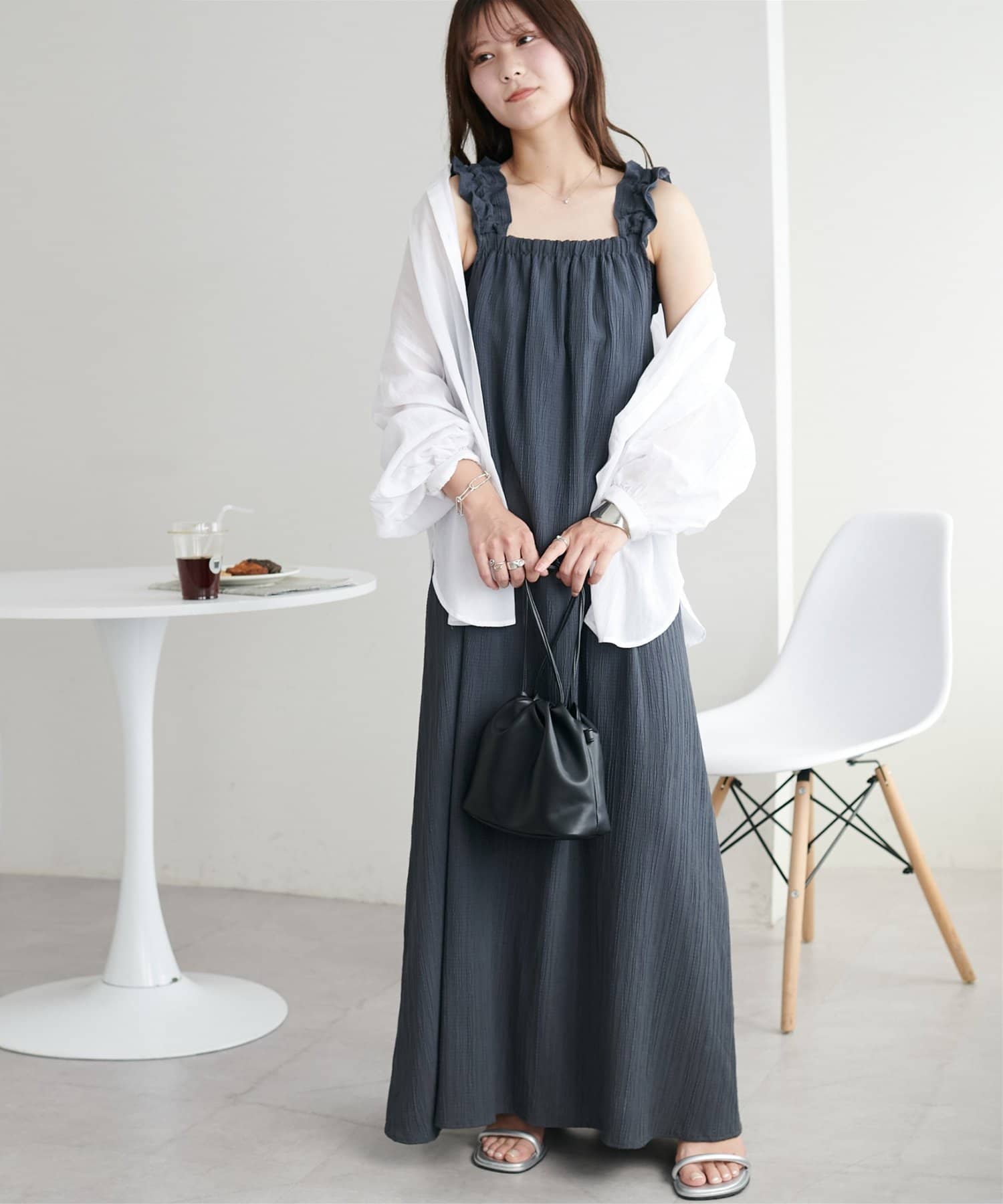 一枚着でももちろんかわいいですが、デニムパンツでカジュアルにも合わせられるので、様々なスタイリングが楽しめます◎