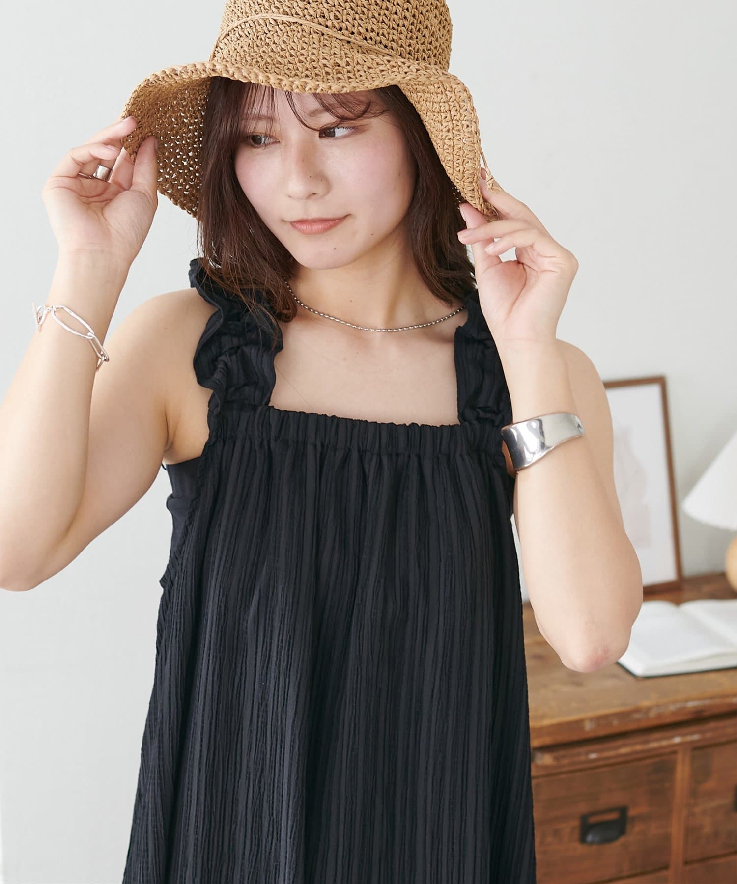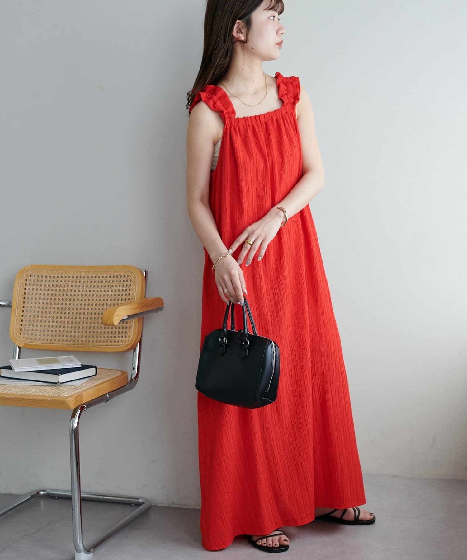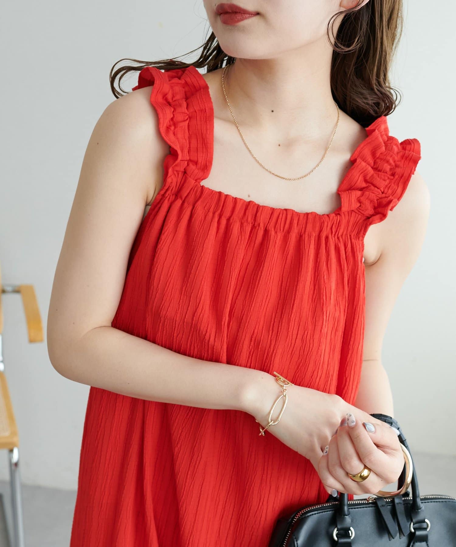 一枚着でももちろんかわいいですが、デニムパンツでカジュアルにも合わせられるので、様々なスタイリングが楽しめます◎