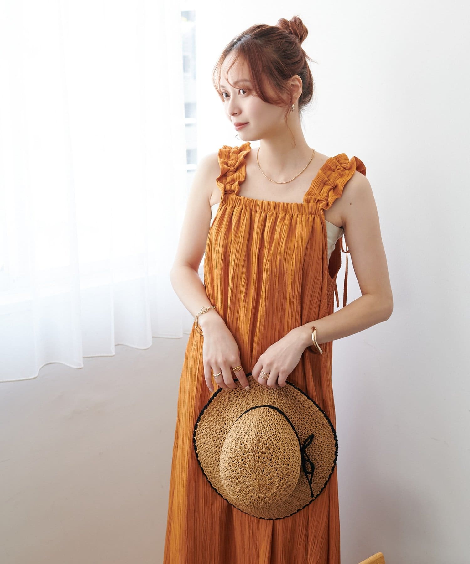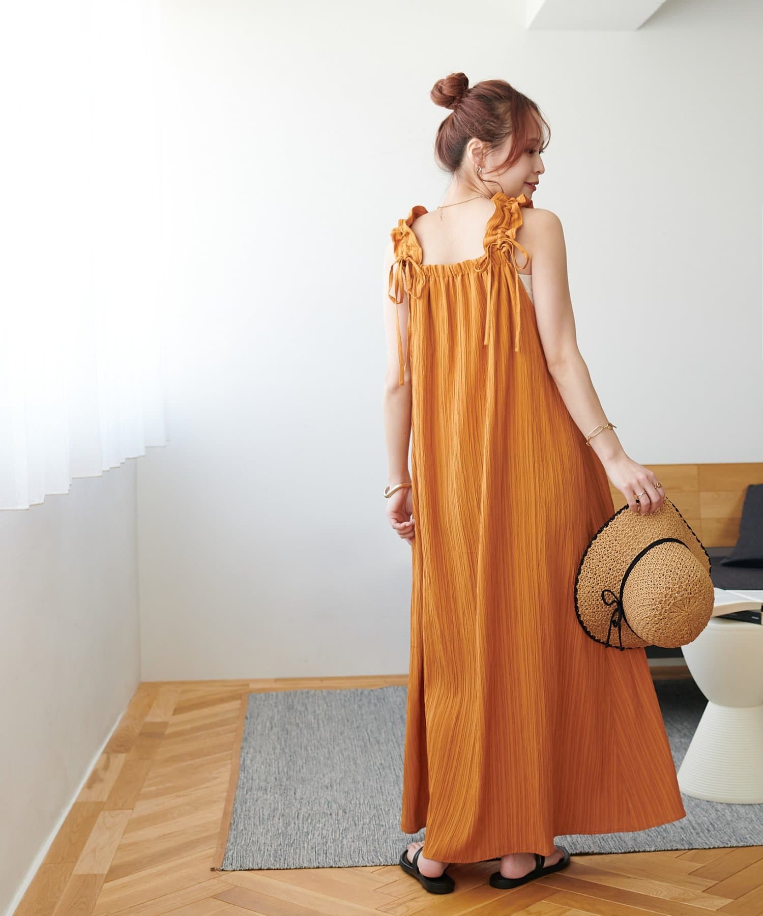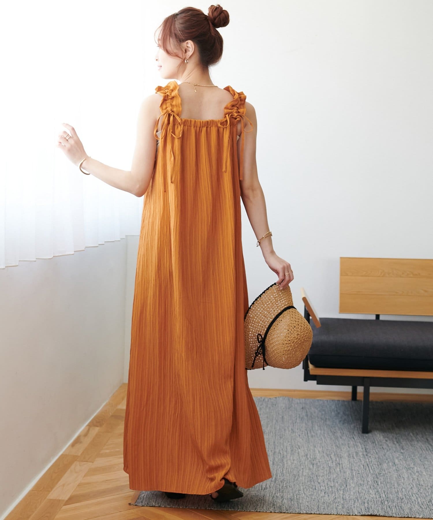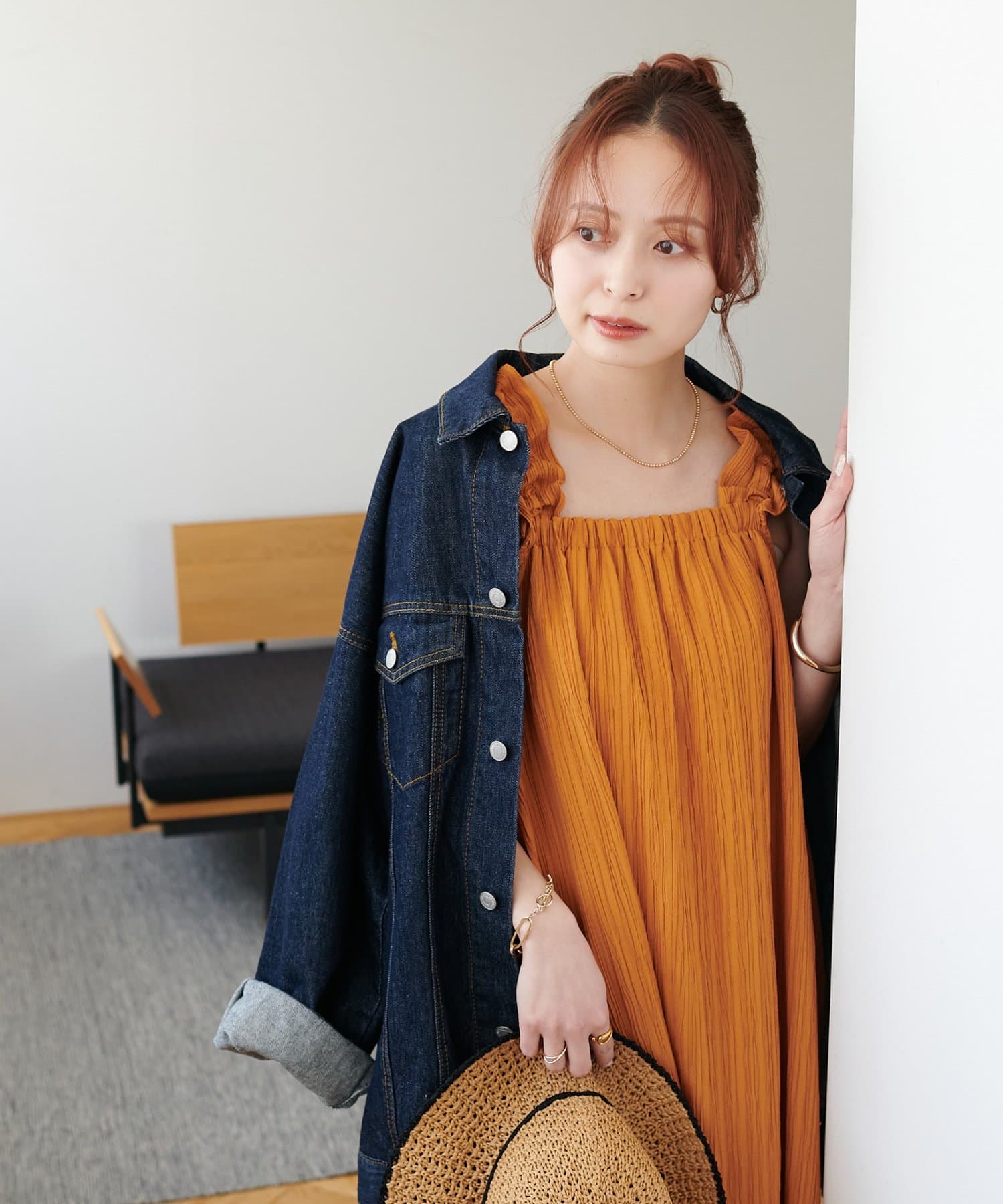 一枚着でももちろんかわいいですが、デニムパンツでカジュアルにも合わせられるので、様々なスタイリングが楽しめます◎