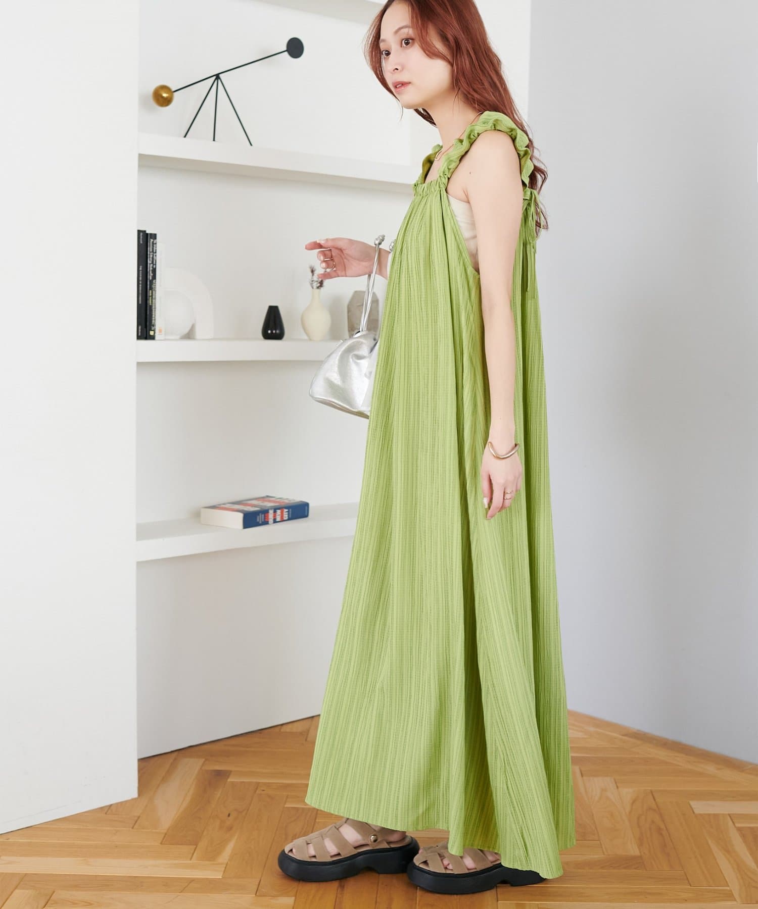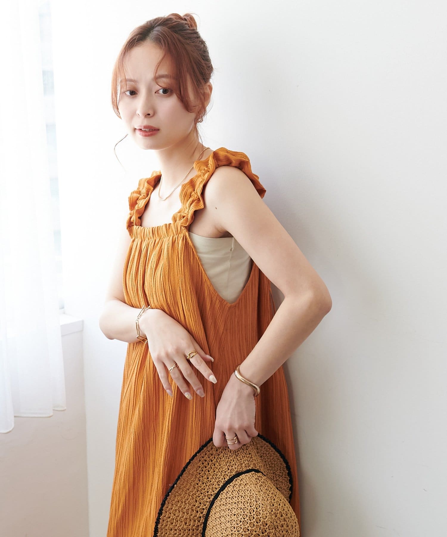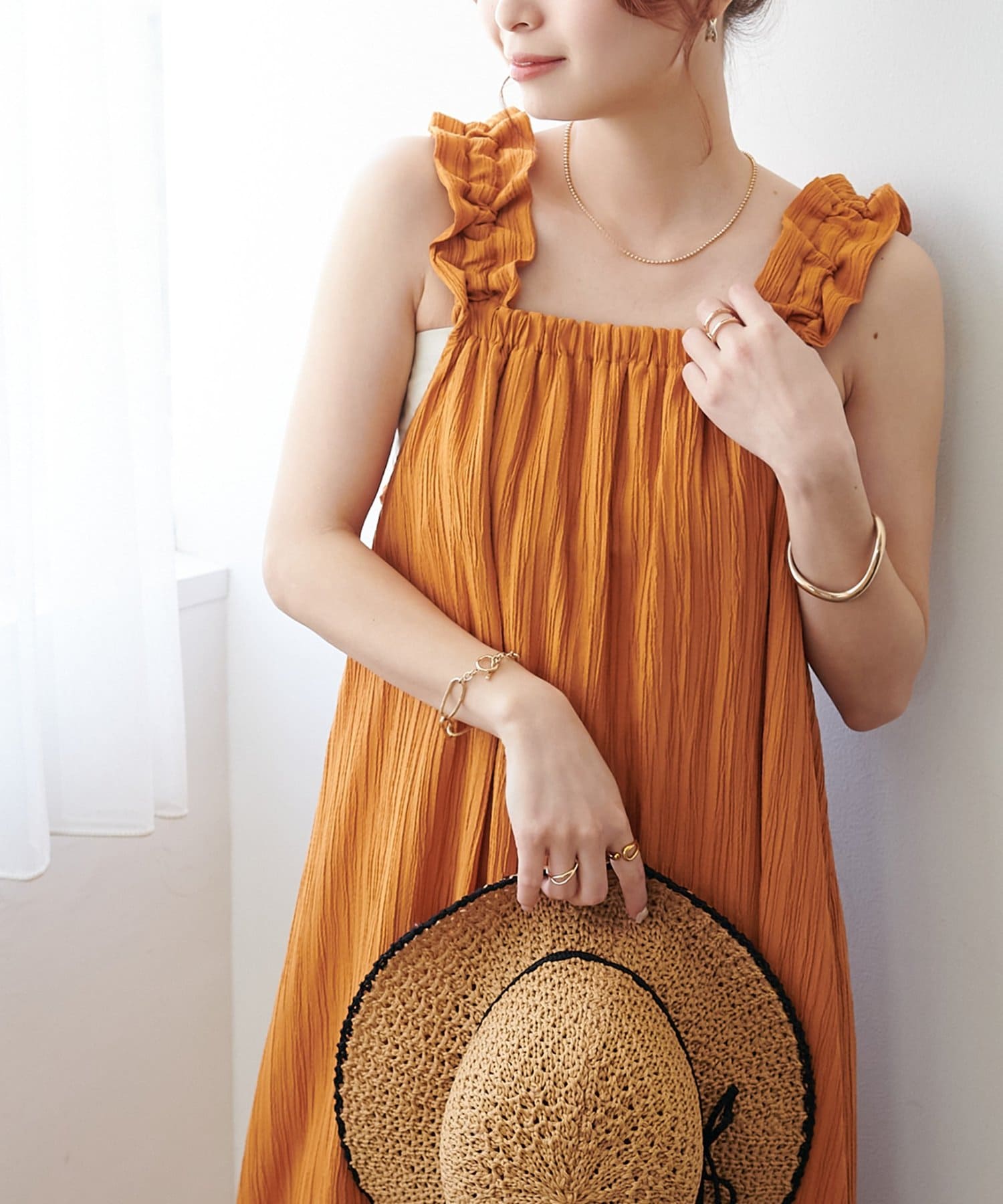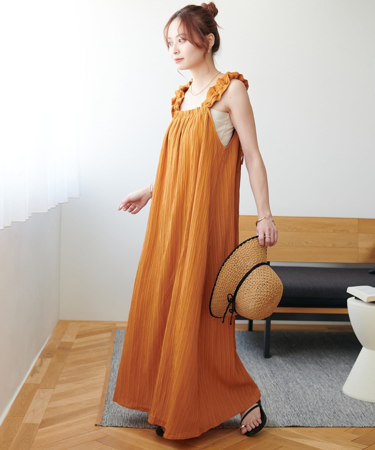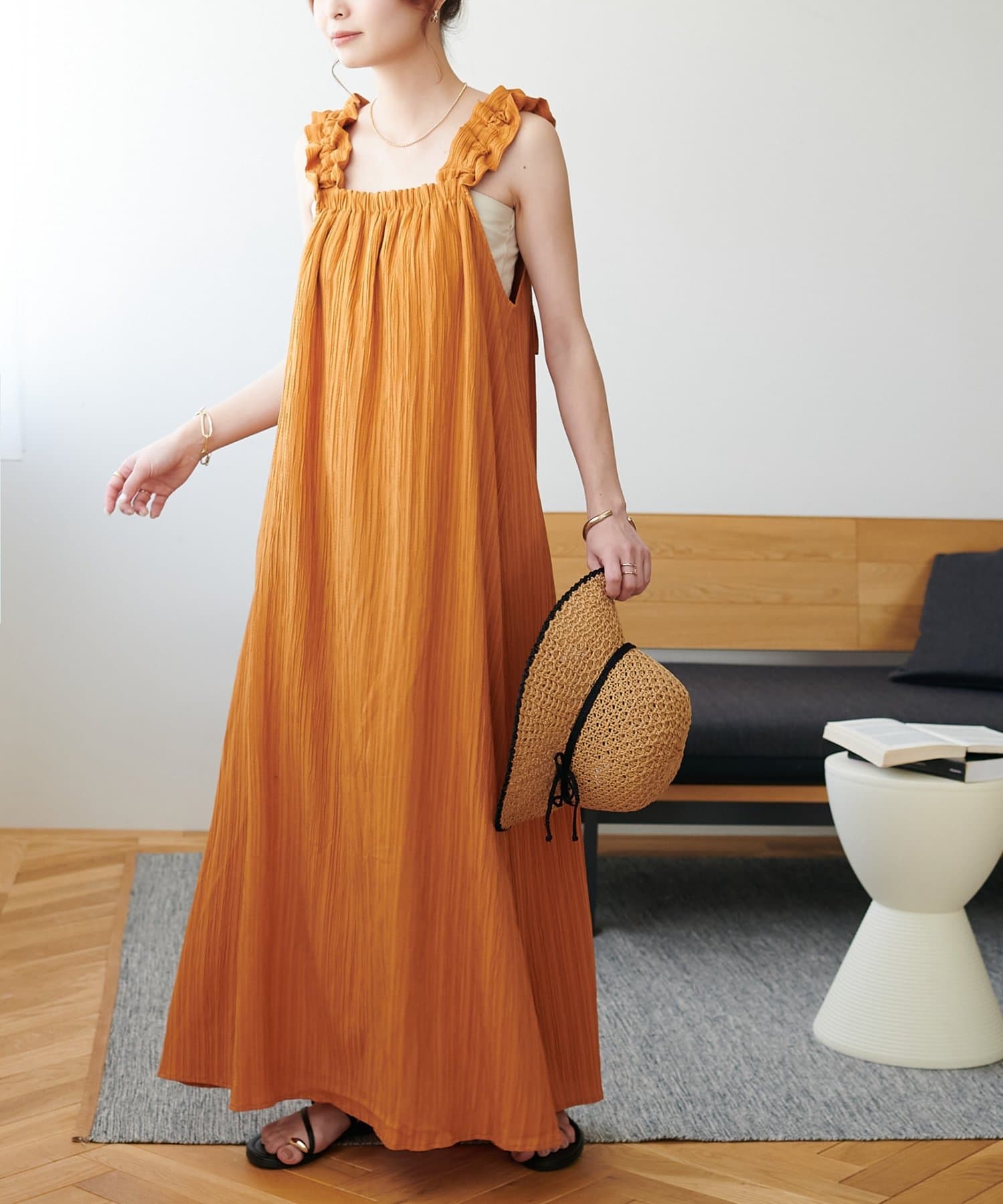 一枚着でももちろんかわいいですが、デニムパンツでカジュアルにも合わせられるので、様々なスタイリングが楽しめます◎