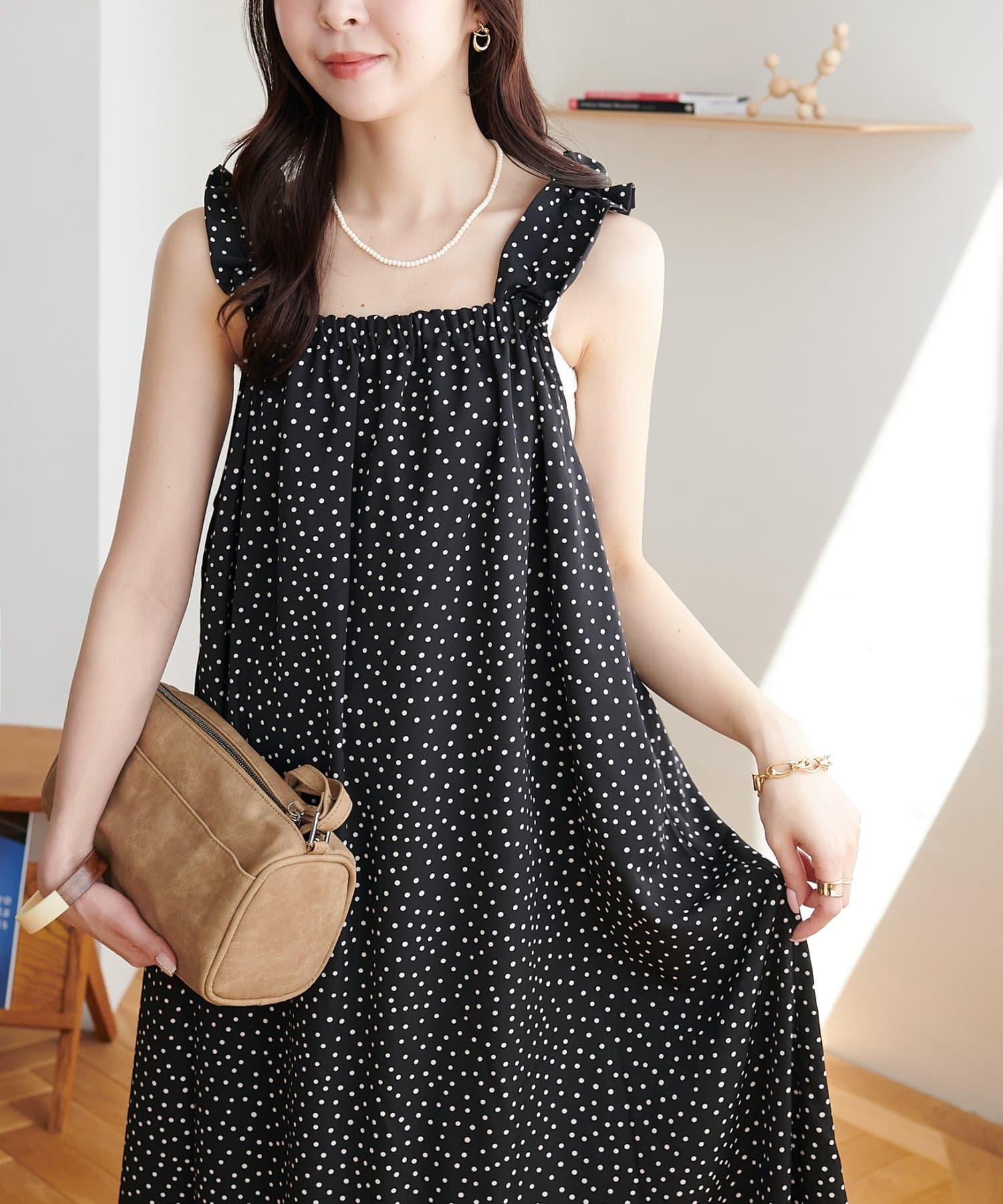 ・肩紐のリボンやたっぷりと施されたギャザーがポイントに♪