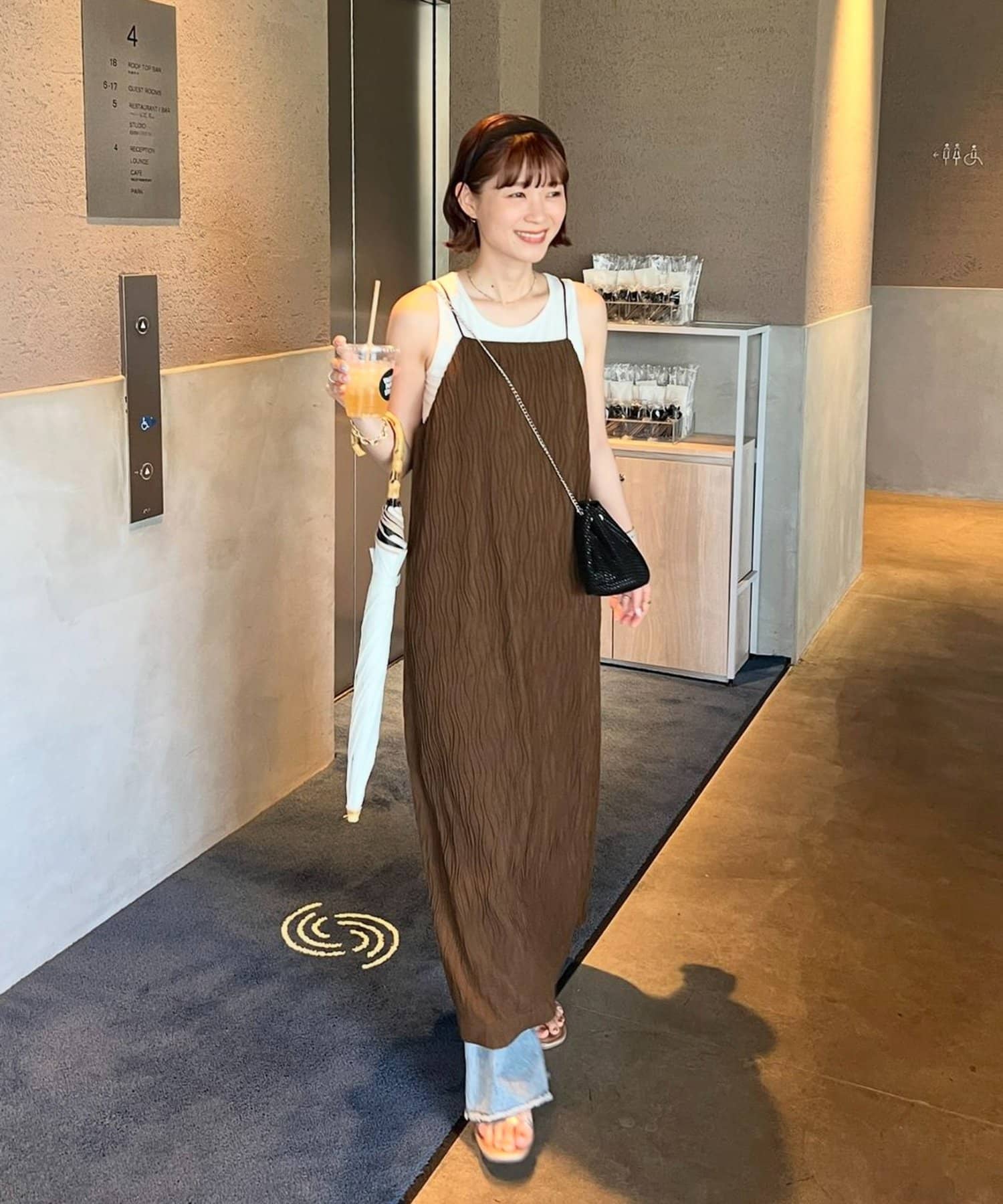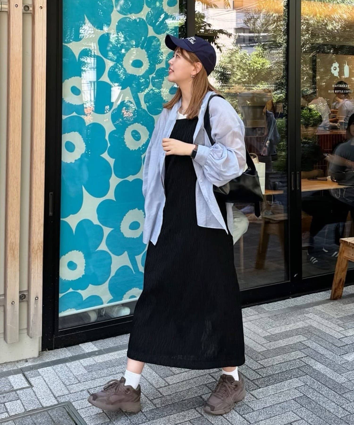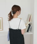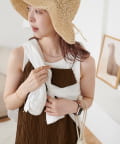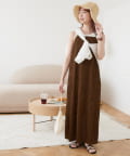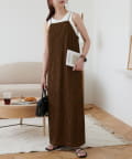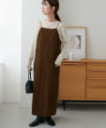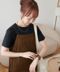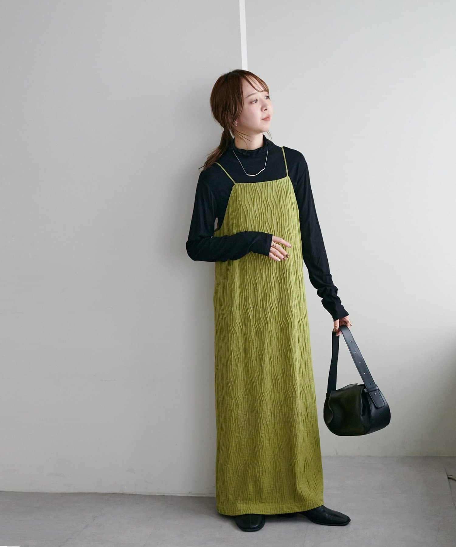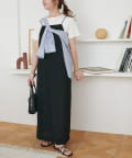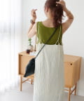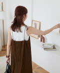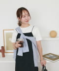 152㎝スタッフ:肩紐で丈感を調節できるので、身長に合わせて着用できるのがうれしいポイントです!
