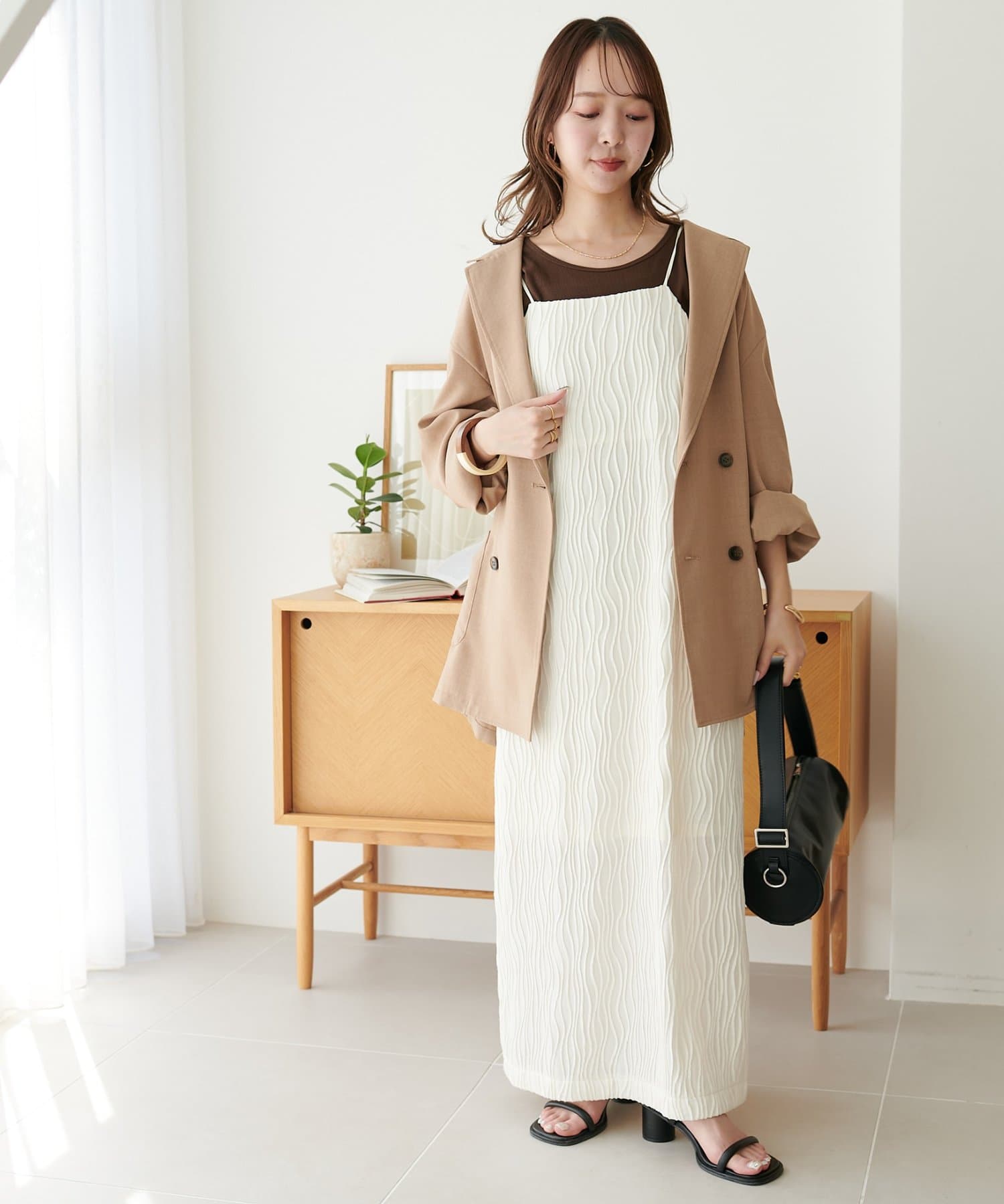 ・落ち感のあるシルエットは、Iラインを惹きたたせスタイルアップも叶えてくれます〇
