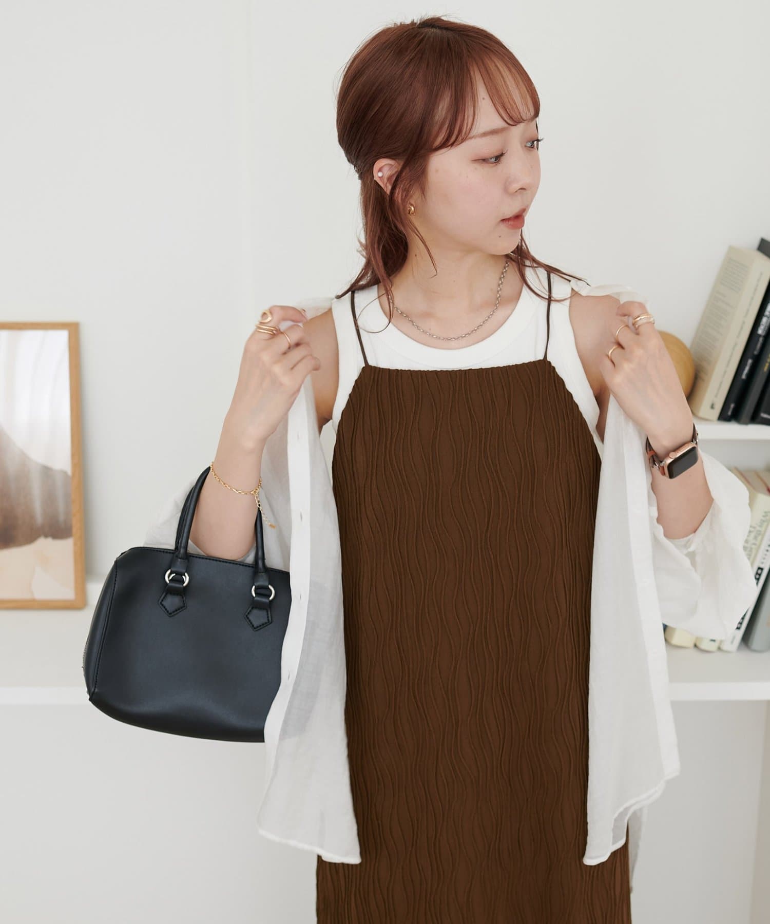 ・立体的なジャガード柄が一枚で華やかに仕上げてくれるキャミワンピース。