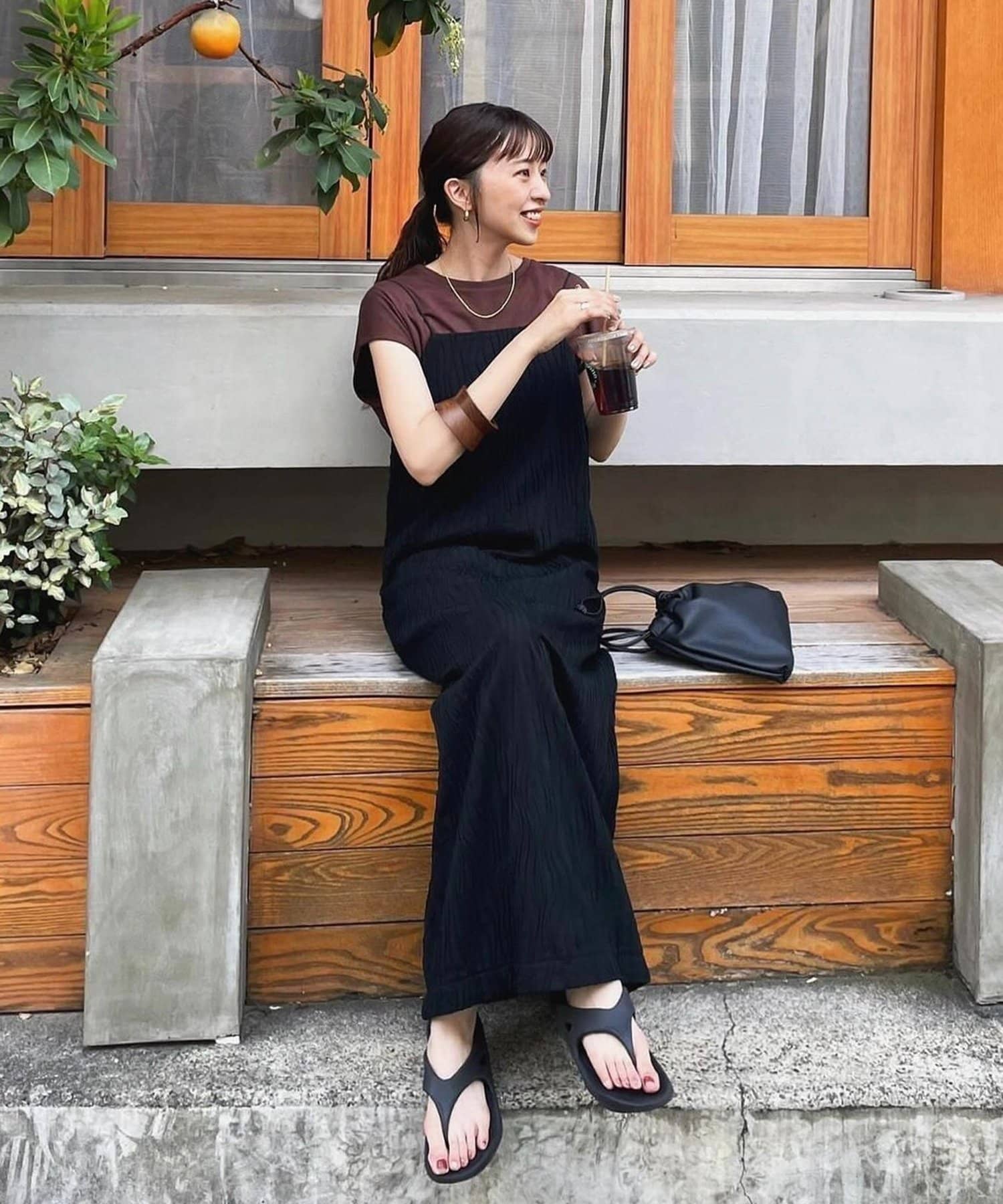 靴もぺたんこのサンダルとも合わせられるので、コーデの幅が広がります〇