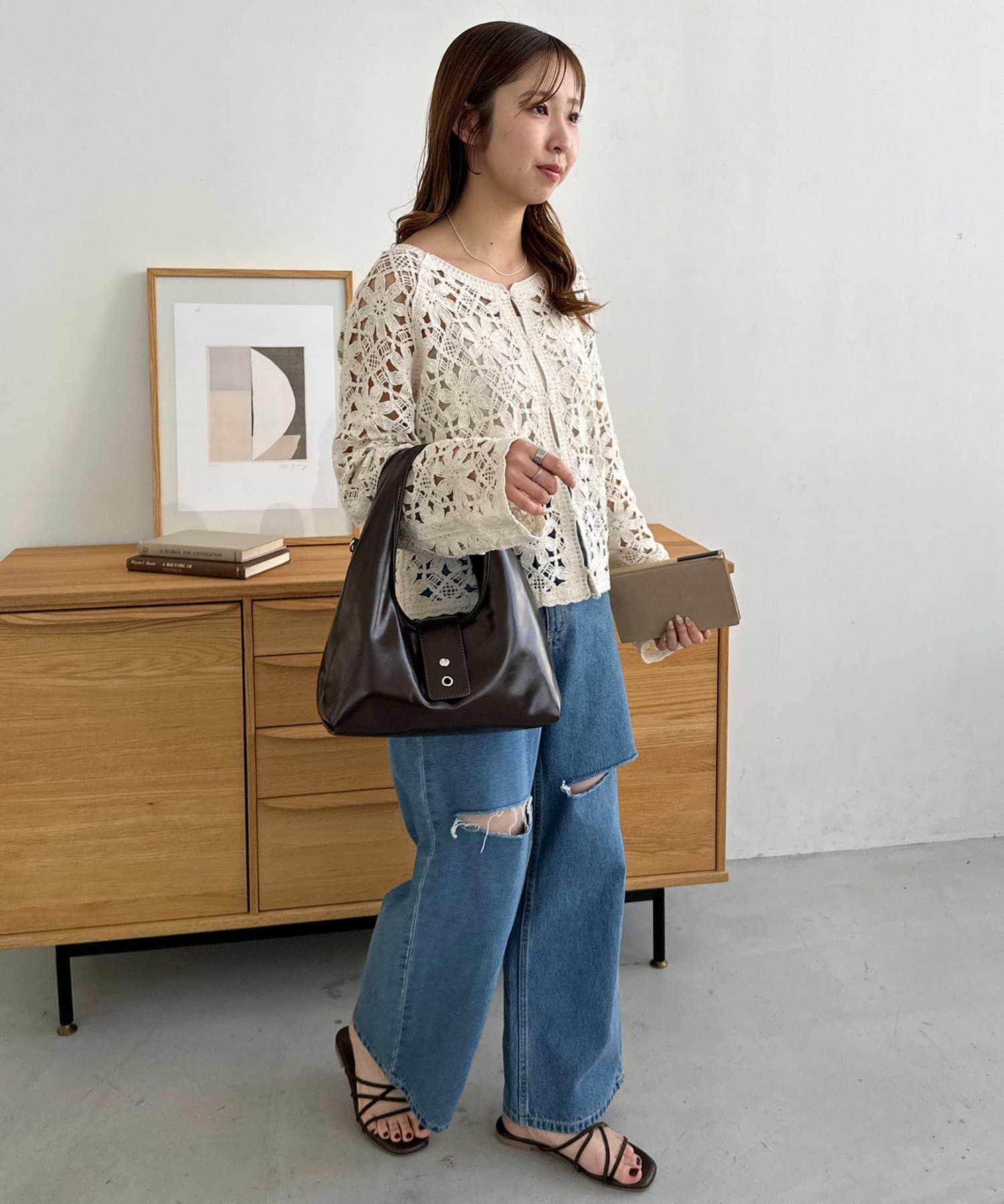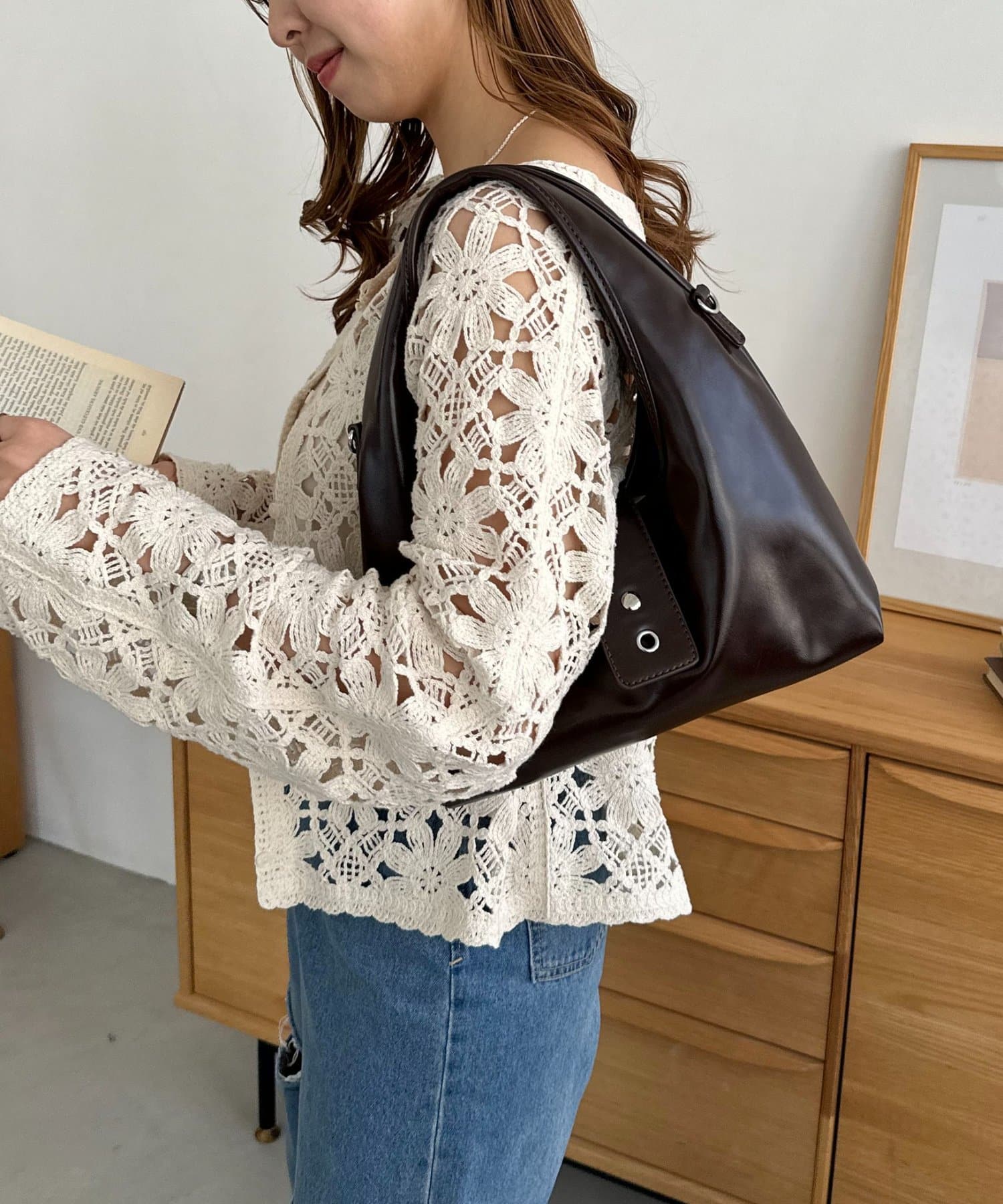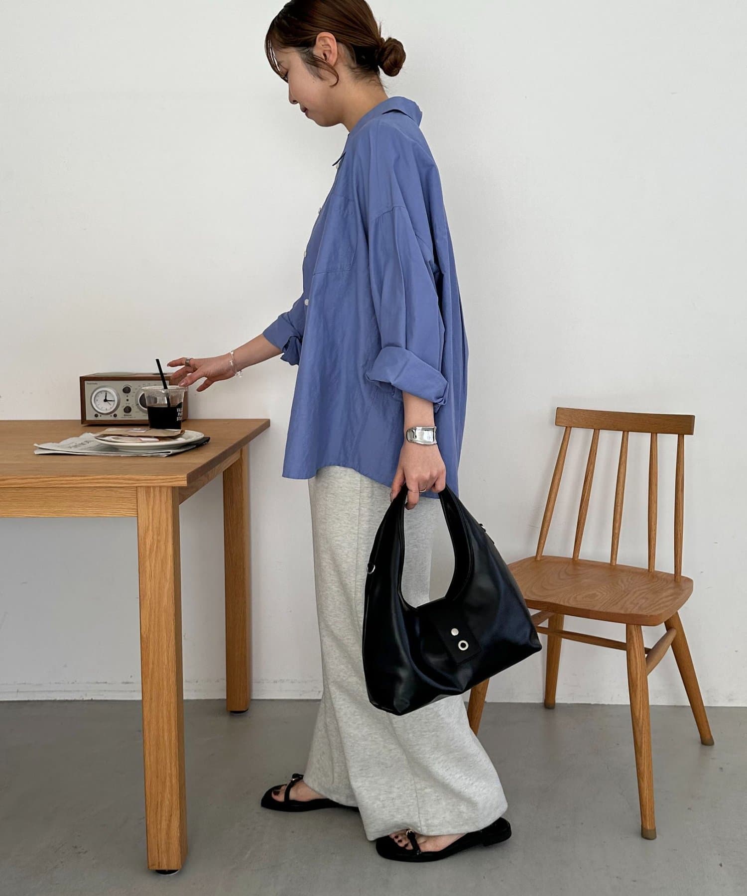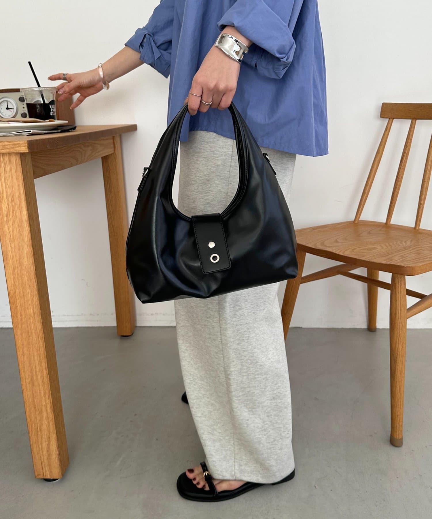 カラーは、ブラックとブラウン2色展開。どちらも季節を問わず使えるベーシックカラーで、カジュアルからきれいめまで、あらゆるテイストに自然に馴染みます◎