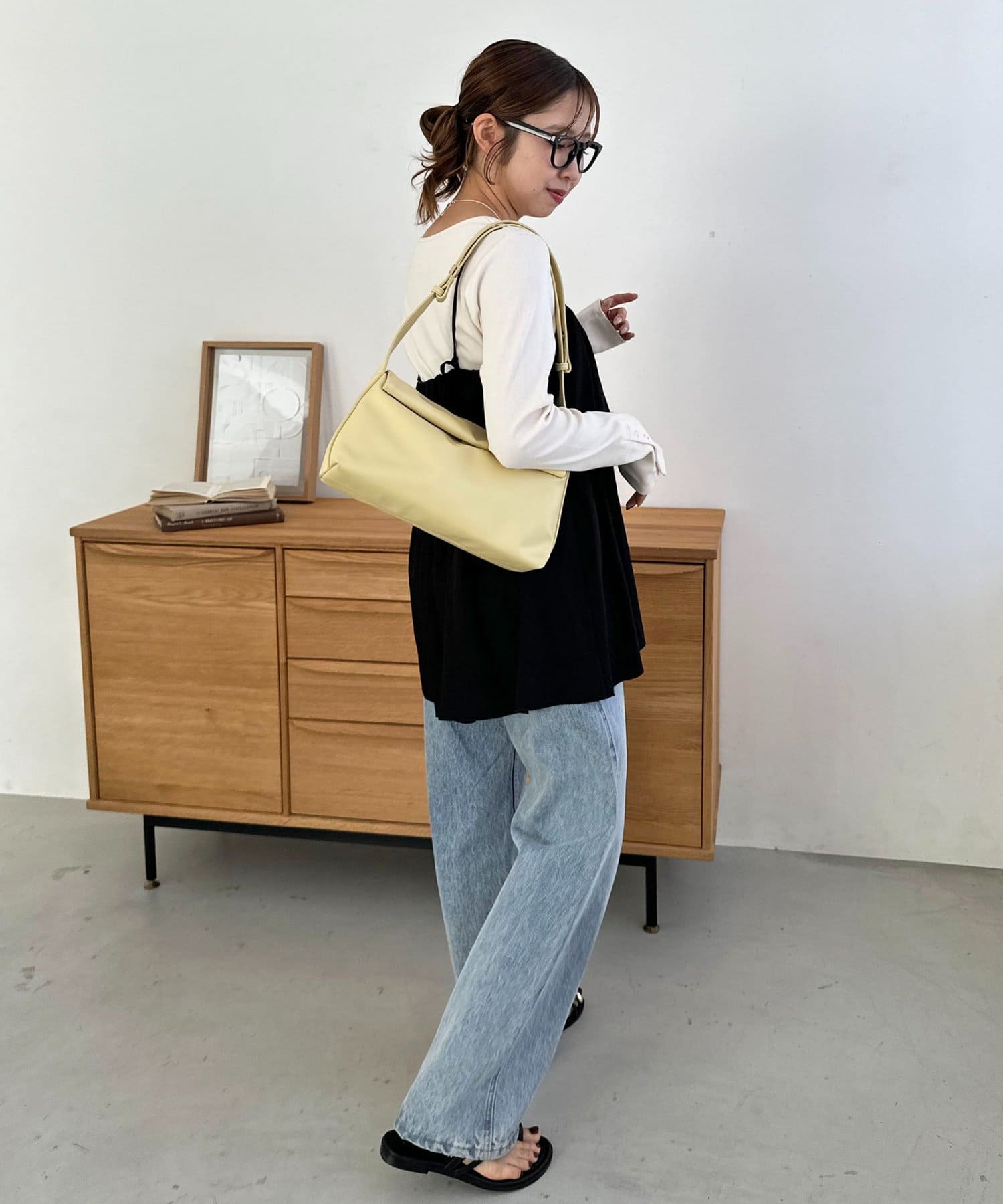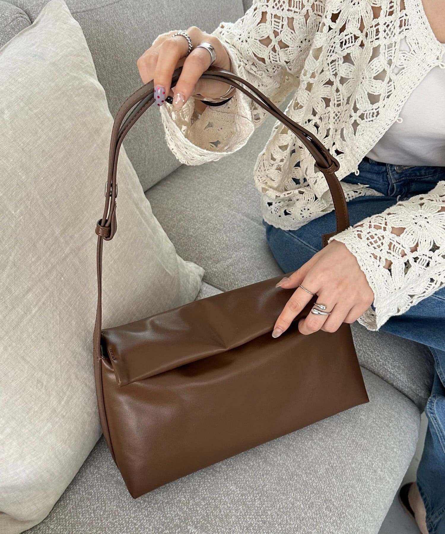 くったりとしたやわらかさが、毎日の装いにそっと馴染むショルダーバッグ。