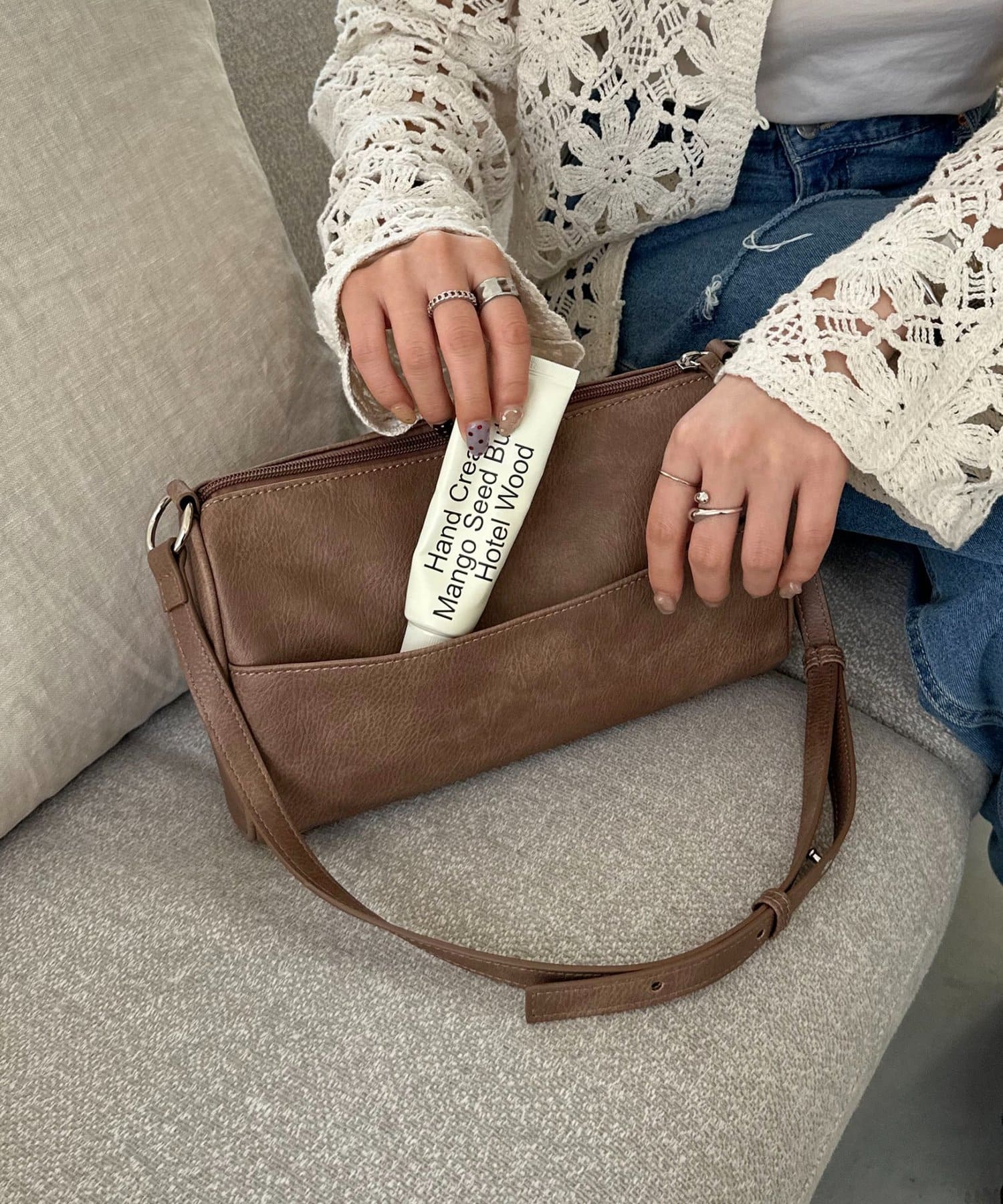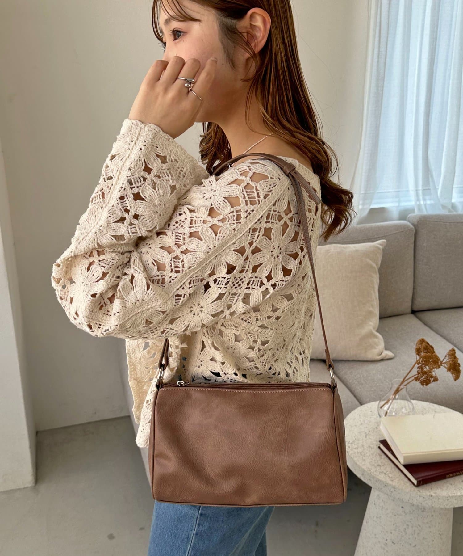 ヴィンテージ調パイピングショルダーバッグ