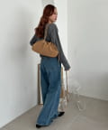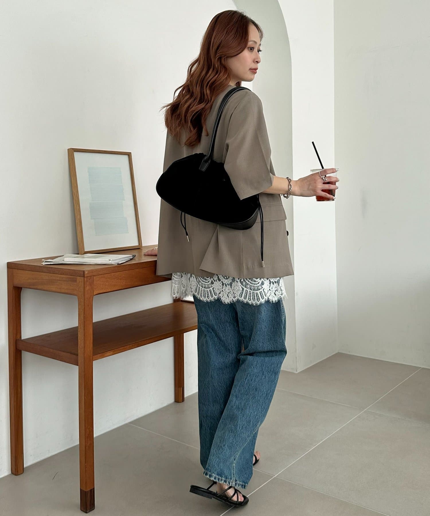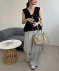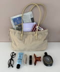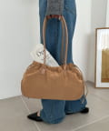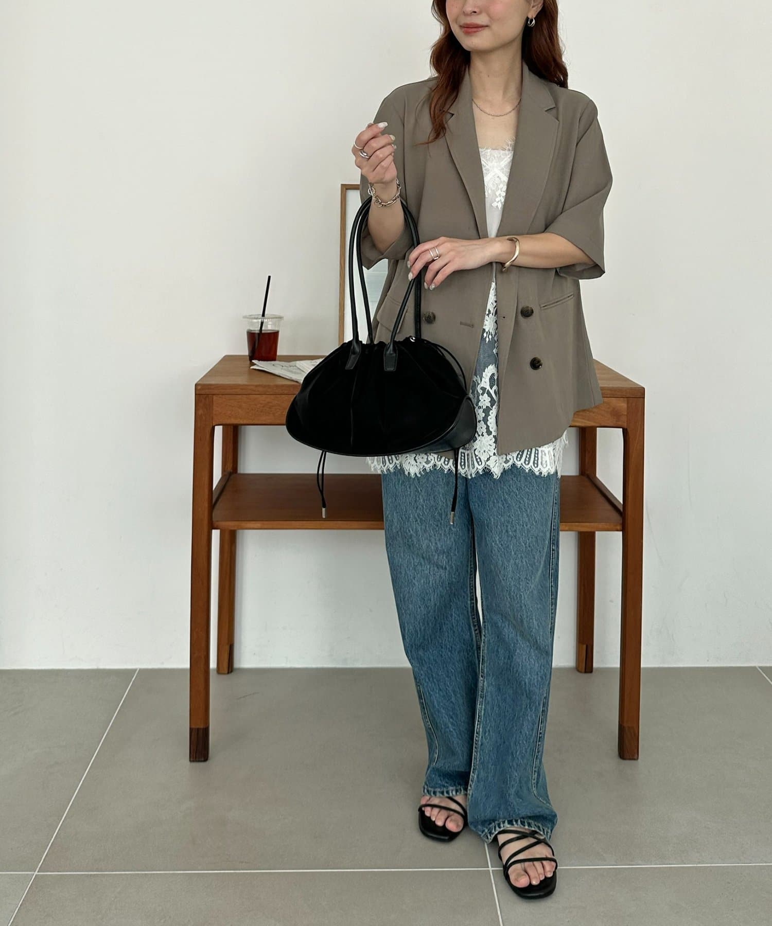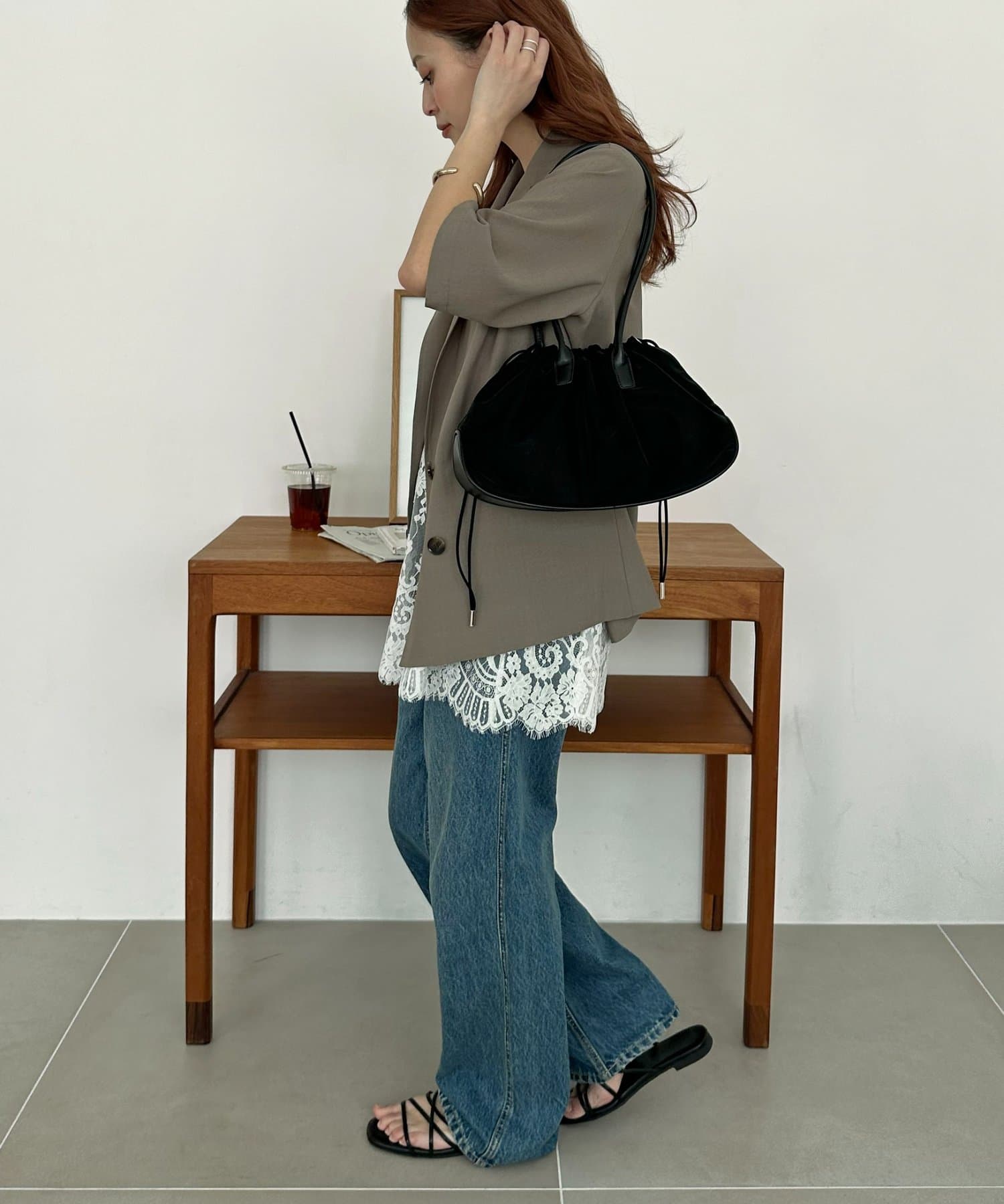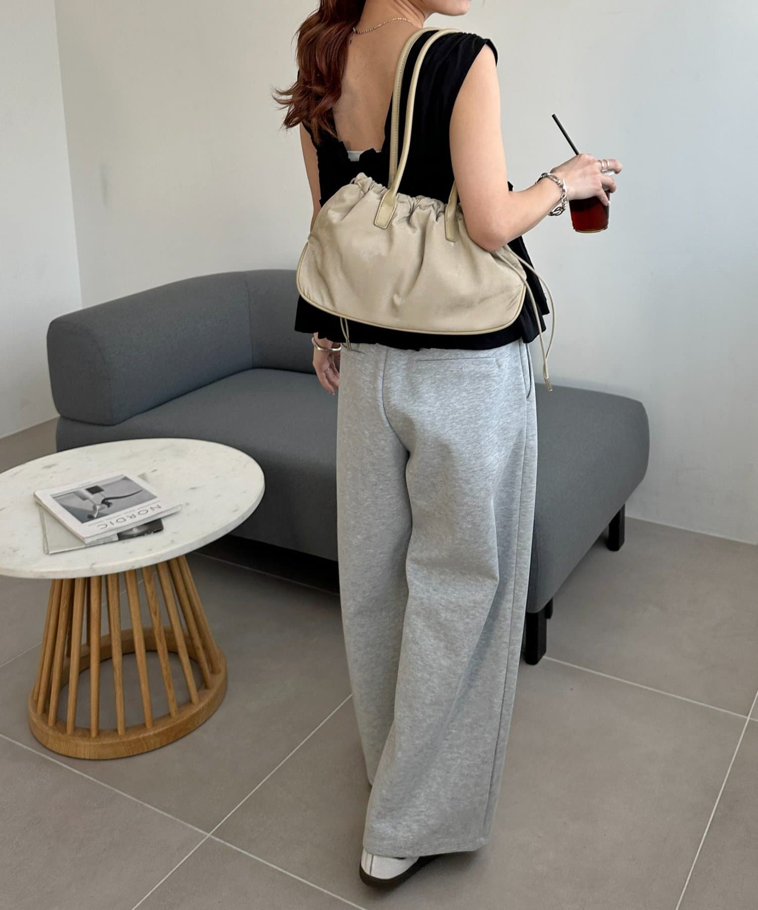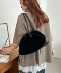 開口部にぐるりと通したドロストを絞ることで、自然に生まれる立体的なフォルムが特徴です。程よくボリュームのあるボストン型ながら、ヌバック調のマットな質感が落ち着いた印象を与え、大人っぽく持てるバランス感に仕上げています。12cmのしっかりとしたマチで長財布や手帳、ペットボトルもすっきり収まり、デイリー使いしやすいバッグです♪