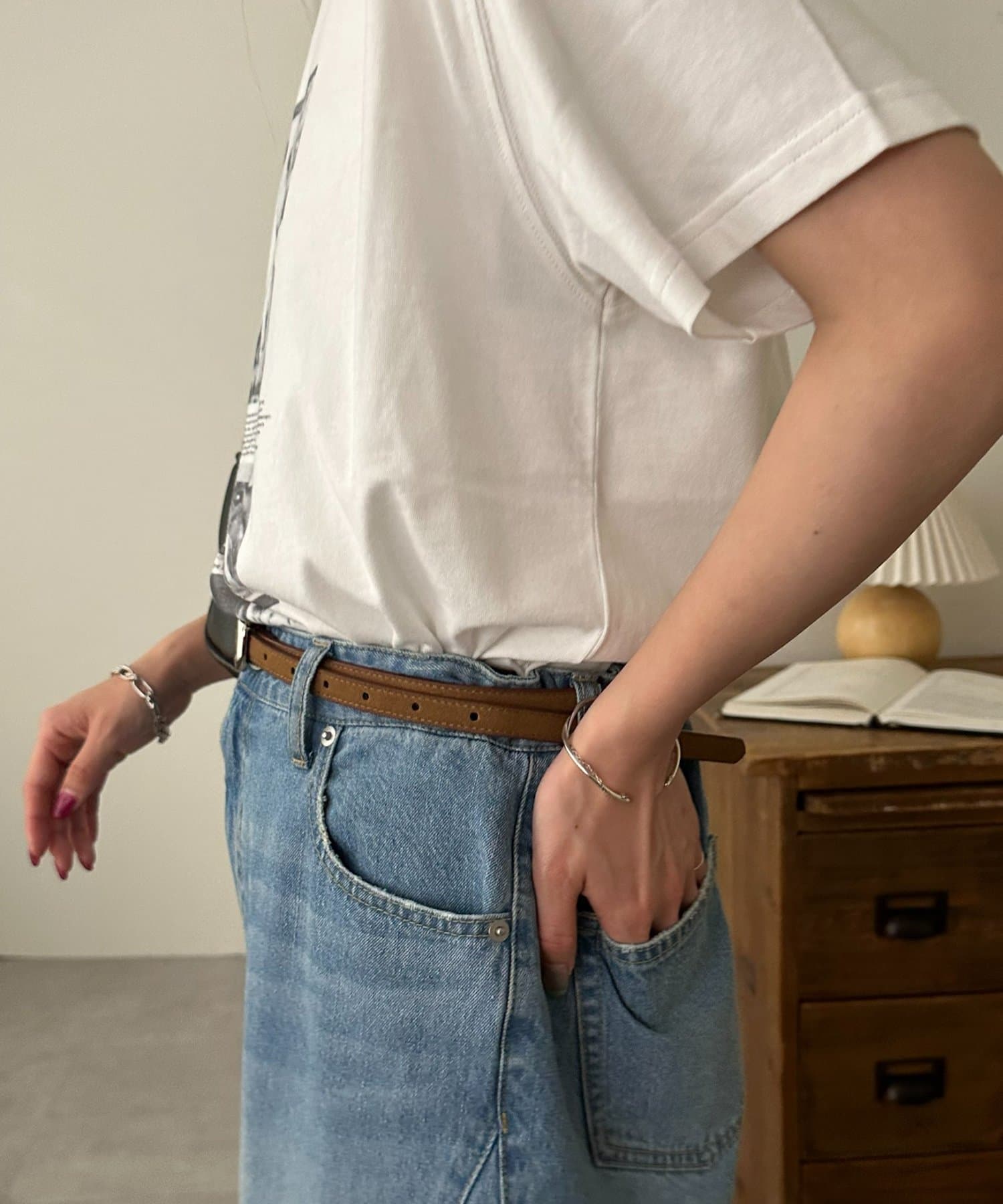 ぷっくりバックルスエード調細ベルト
