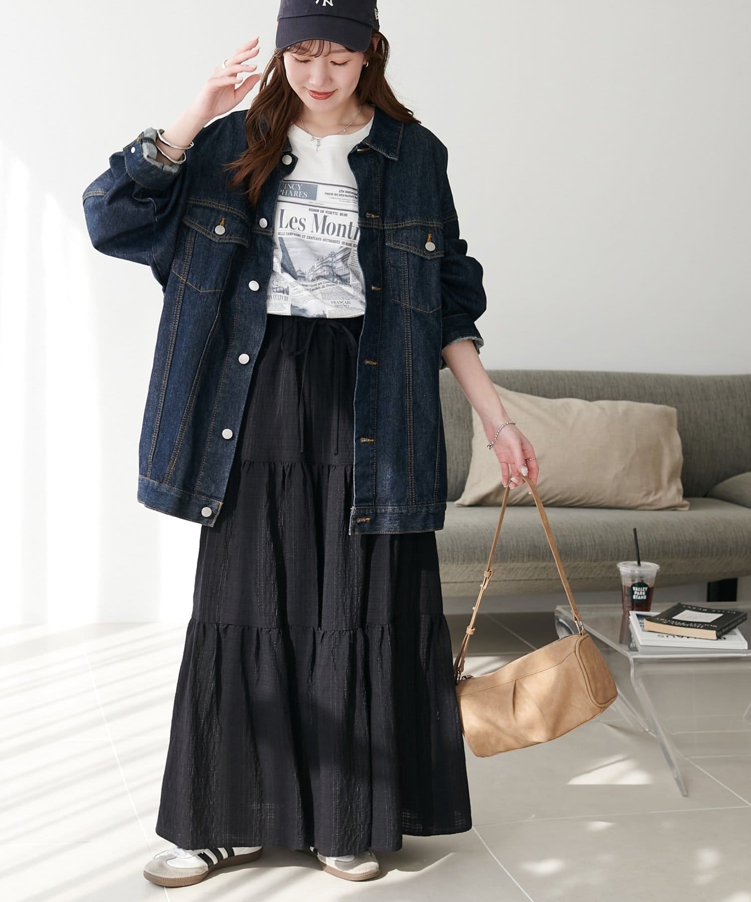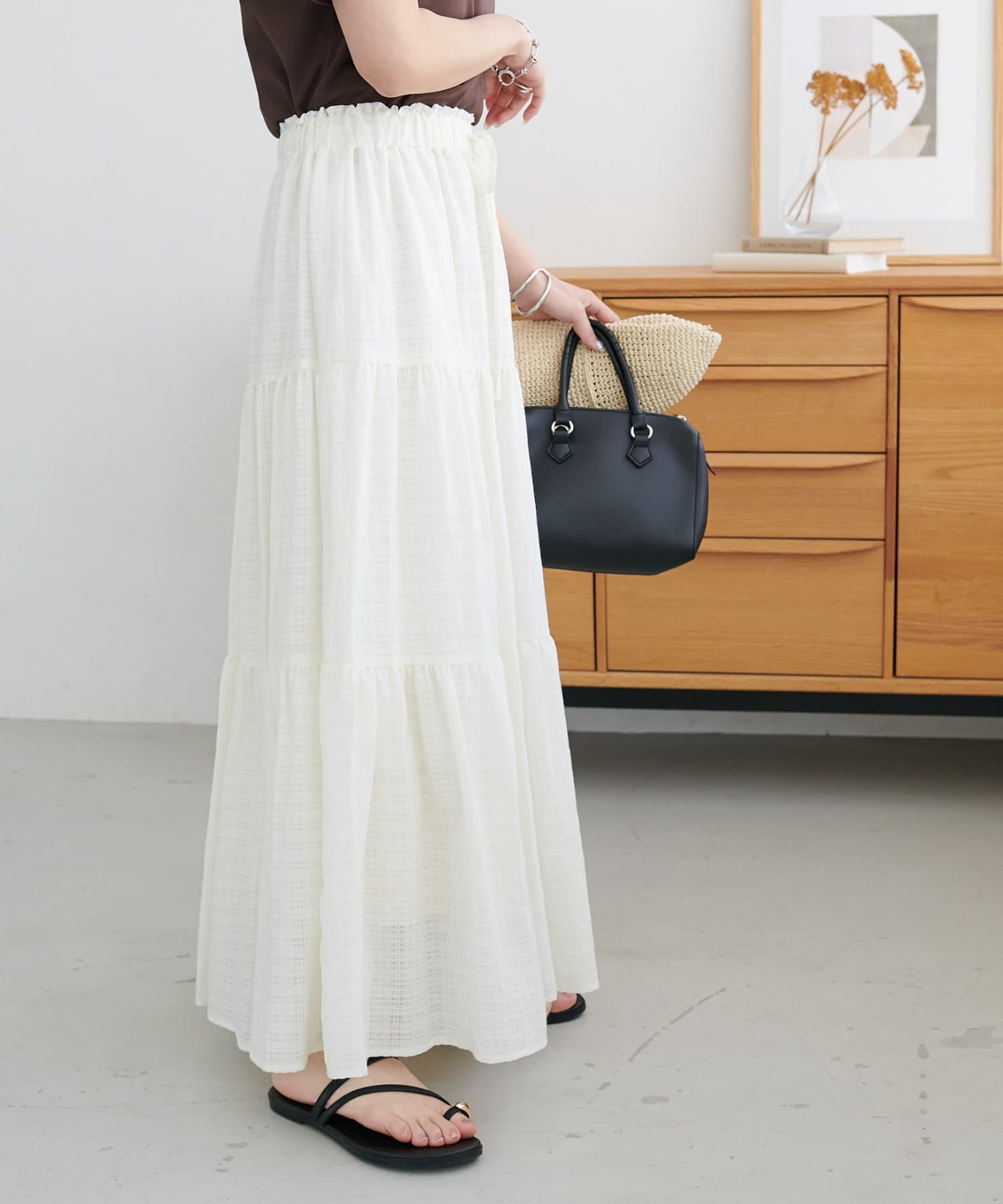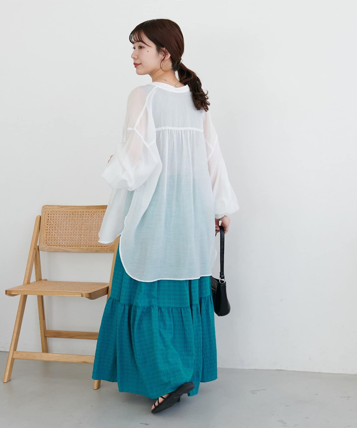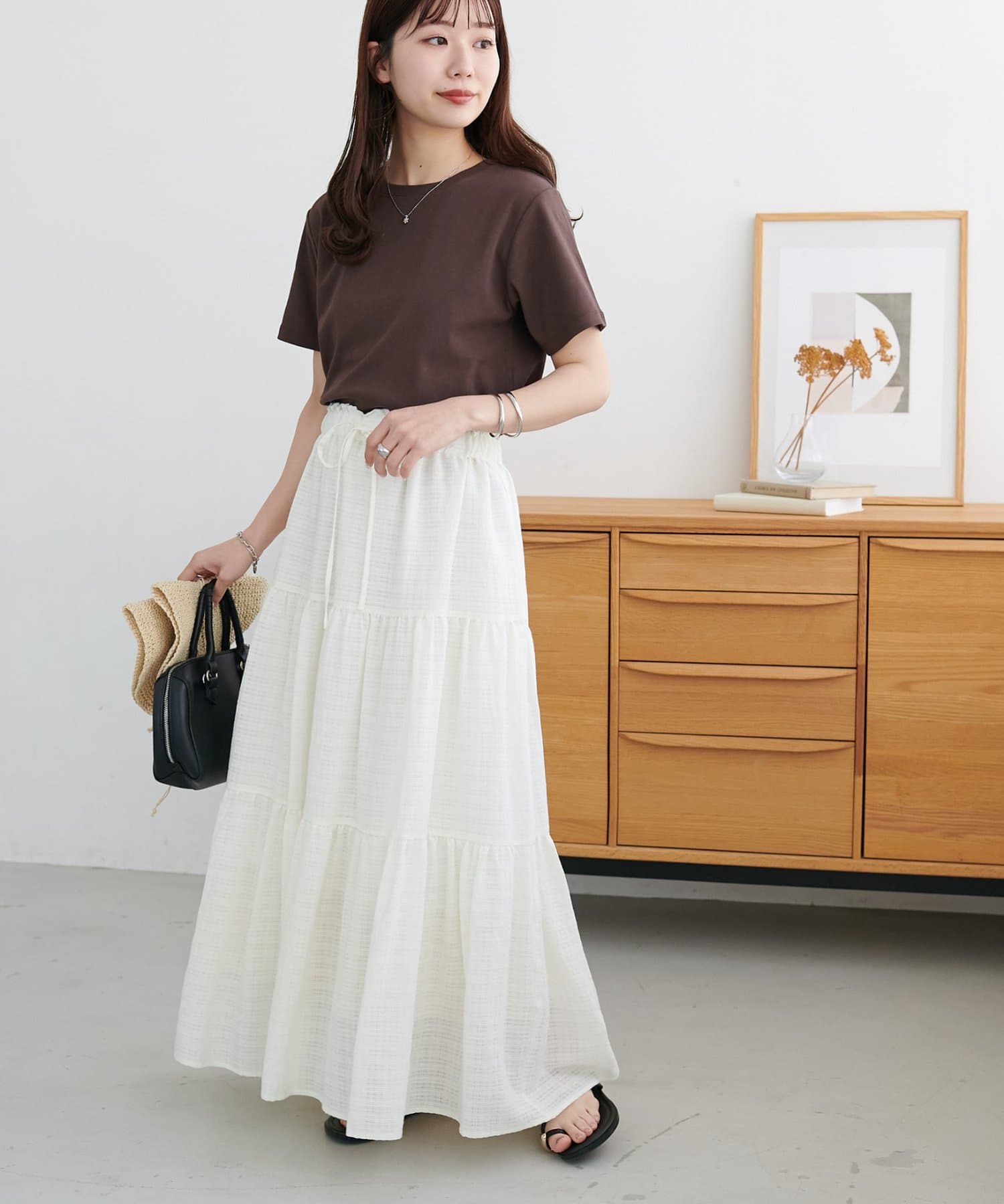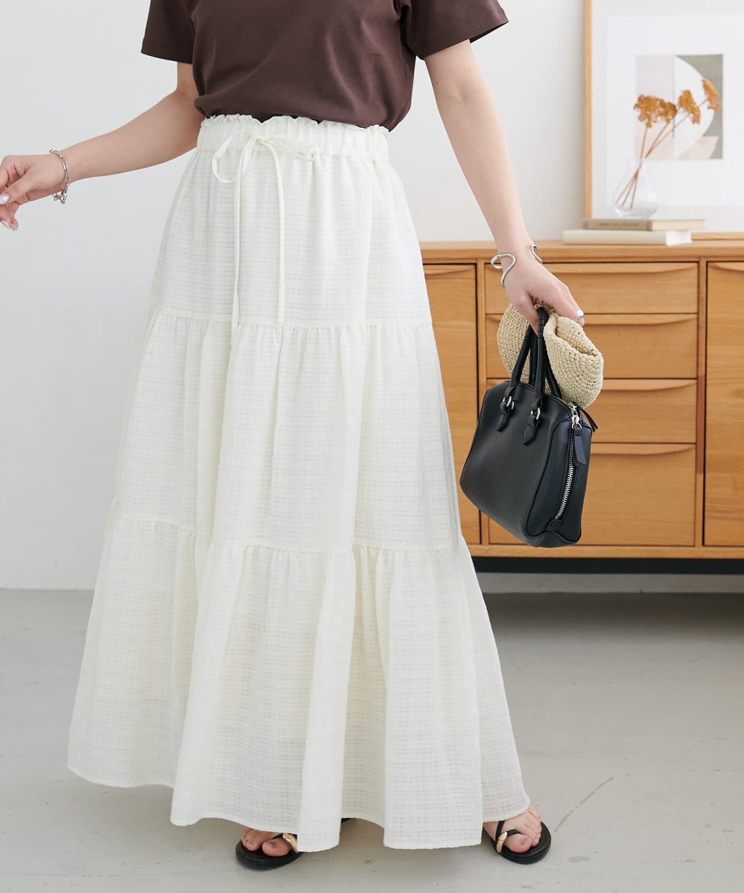 軽やかな揺れ感が魅力、大人のシアーチェックティアードスカート