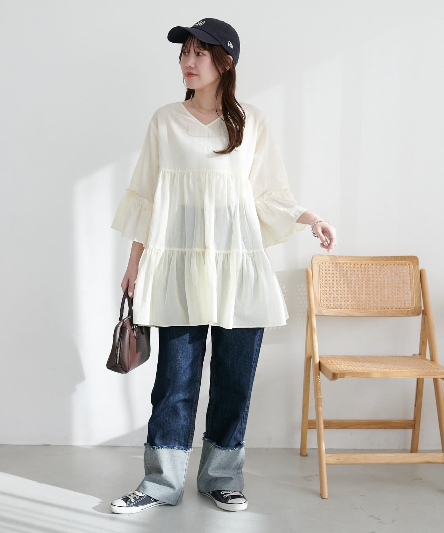 DISCOAT(ディスコート) 【SS先行予約/WEB限定】ティアードオーバースリーブブラウス