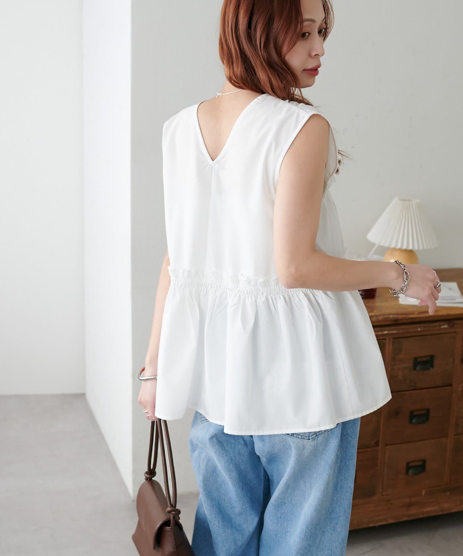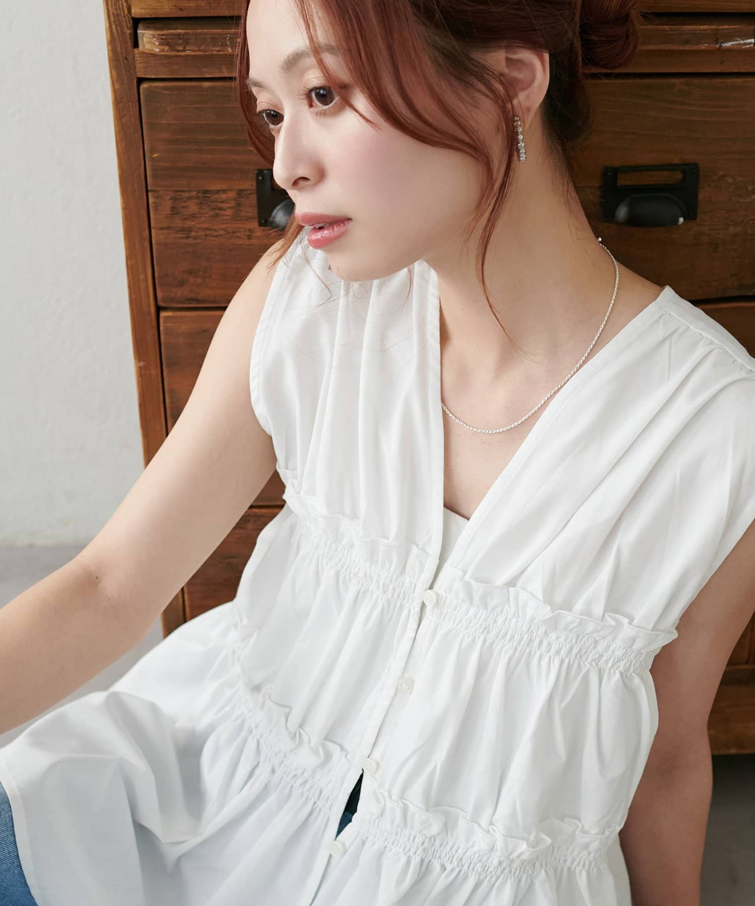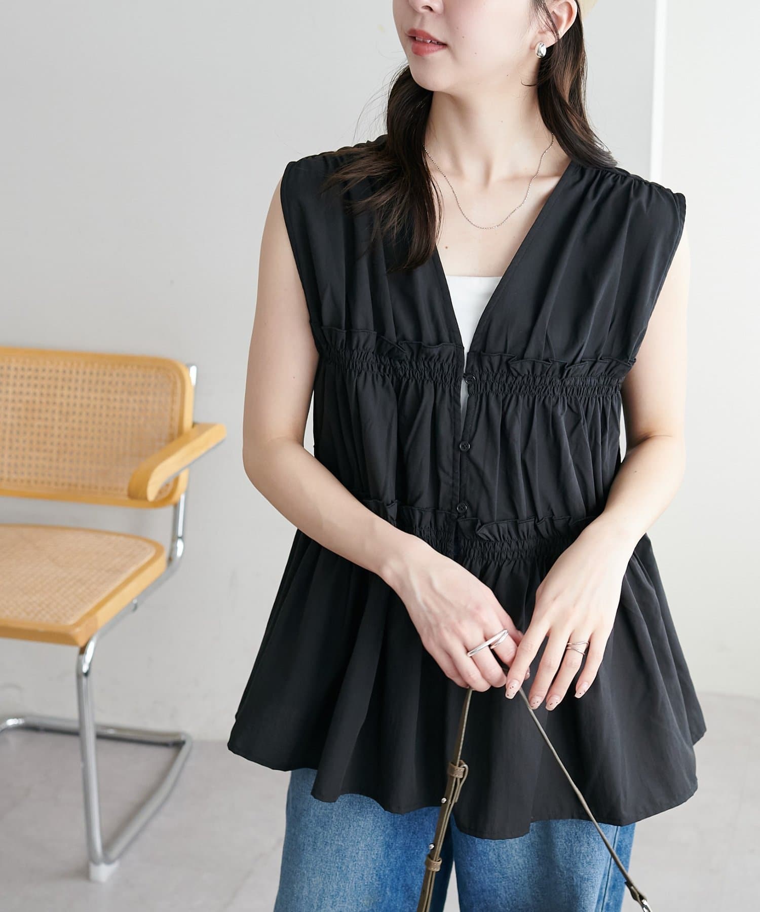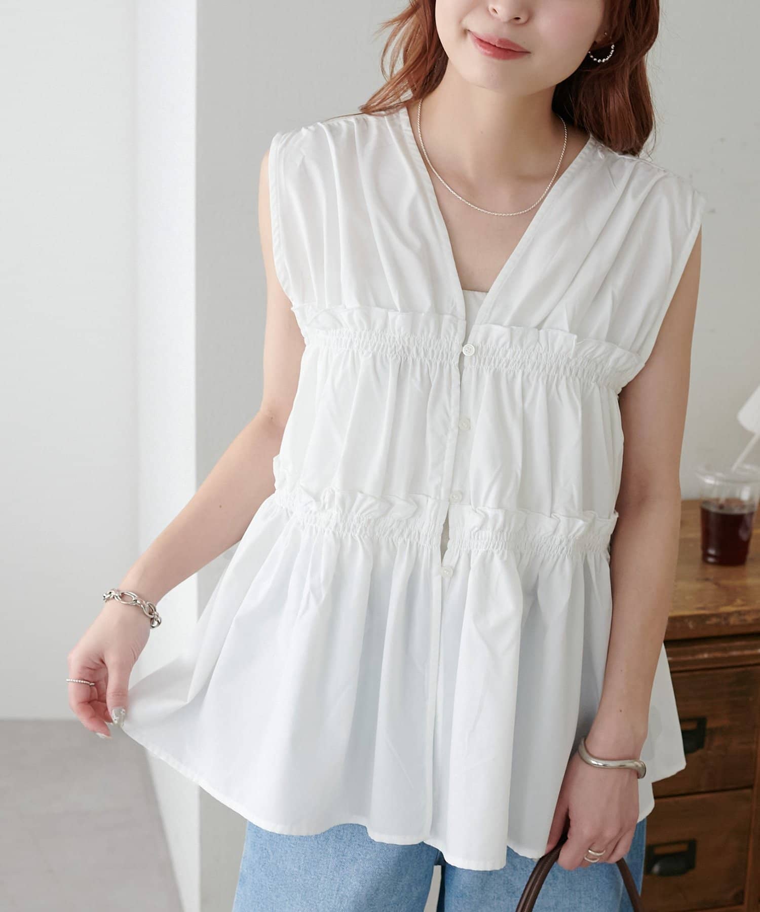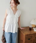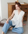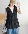 【WEB限定】シャーリングノースリブラウス