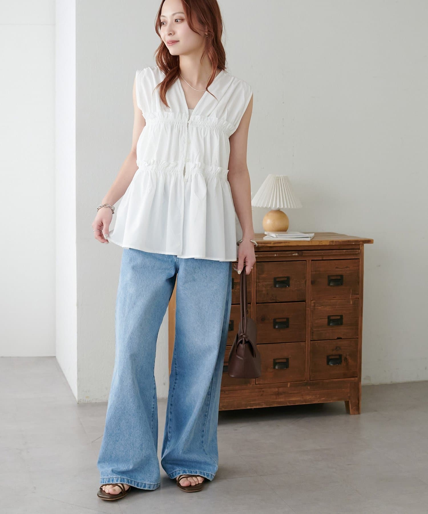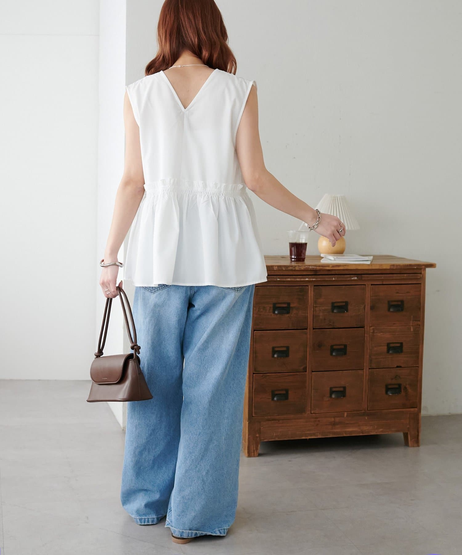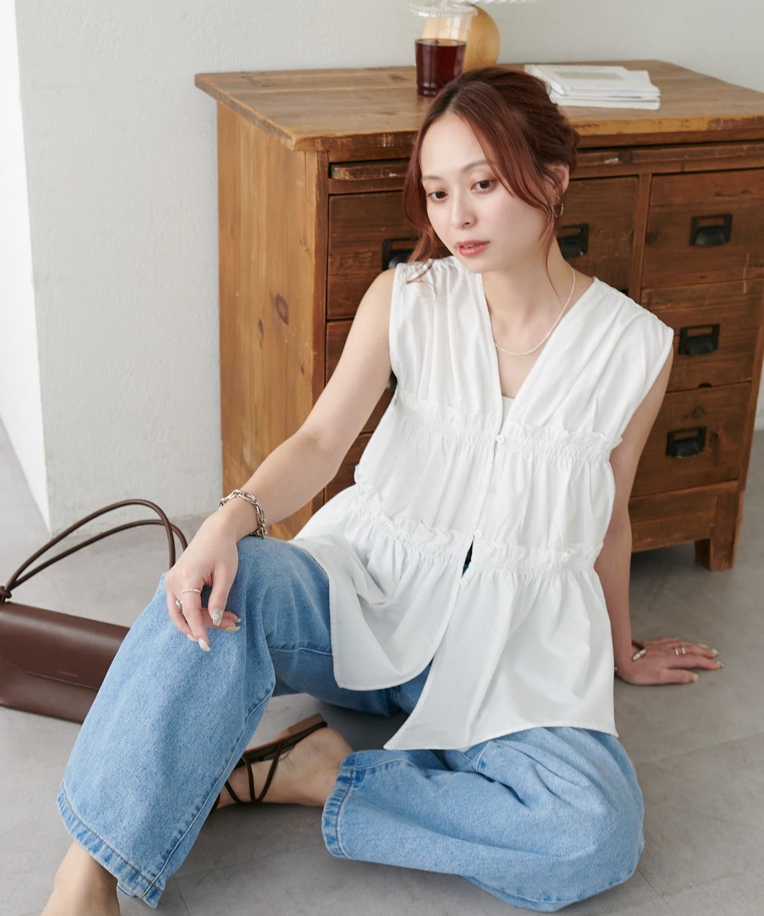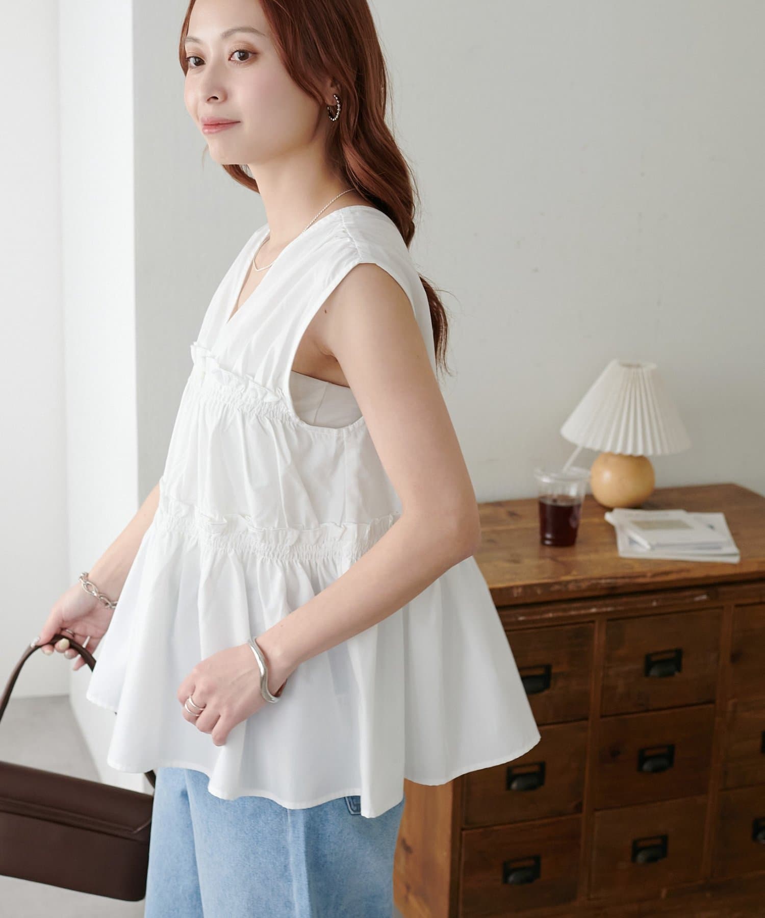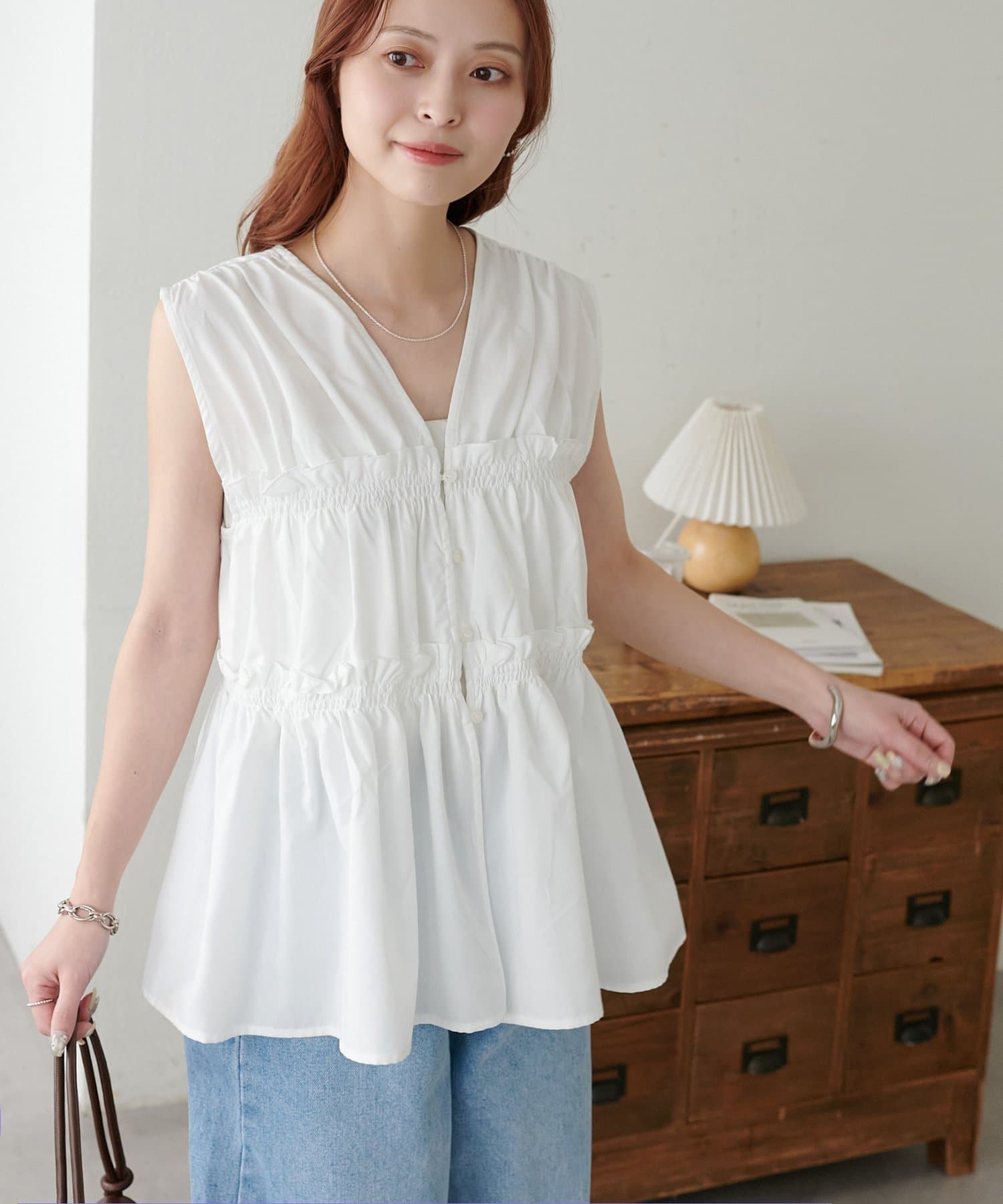 ・ワンピースの上にジレとしてレイヤードすると、いつもの着こなしがぐっと新鮮な印象に仕上がります。