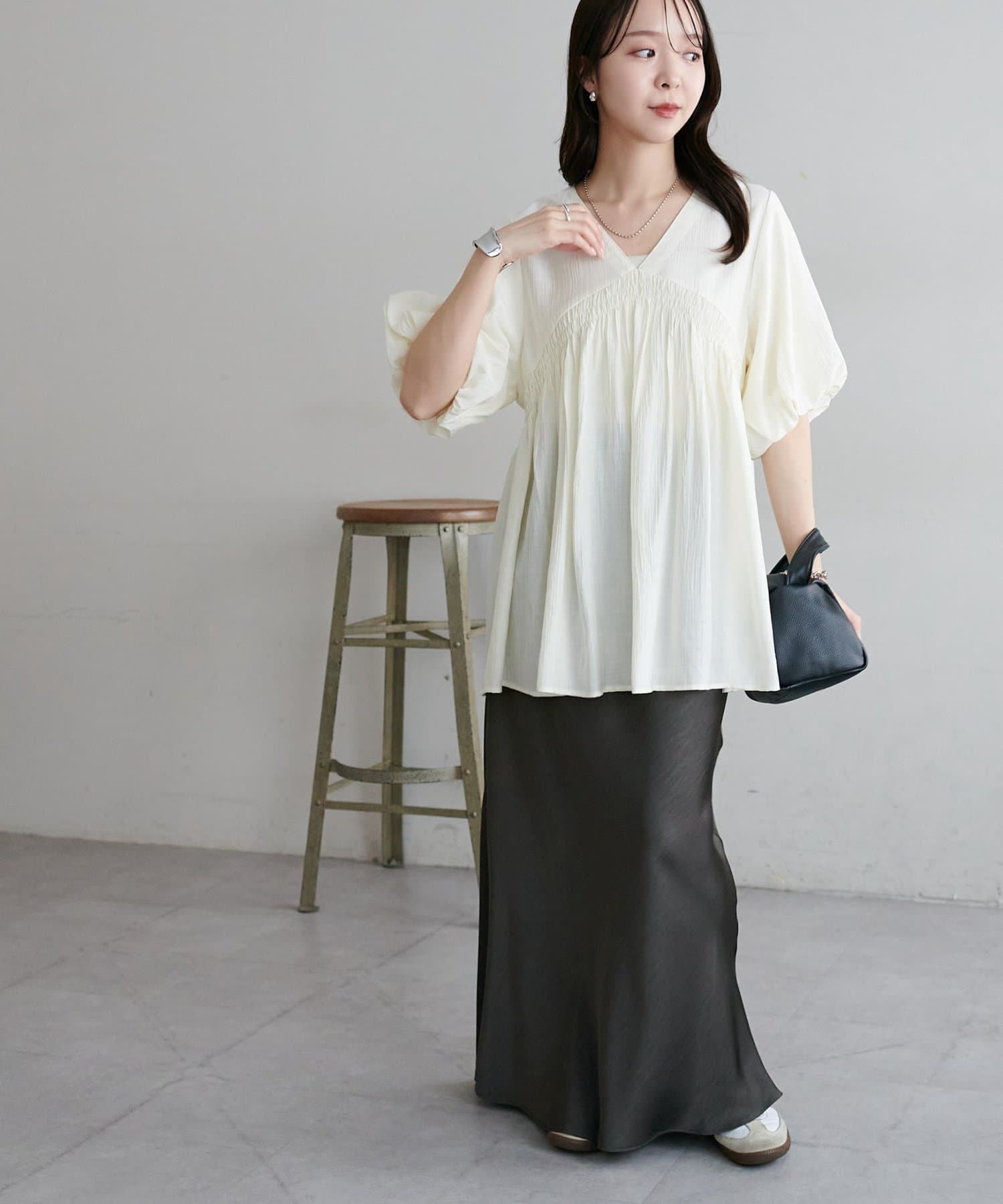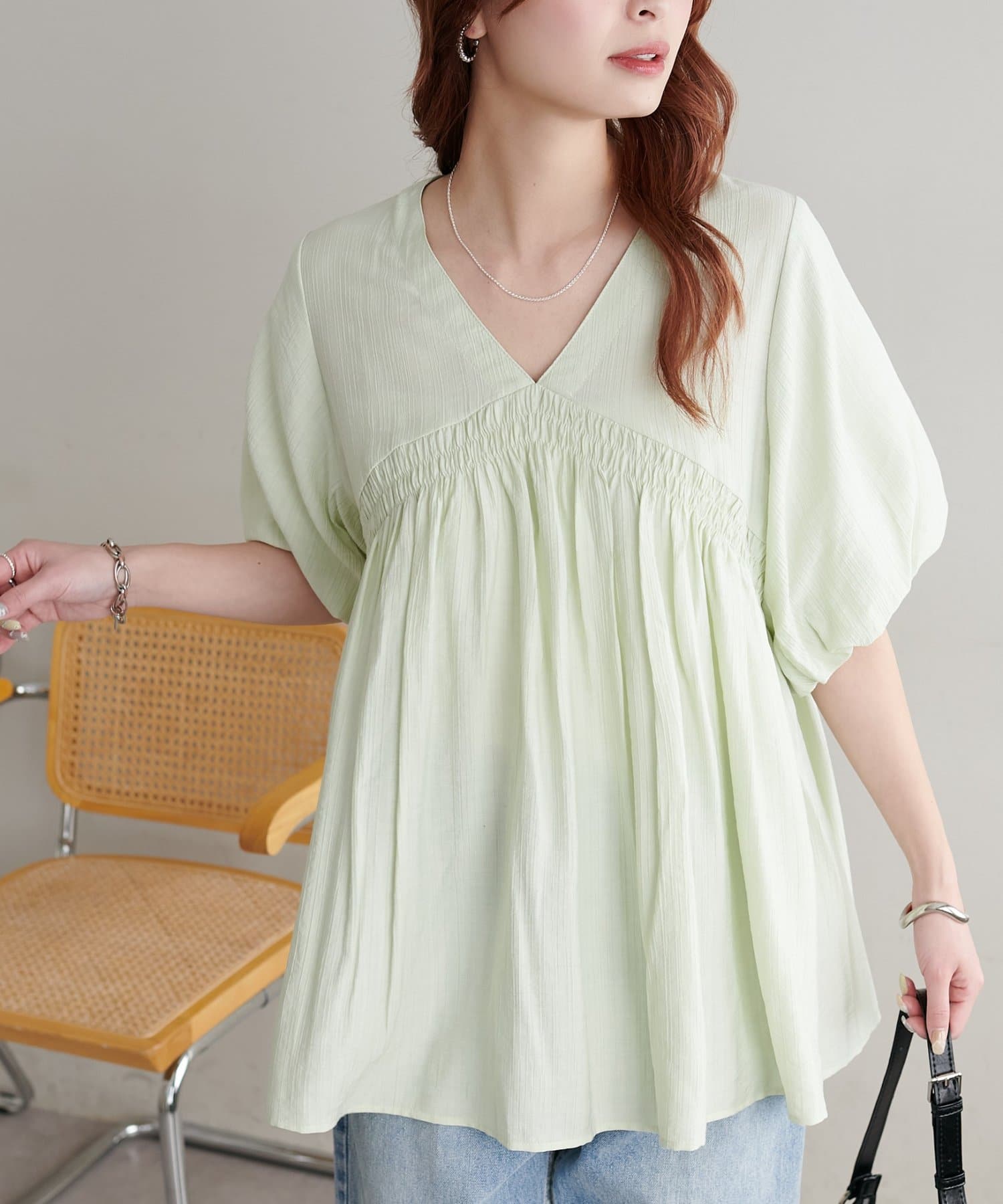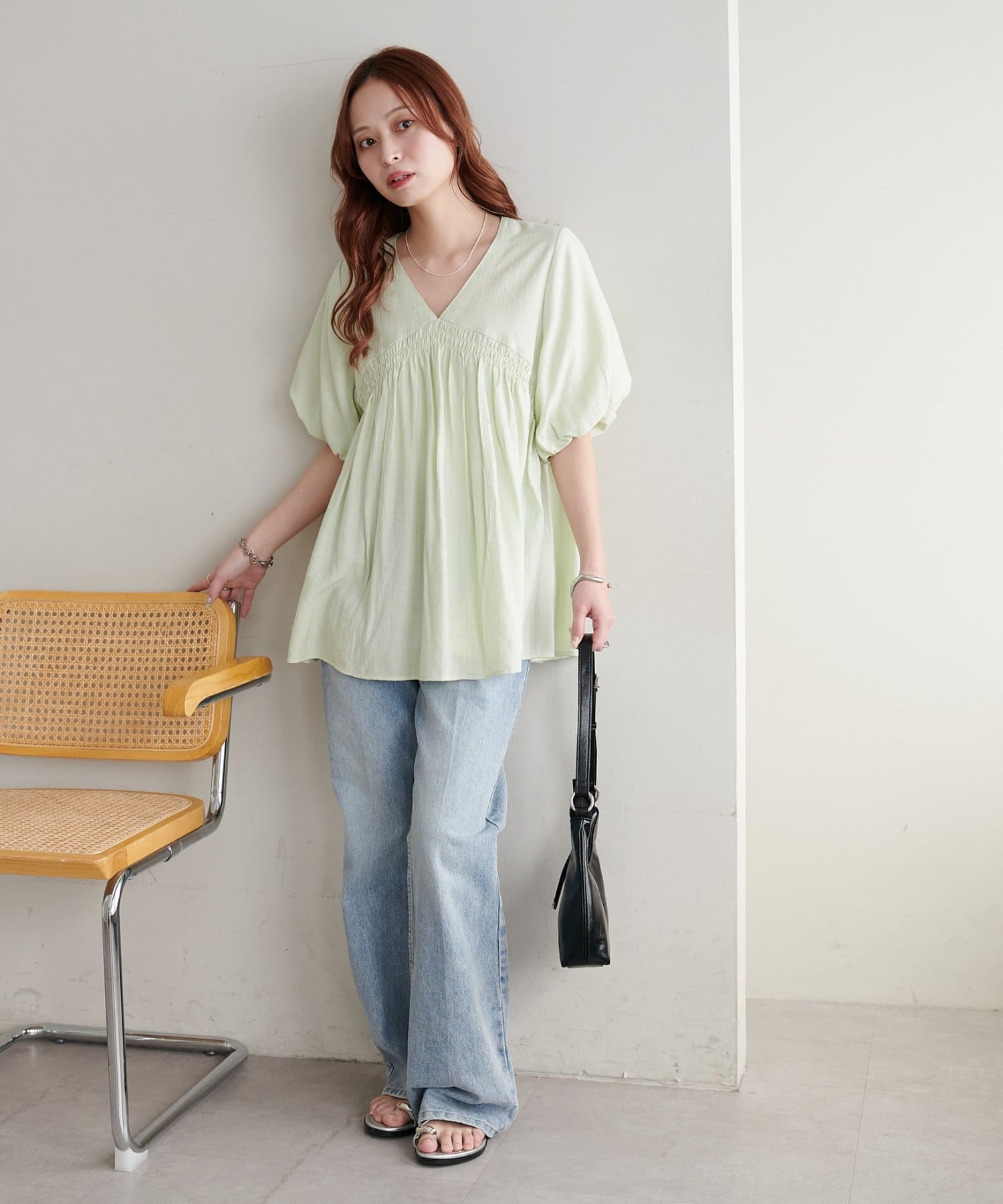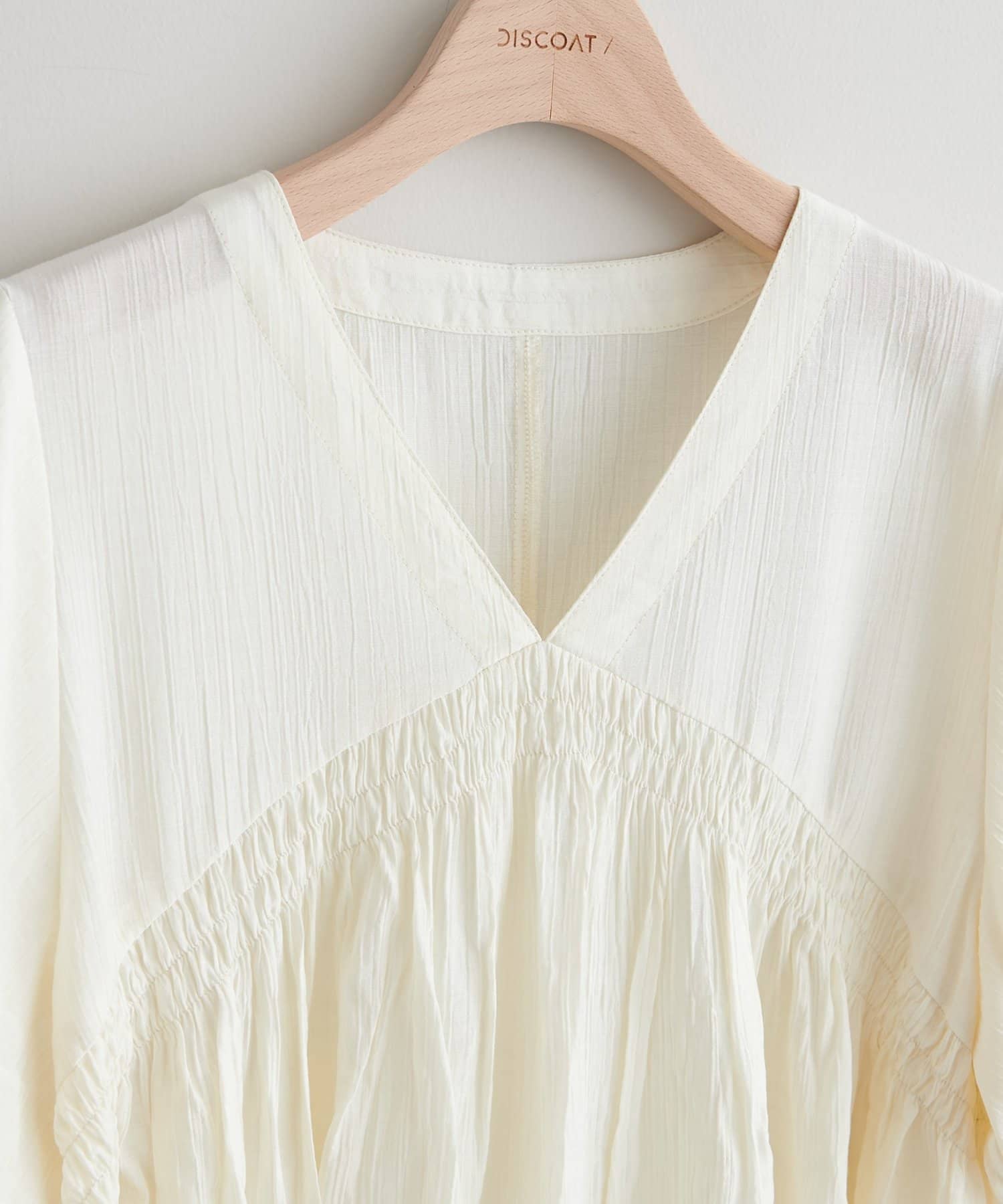DISCOAT(ディスコート) 【WEB限定】袖バルーンシャーリングブラウス