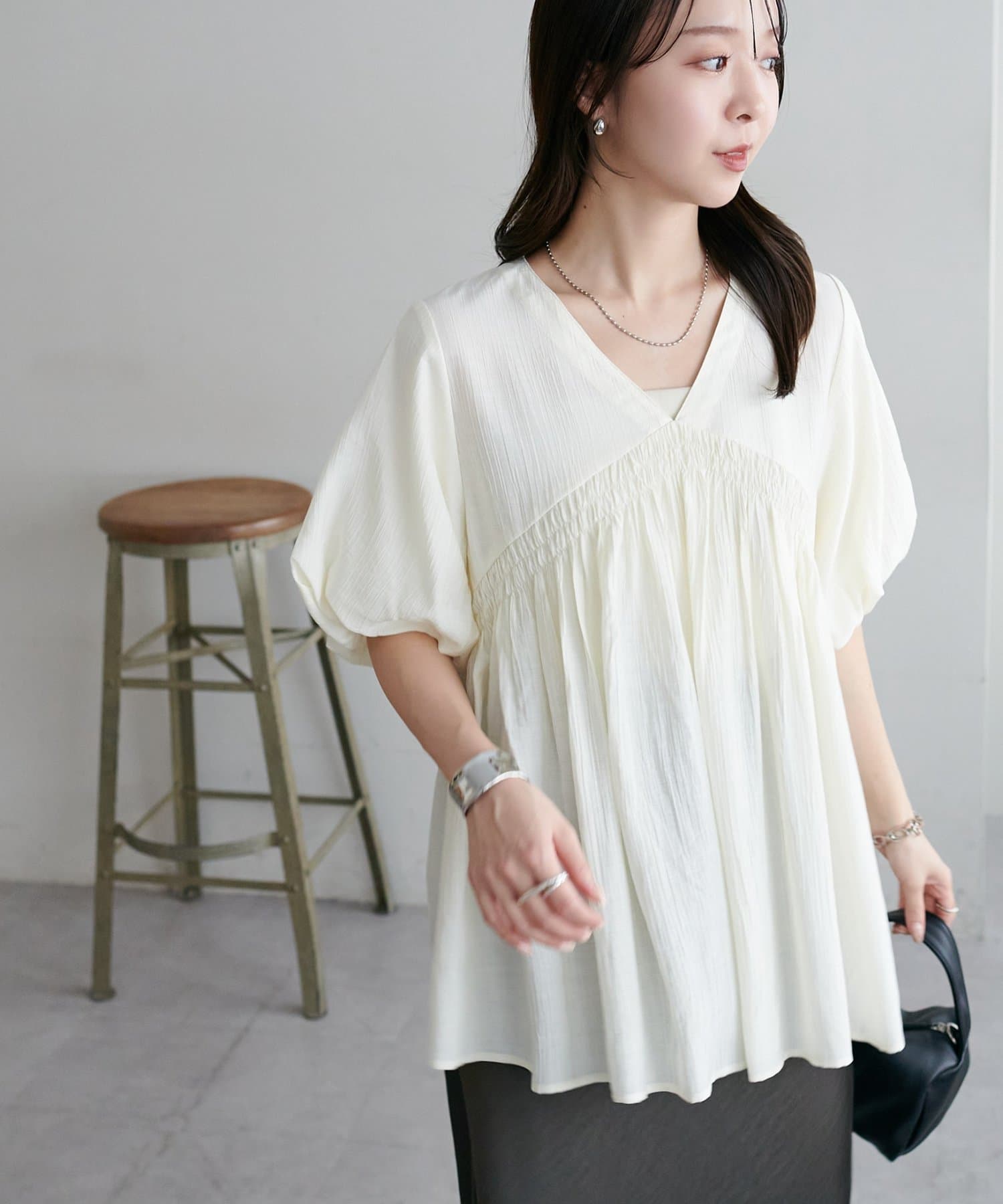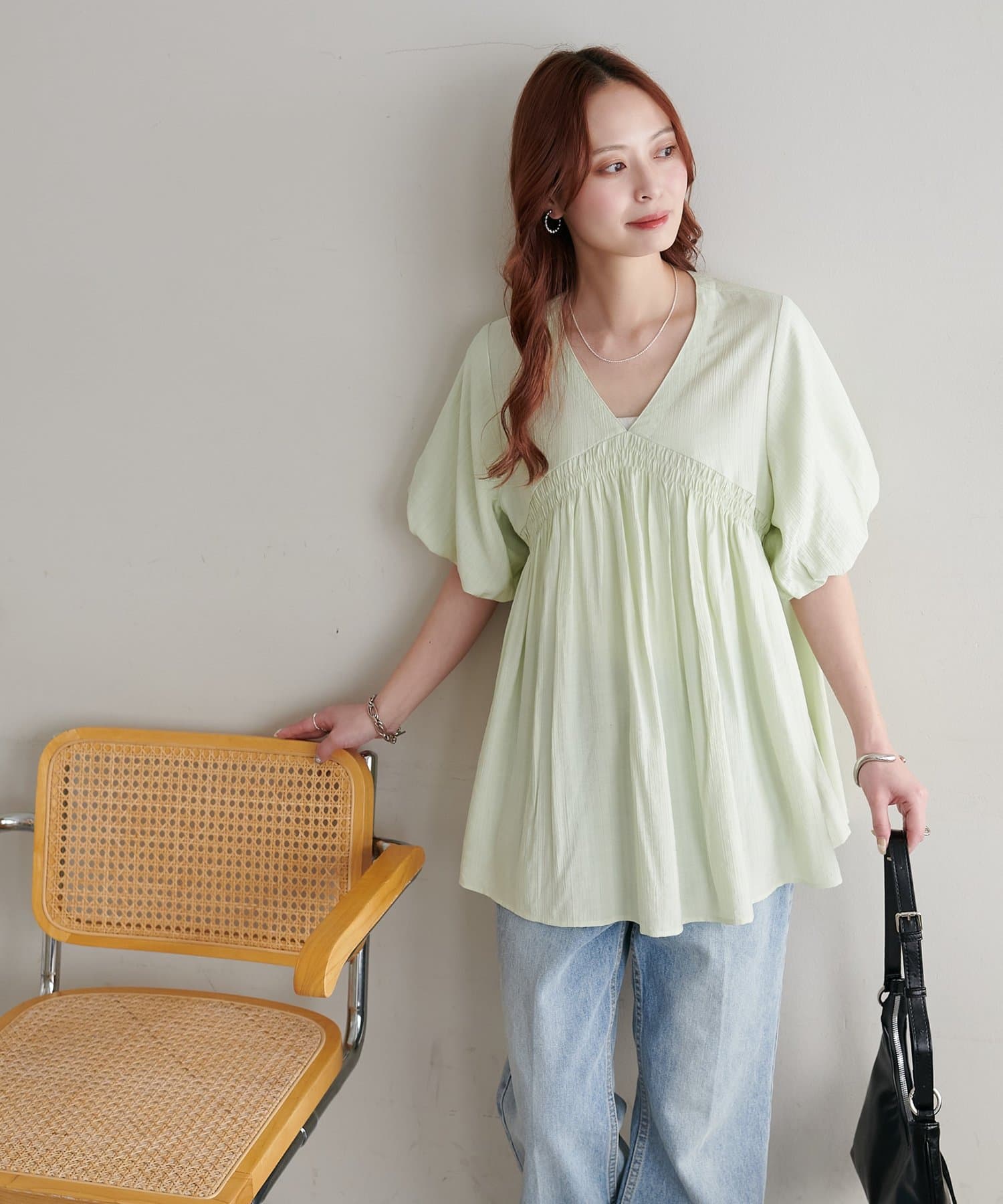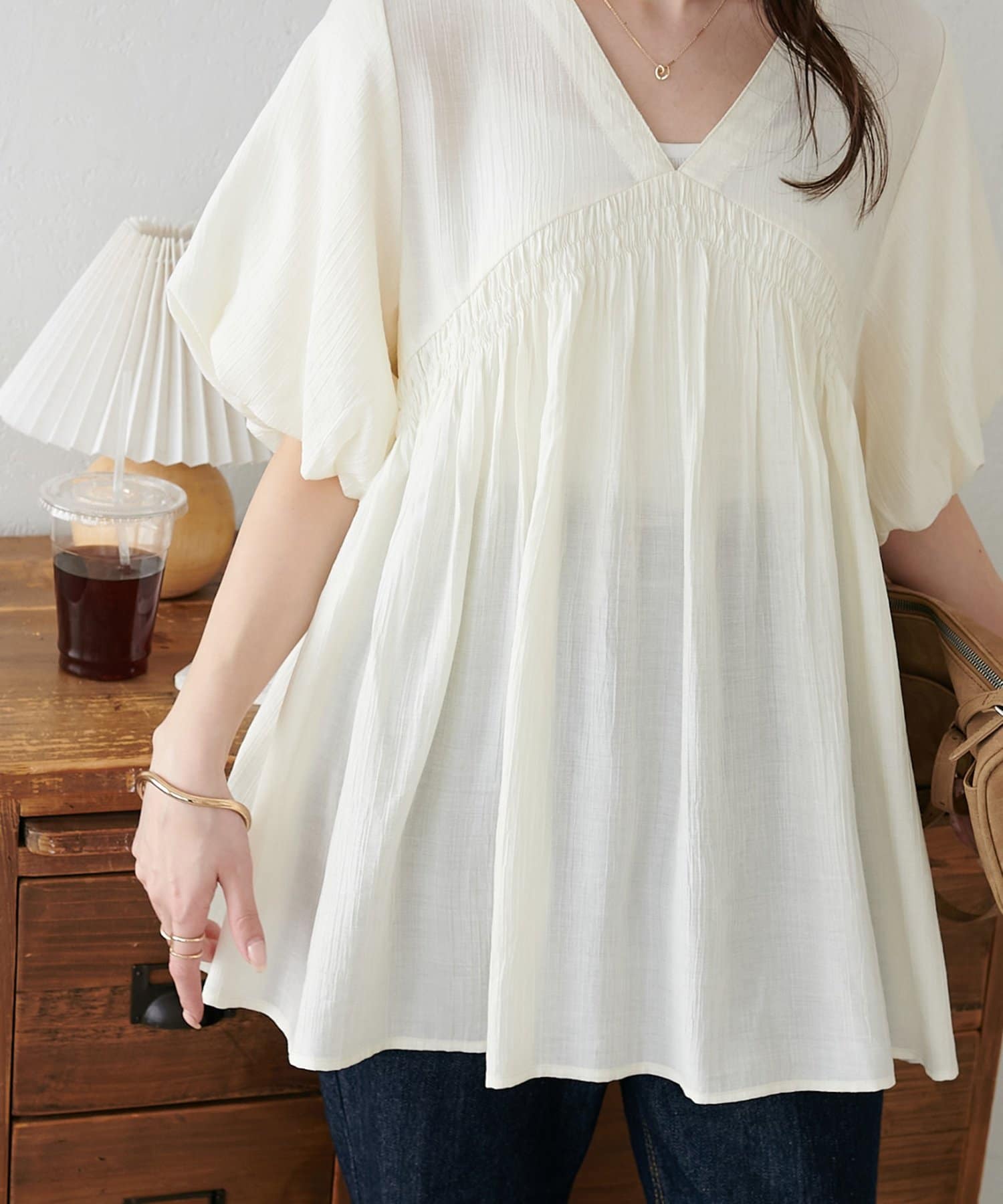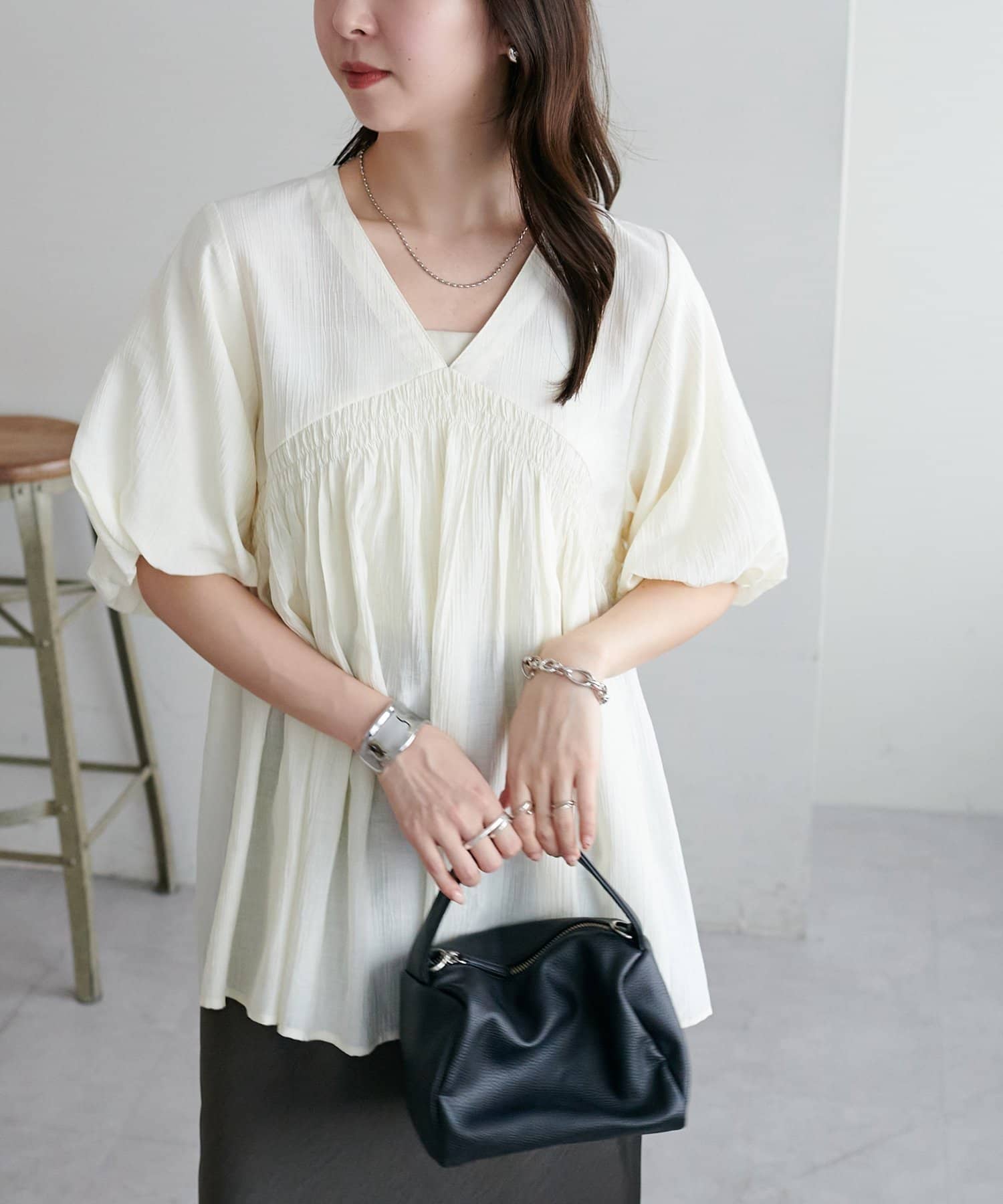 DISCOAT(ディスコート) 【WEB限定】袖バルーンシャーリングブラウス