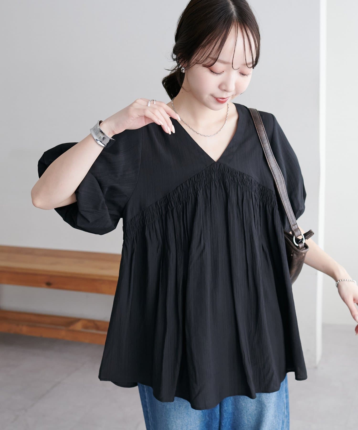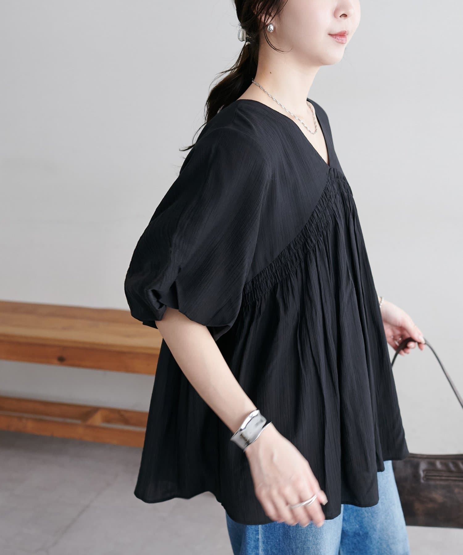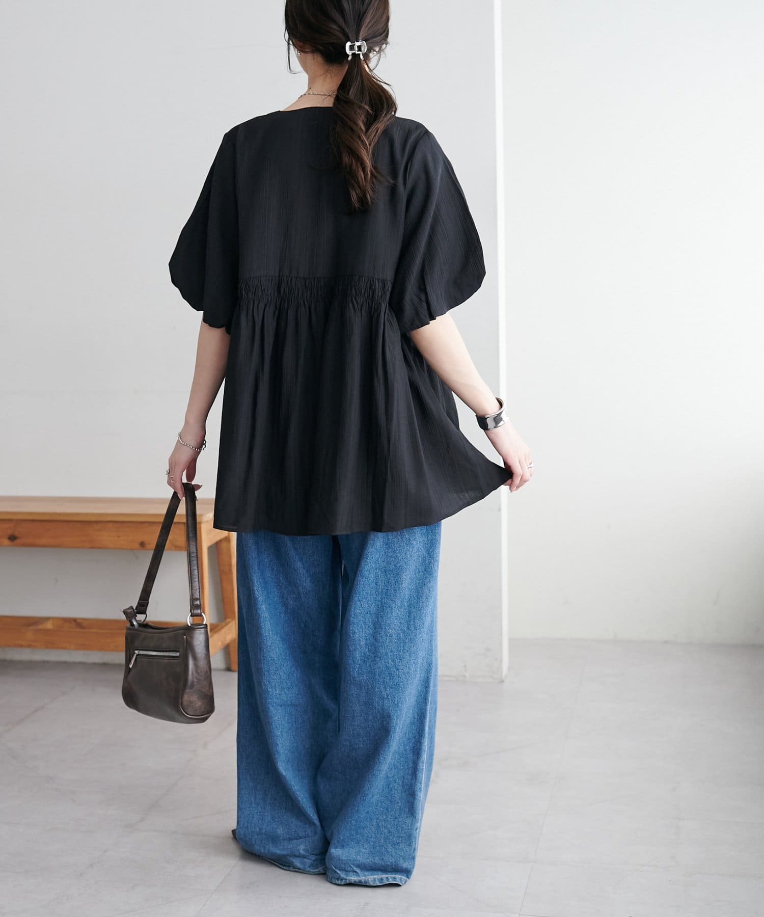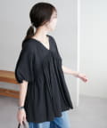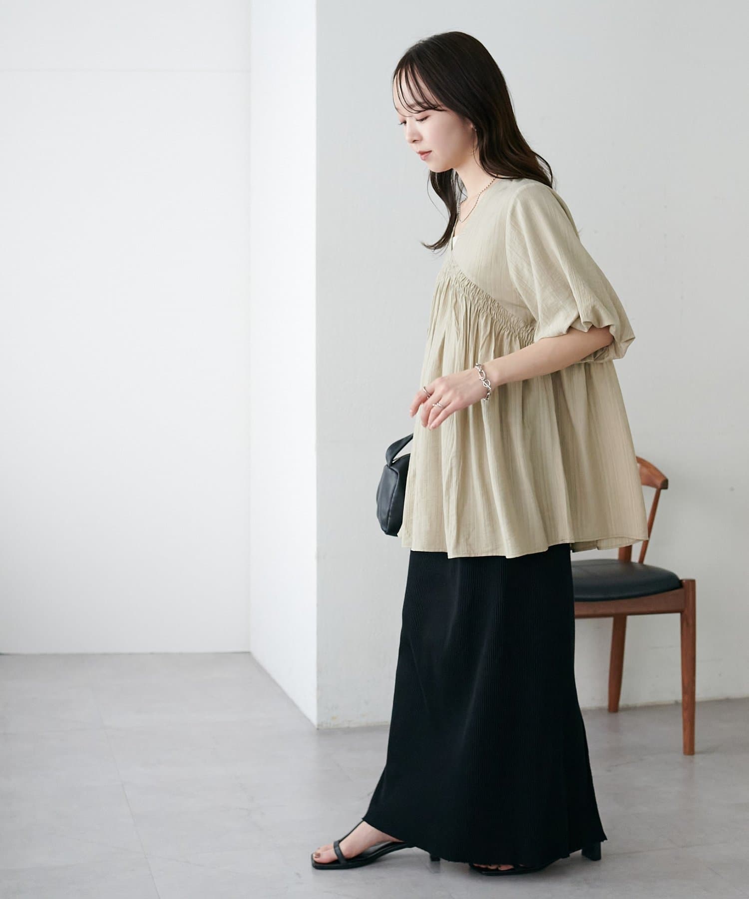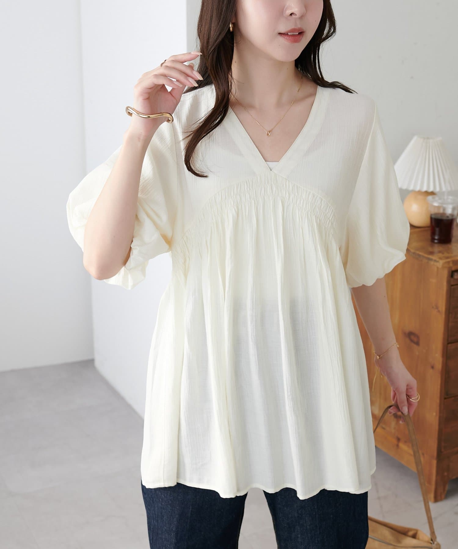 DISCOAT(ディスコート) 【WEB限定】袖バルーンシャーリングブラウス