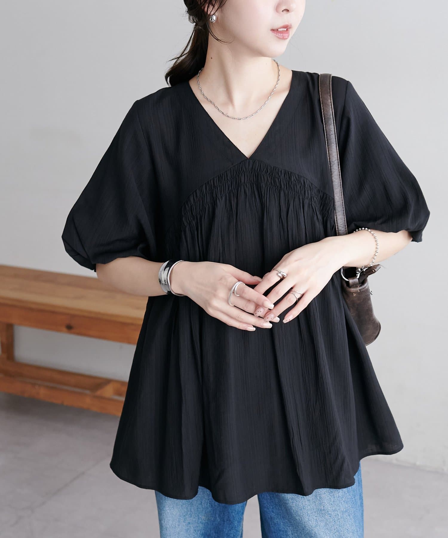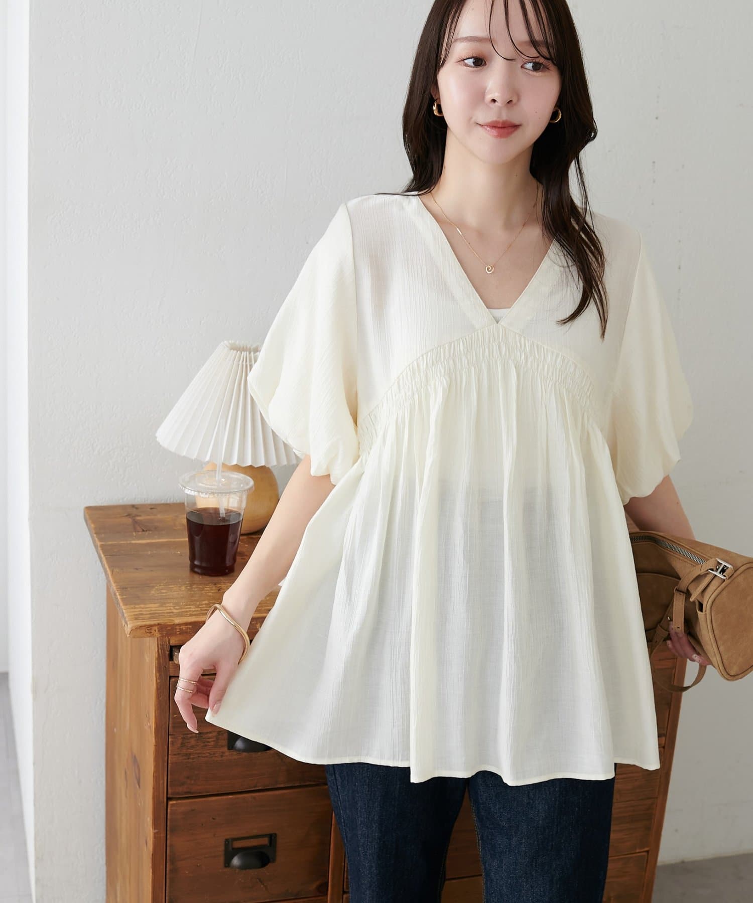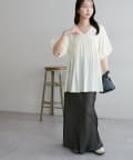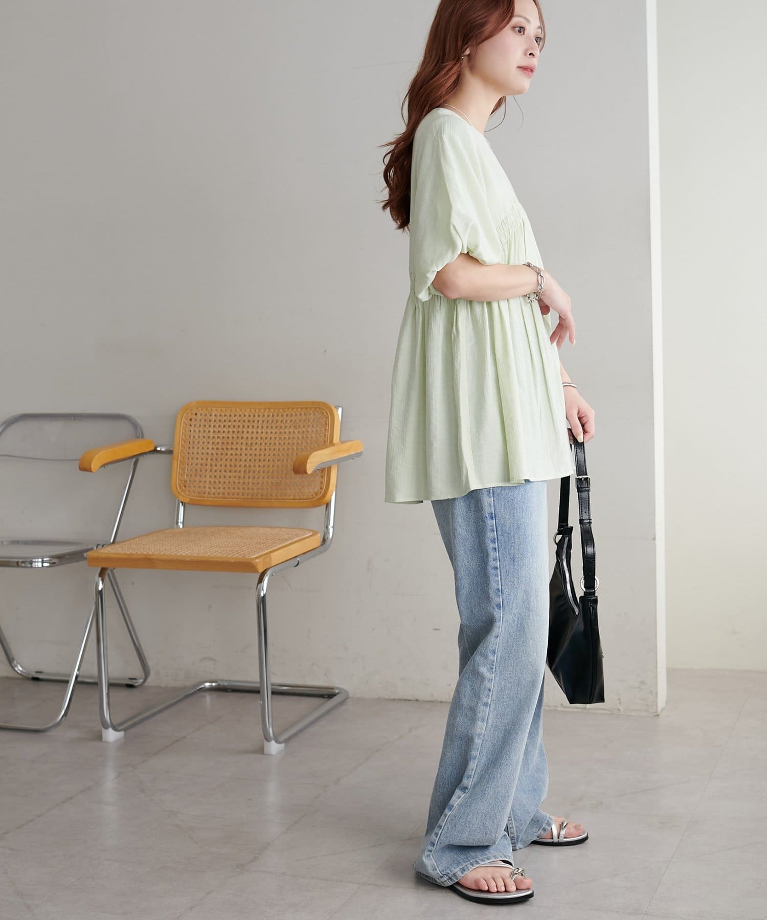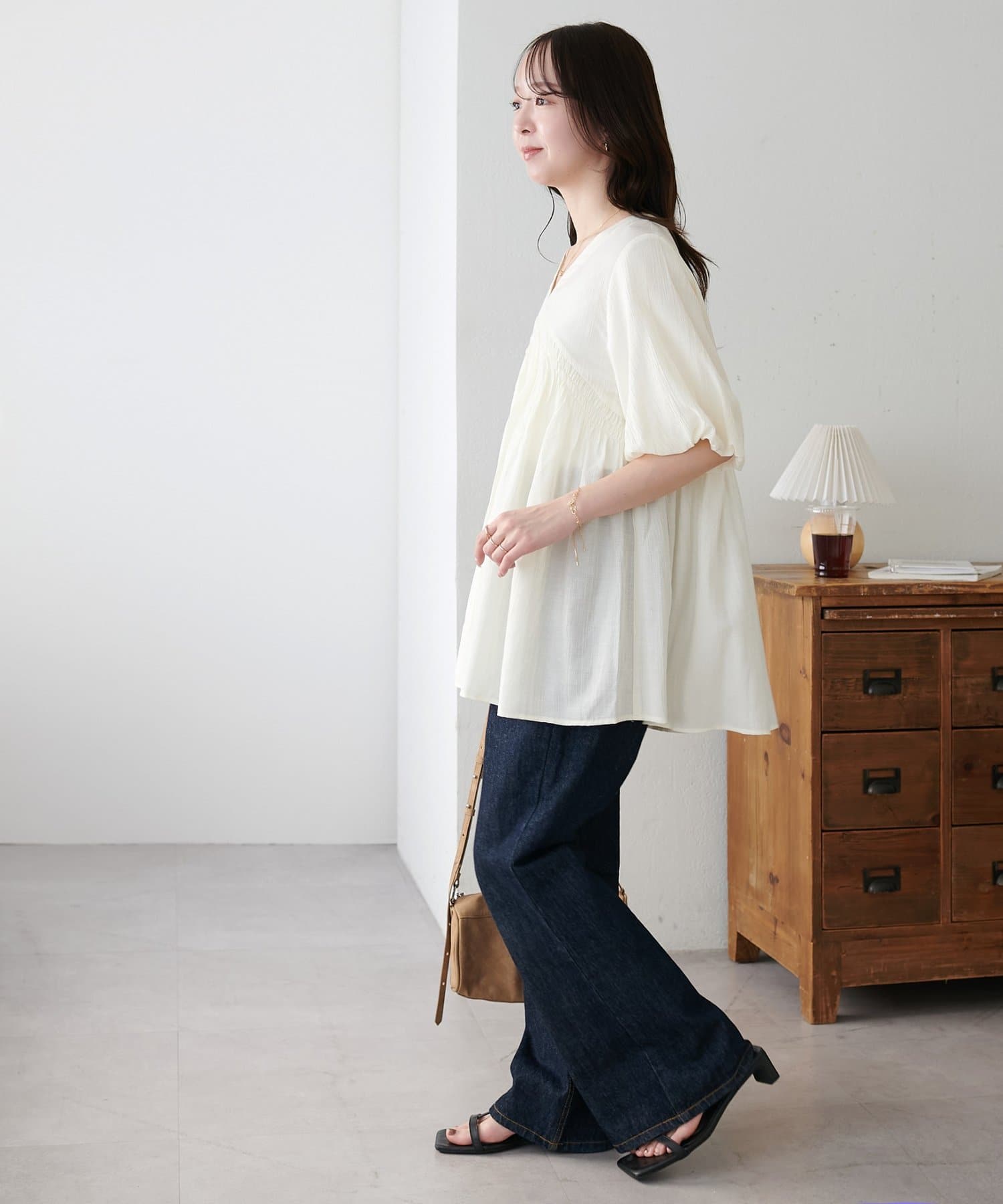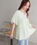 DISCOAT(ディスコート) 【WEB限定】袖バルーンシャーリングブラウス