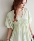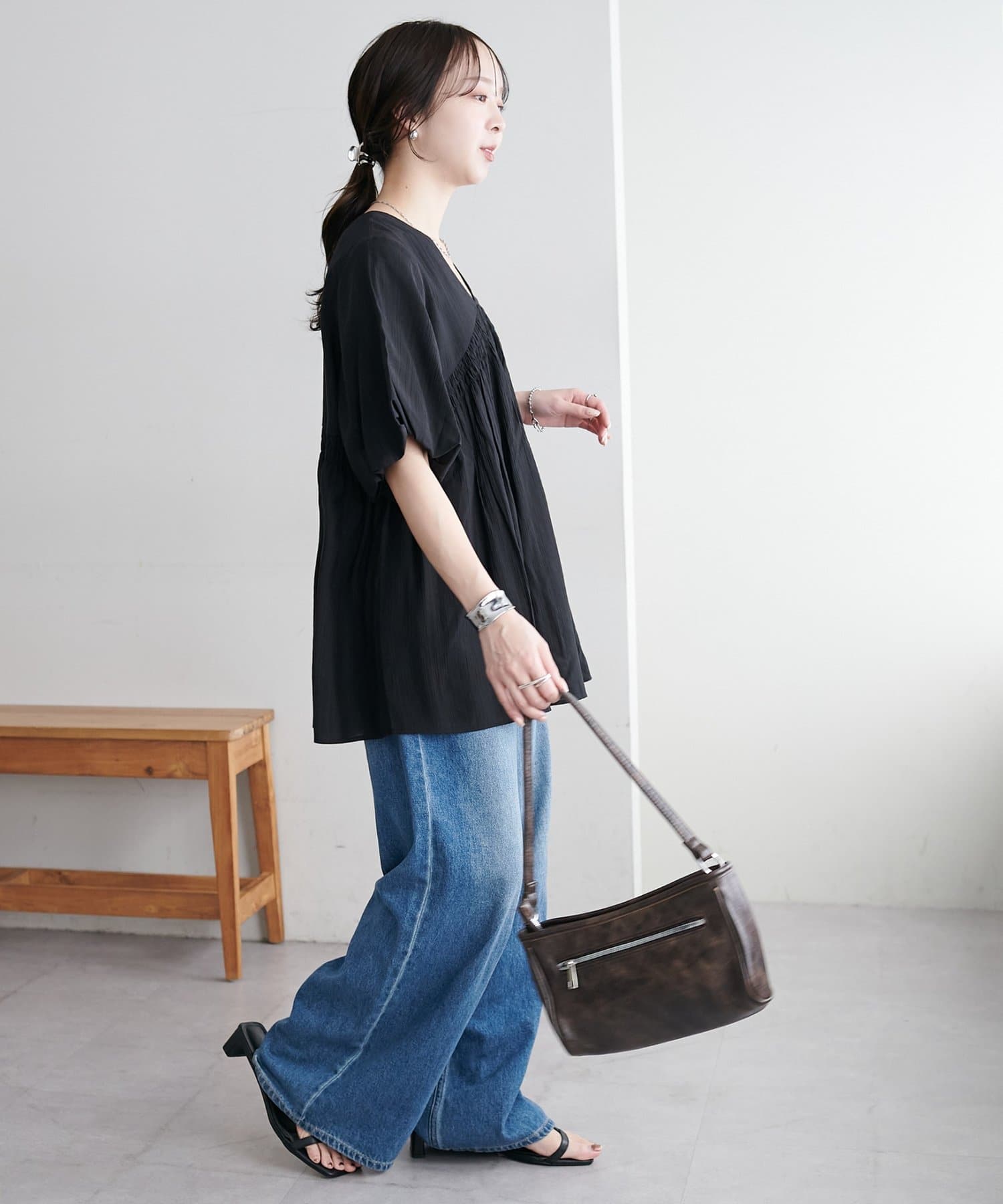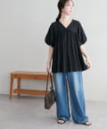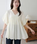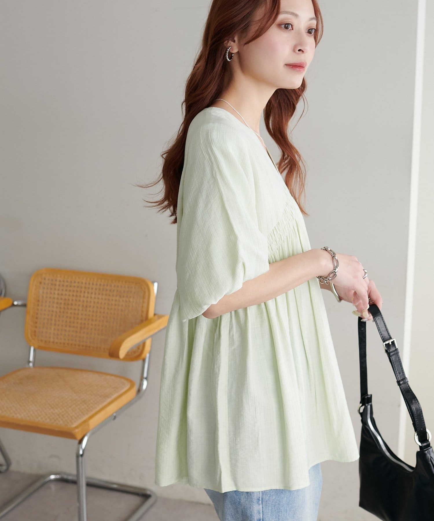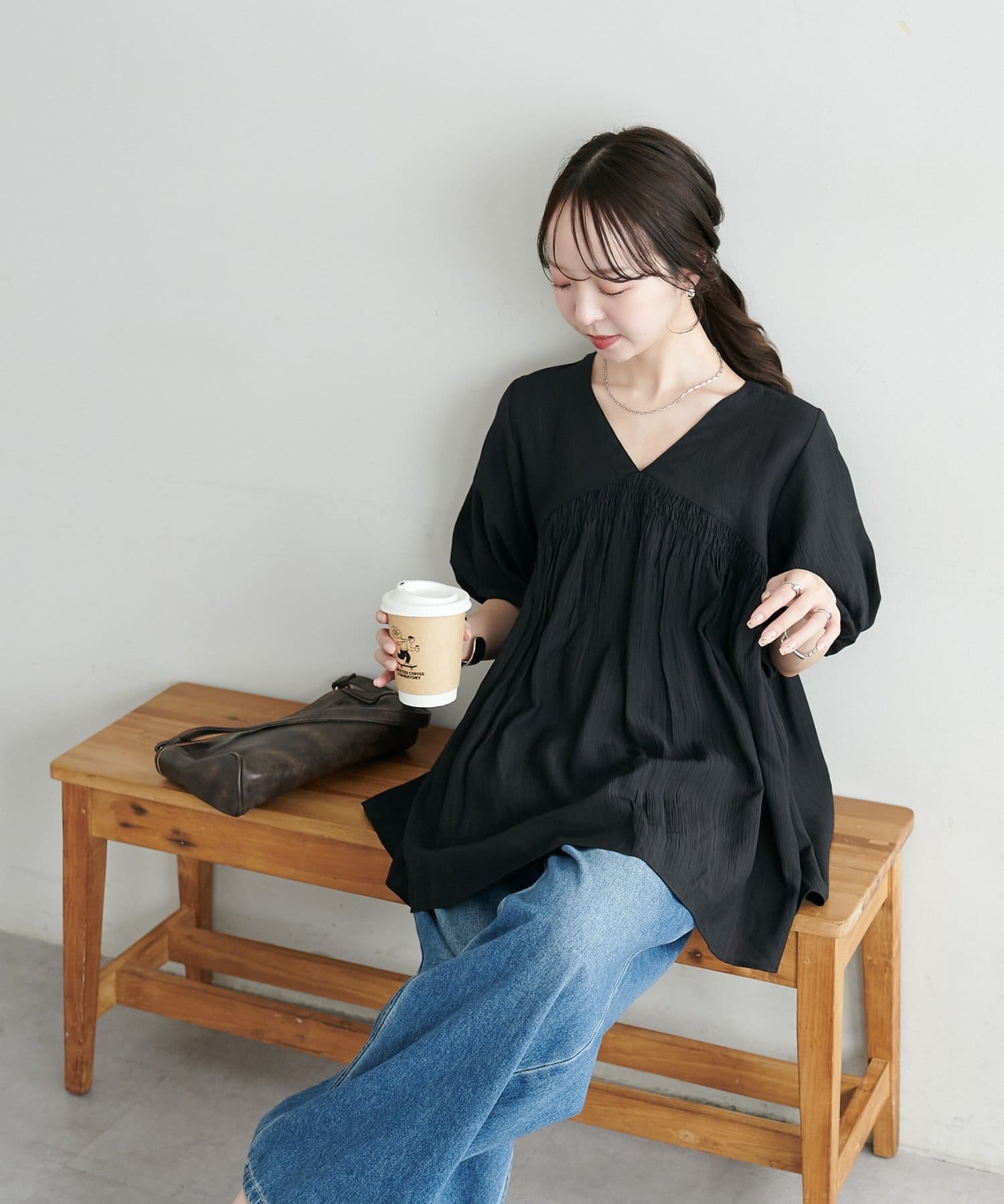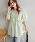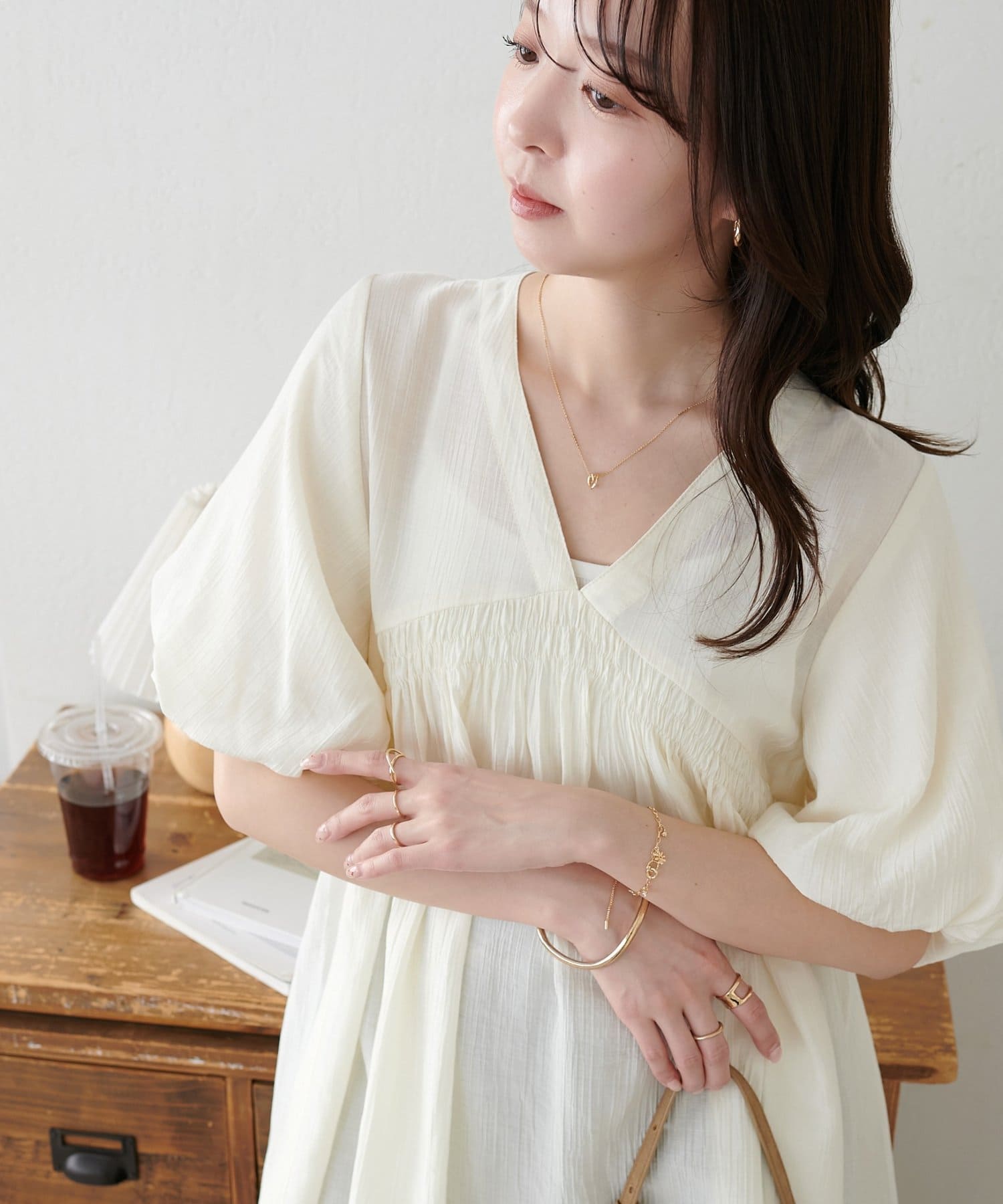 DISCOAT(ディスコート) 【WEB限定】袖バルーンシャーリングブラウス