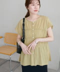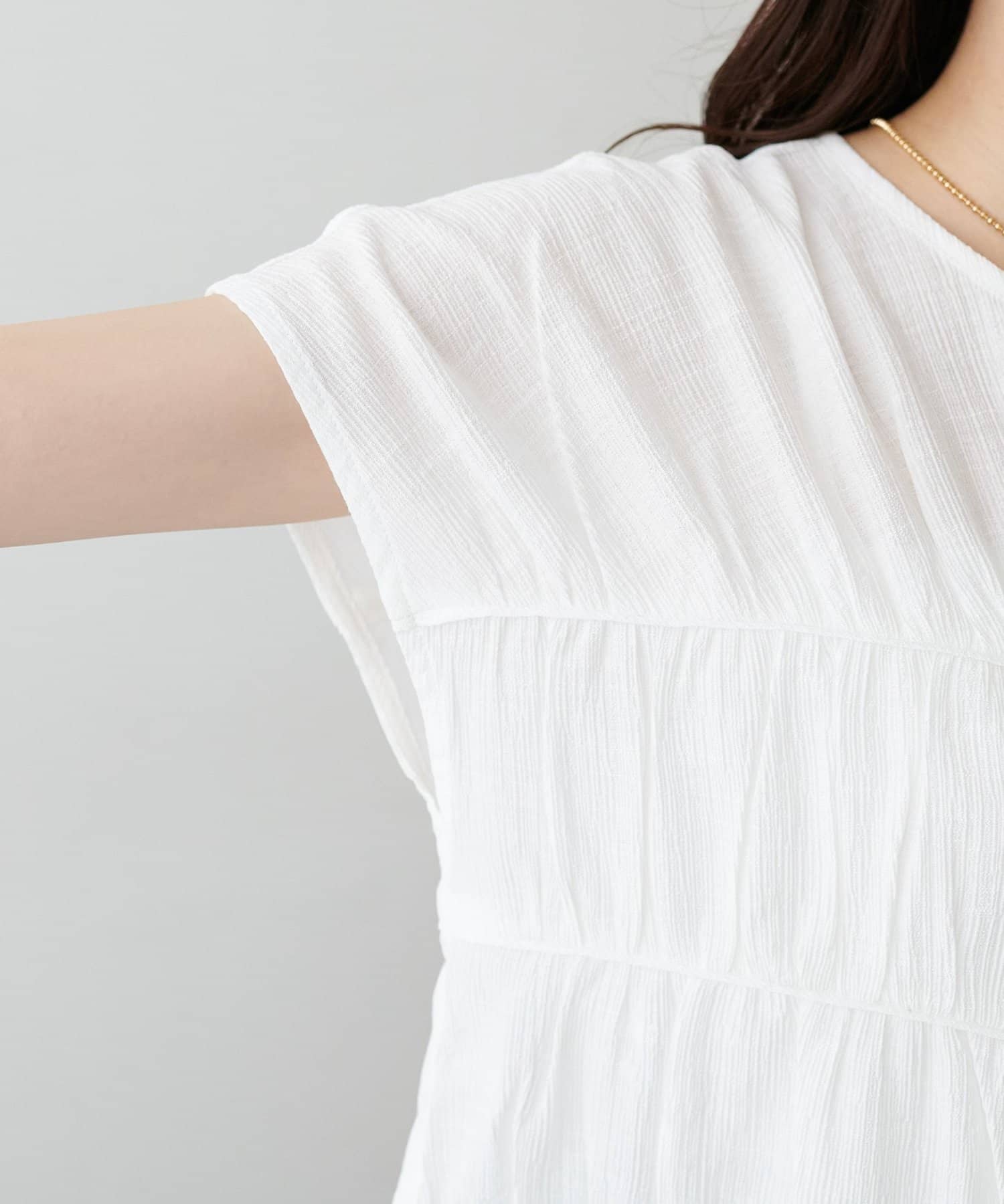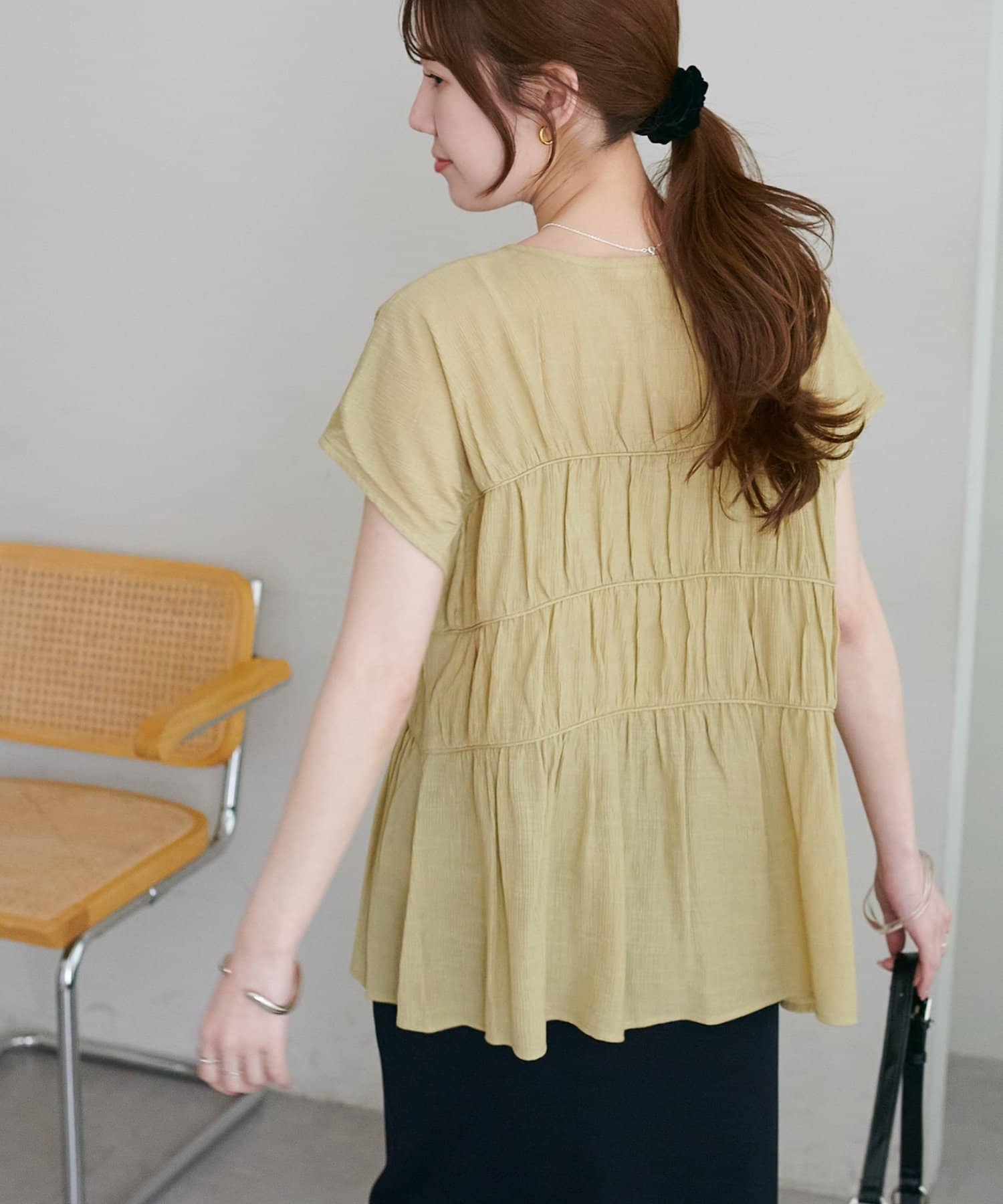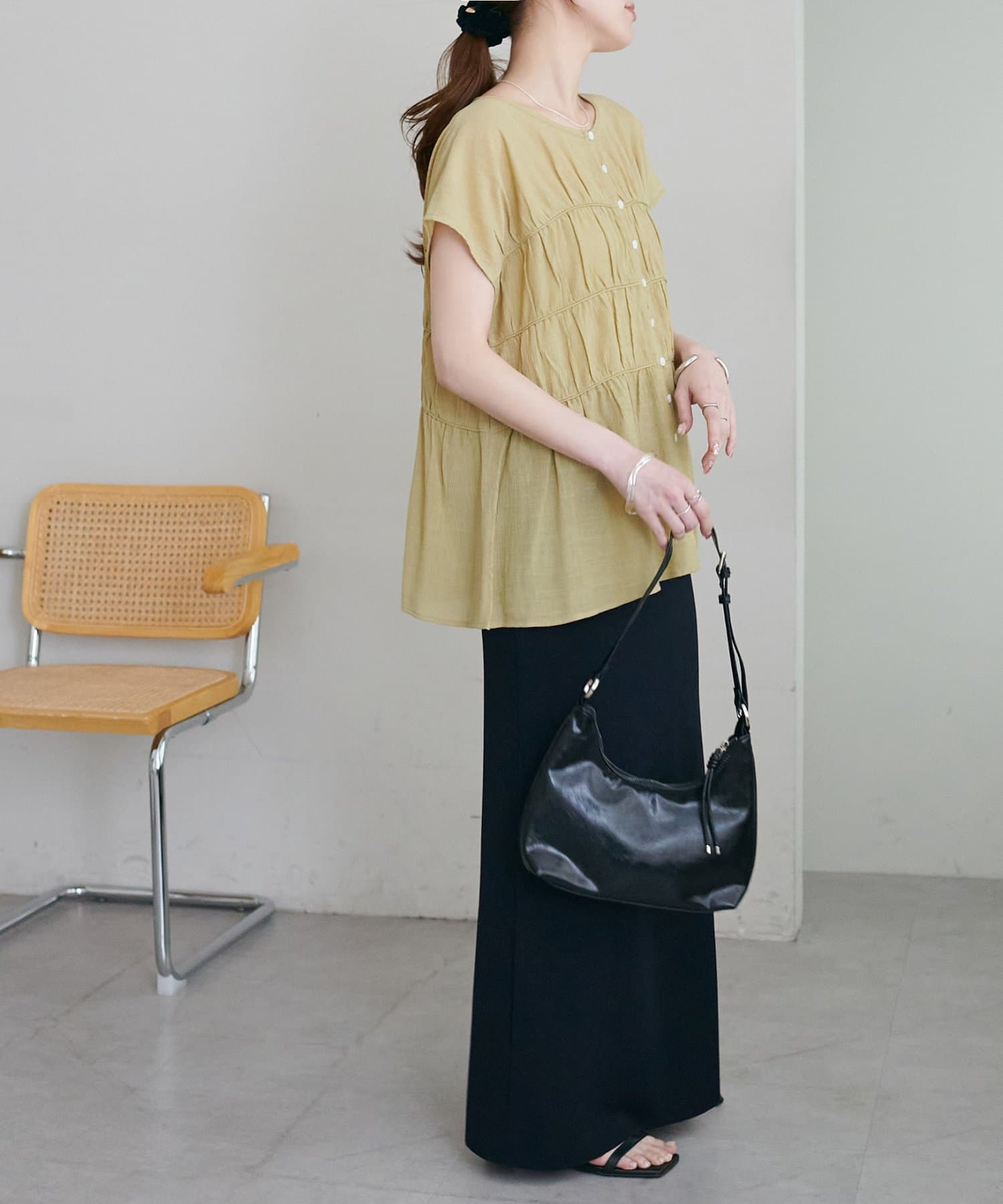 ・胸元やウエストに施されたギャザーによって、身体のラインを拾いにくのも♪