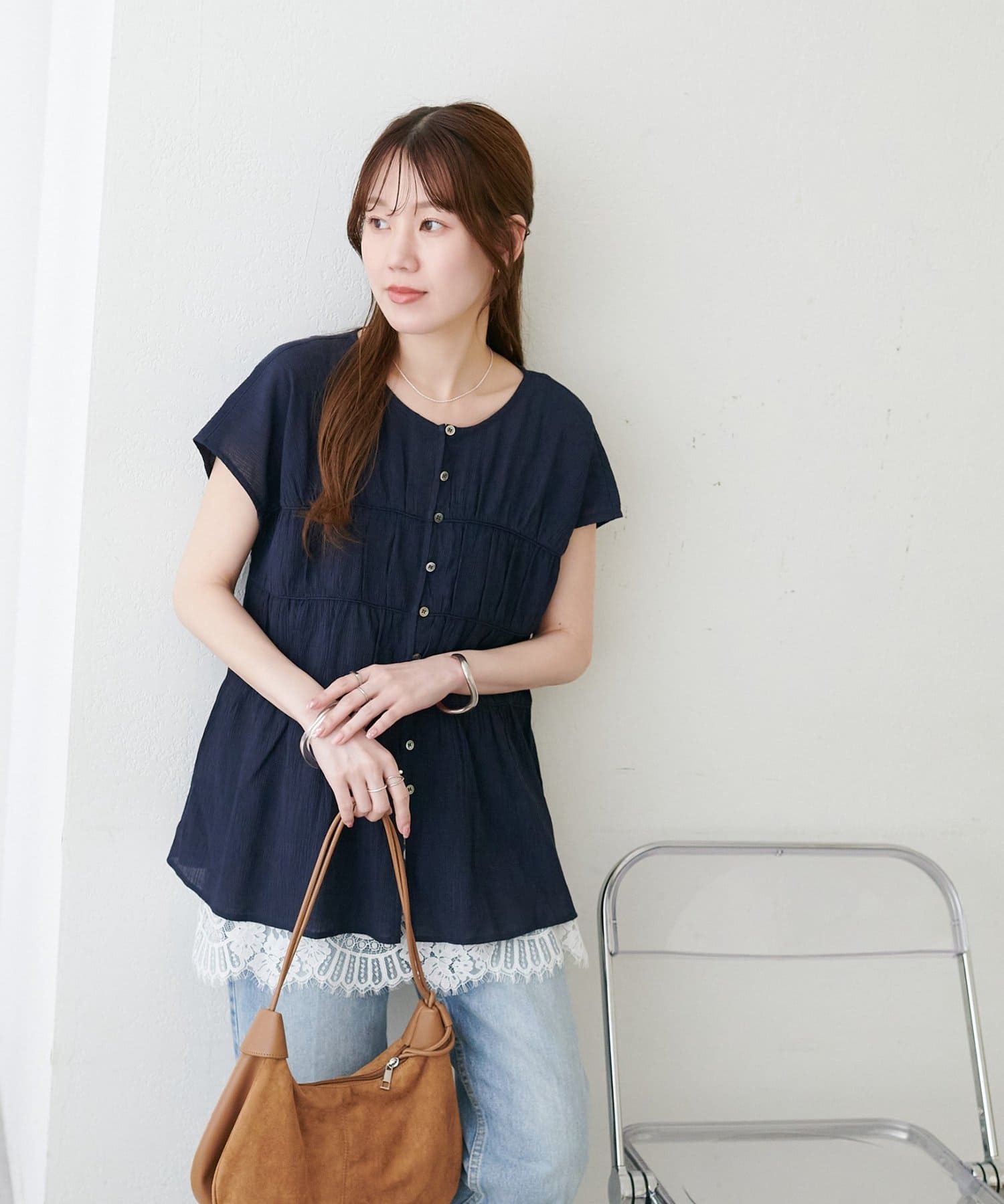 ・裾に向かってややフレアになっていく形で、アウトスタイルでもかわいく決まる♡