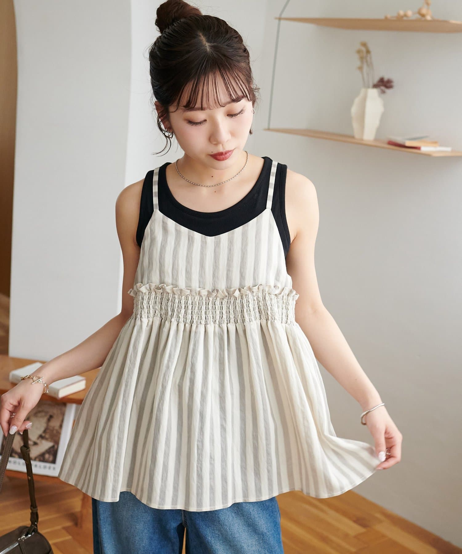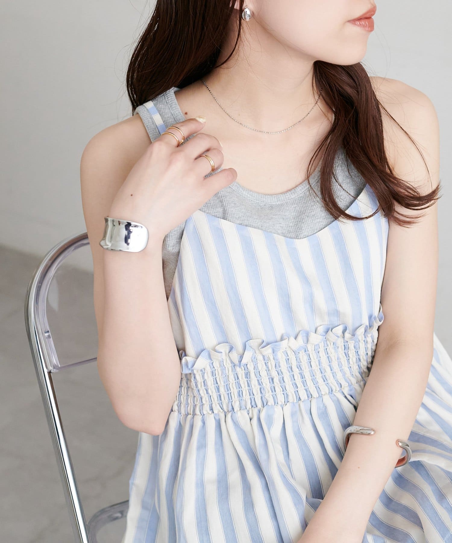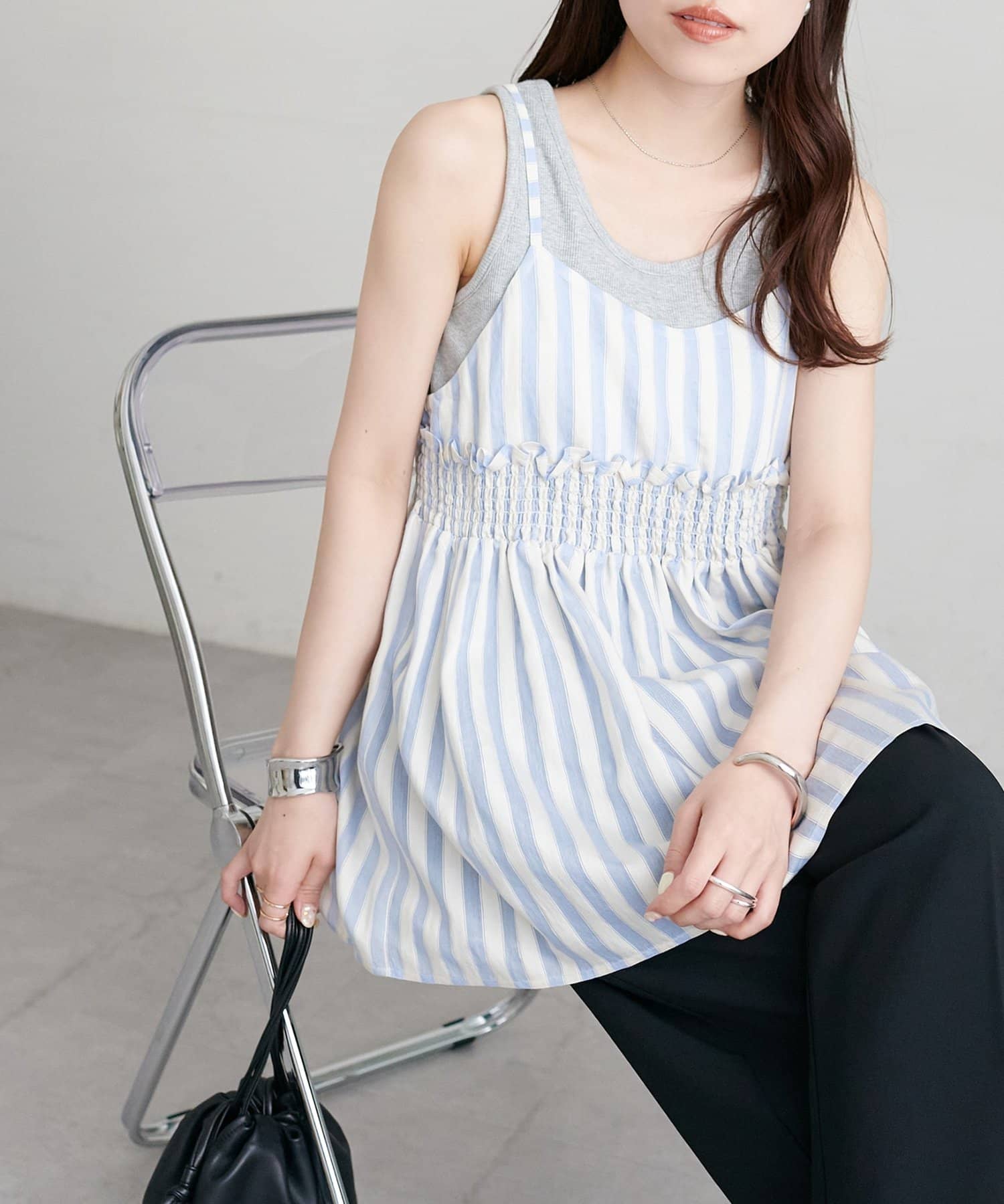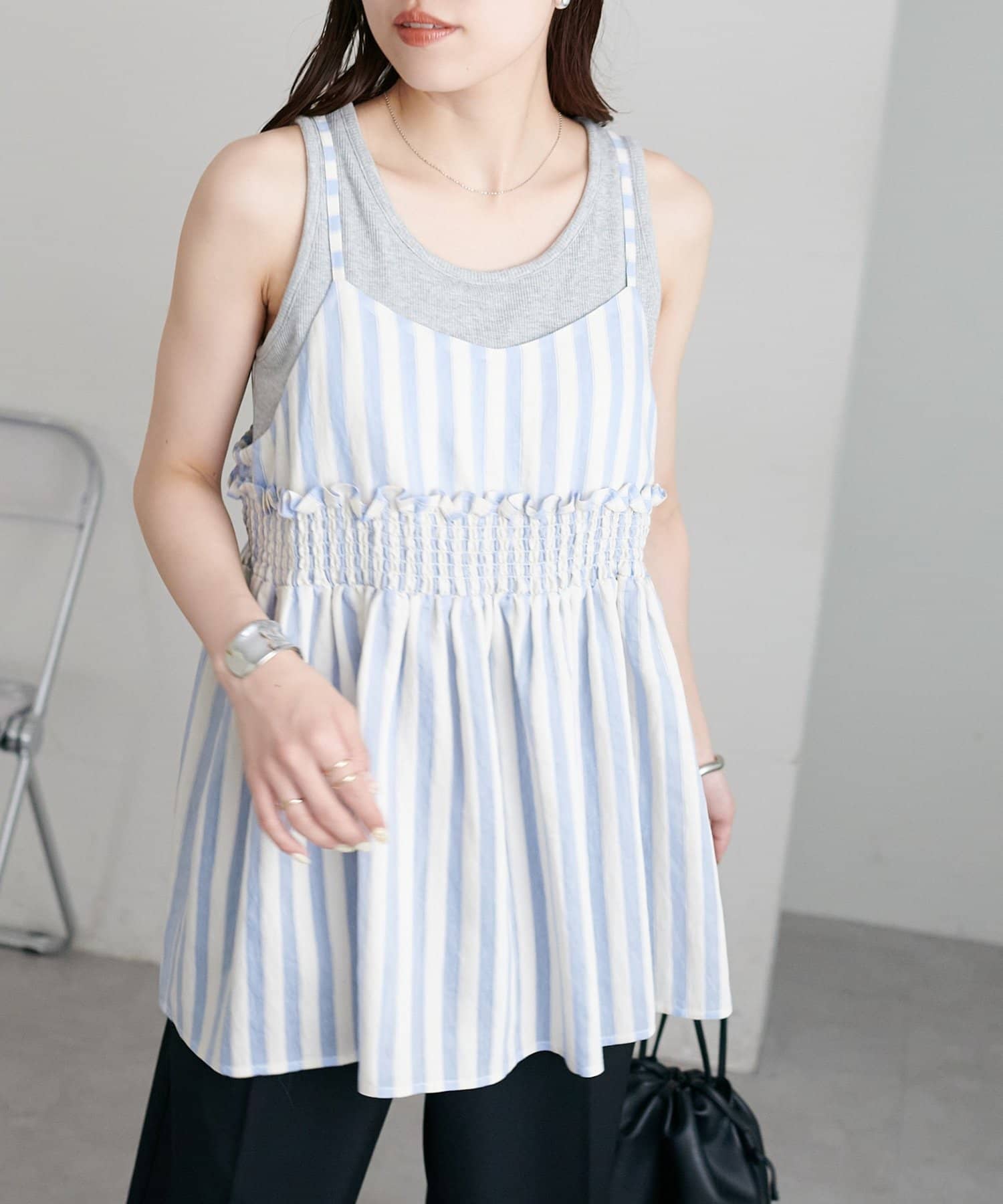 【marusara】シアーストライプキャミチュニック