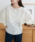 DISCOAT(ディスコート) 【WEB限定】ノーカラーレースブラウス